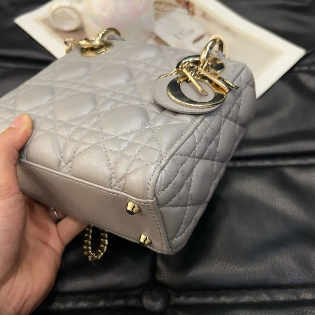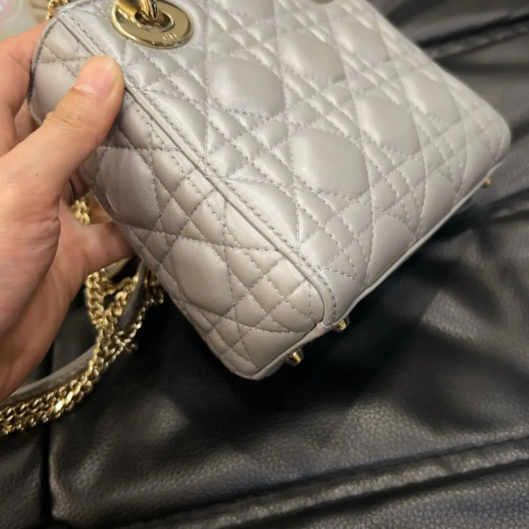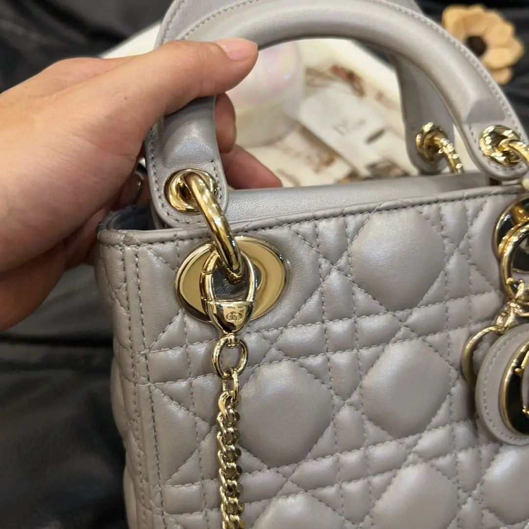 【商品详情】正品二手 Dior 珠光灰 羊皮 三格 金扣 戴妃包🍕97新 17*14 配件:肩带 防尘袋。清纯的千金小姐