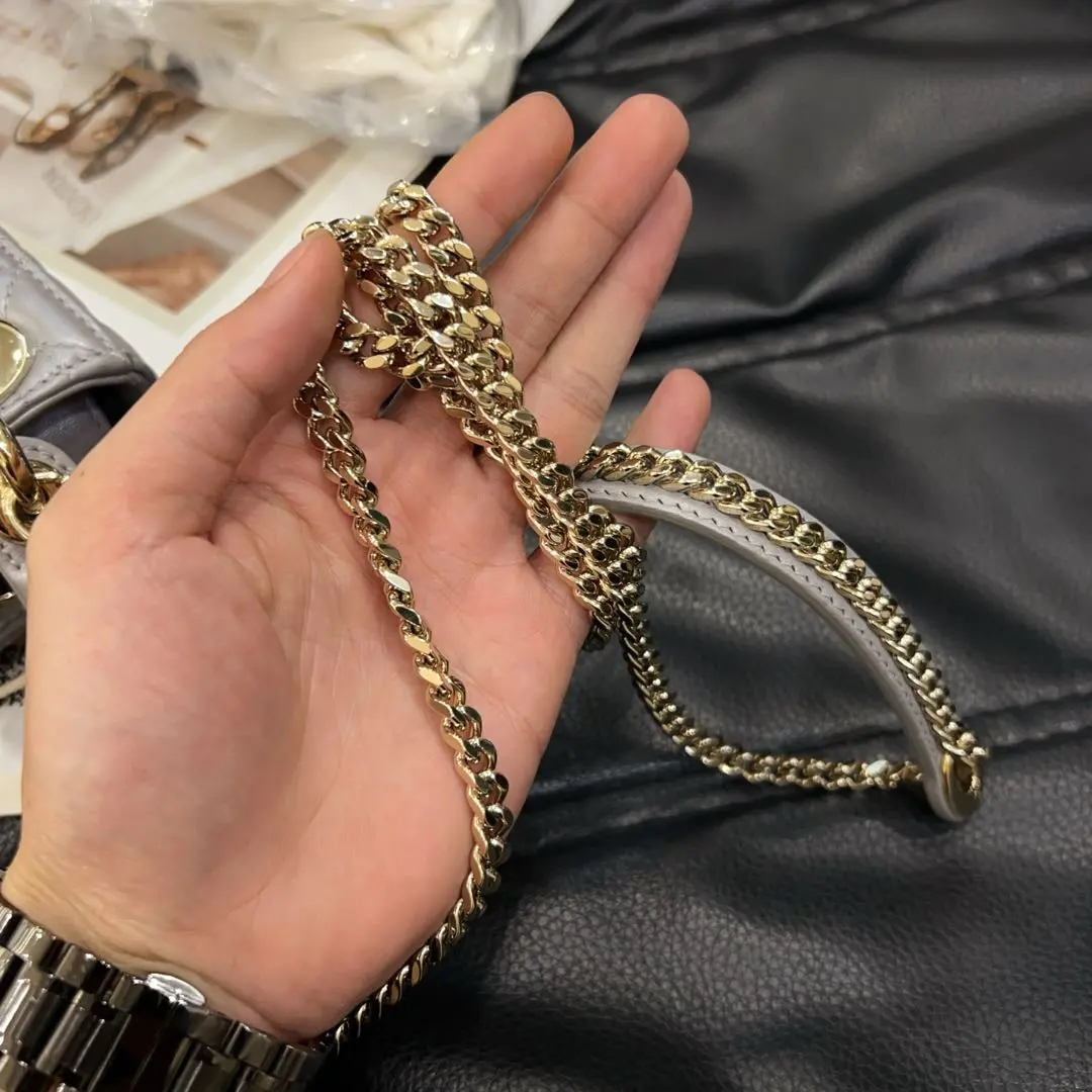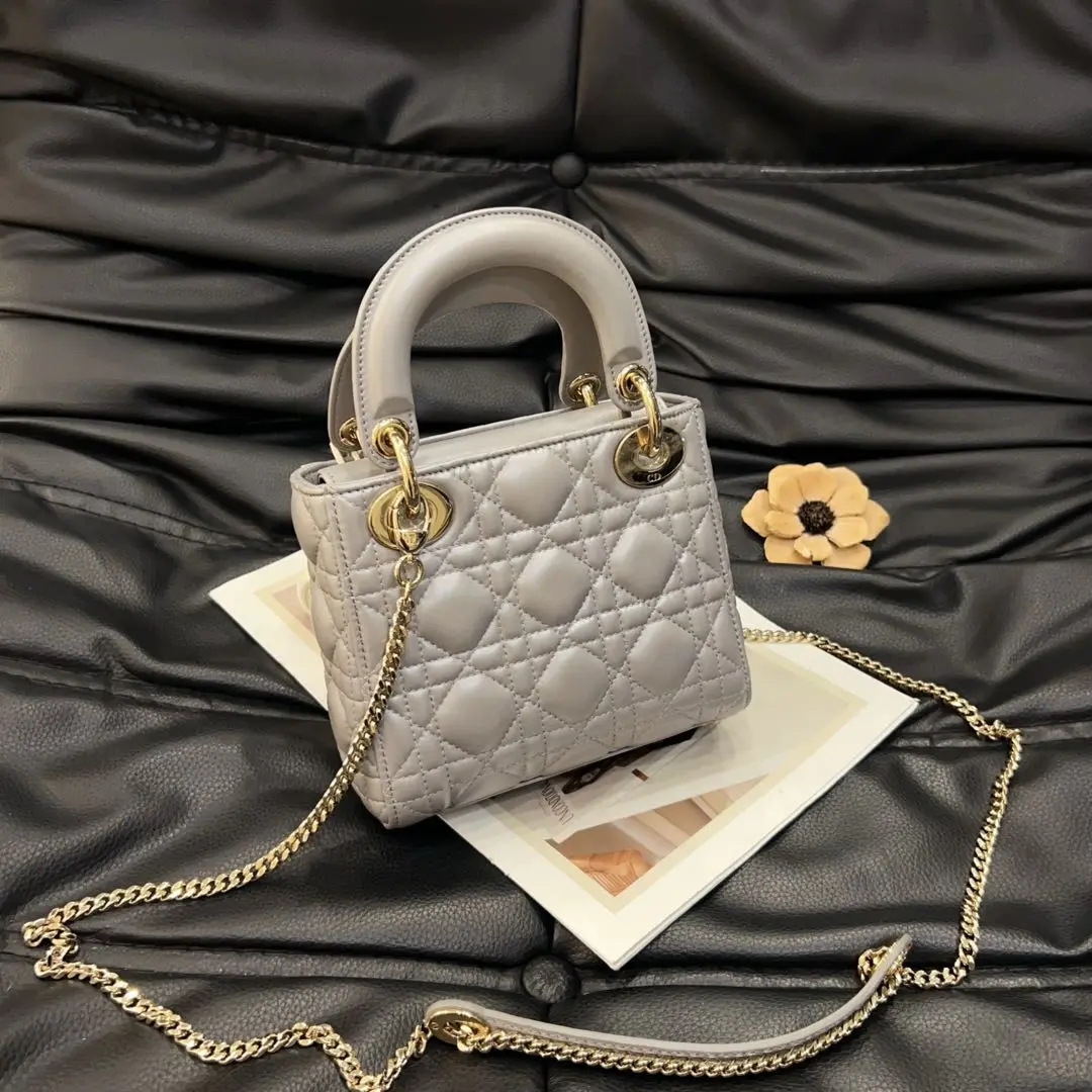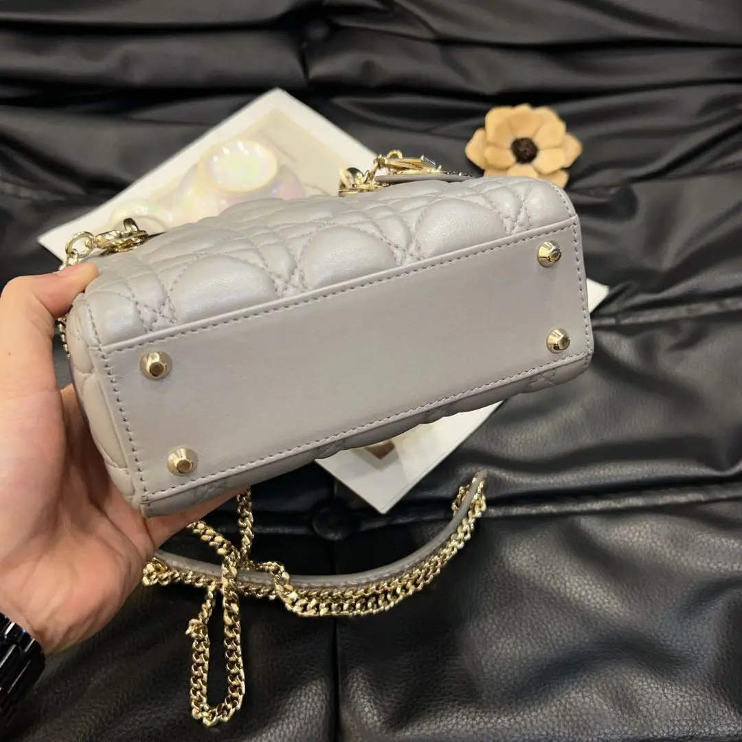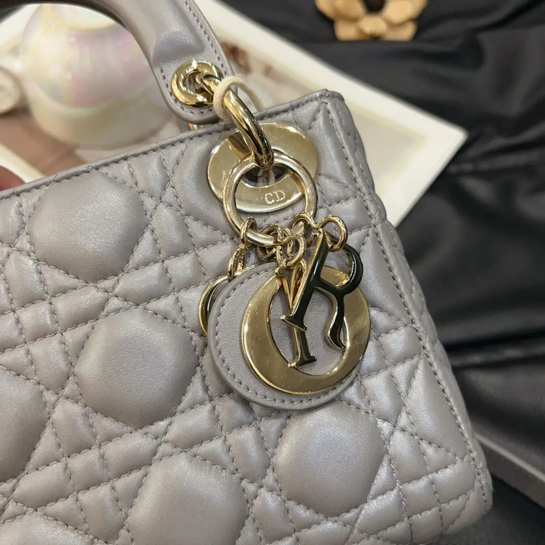 【商品详情】正品二手 Dior 珠光灰 羊皮 三格 金扣 戴妃包🍕97新 17*14 配件:肩带 防尘袋。清纯的千金小姐