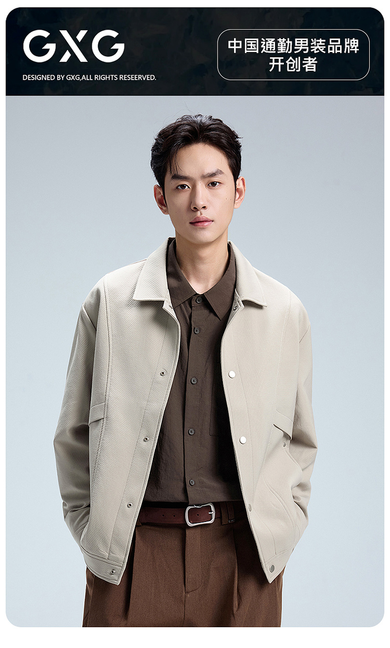 GXG男装【斜纹肌理】25秋季经典简约翻领通勤休闲男式夹克K&C