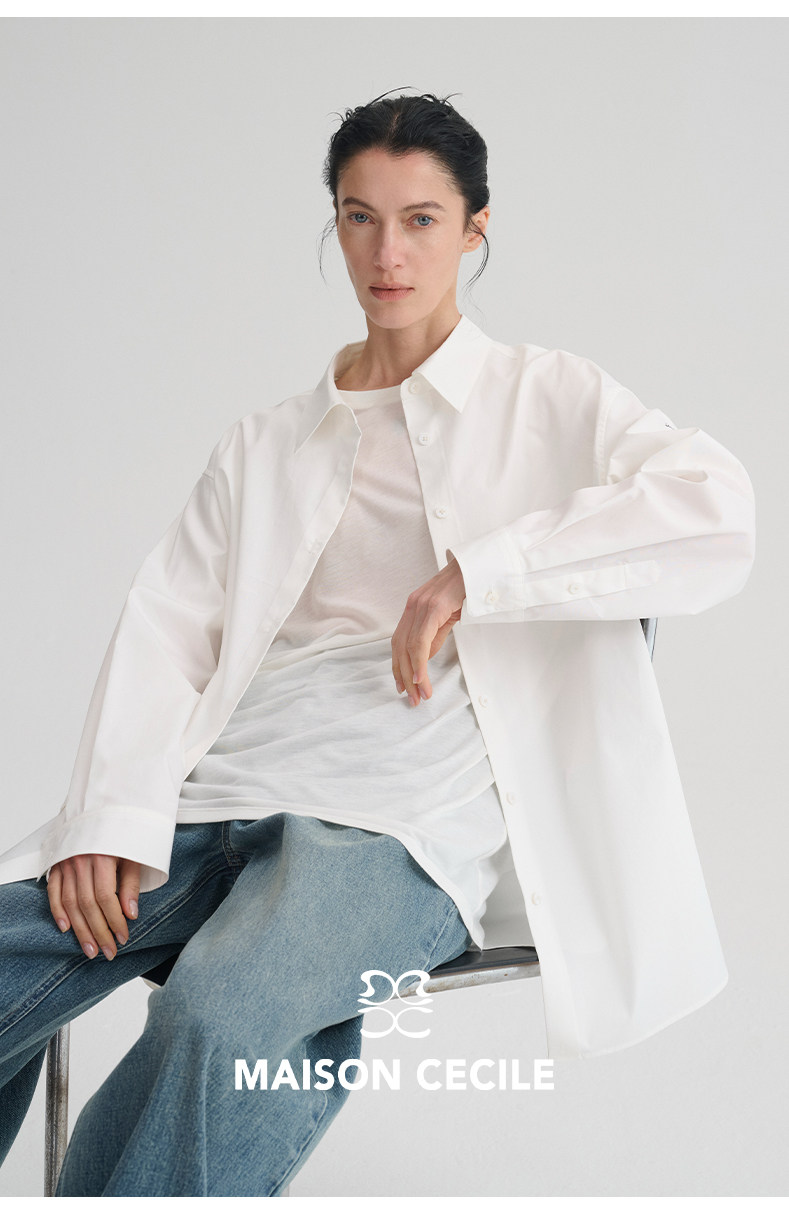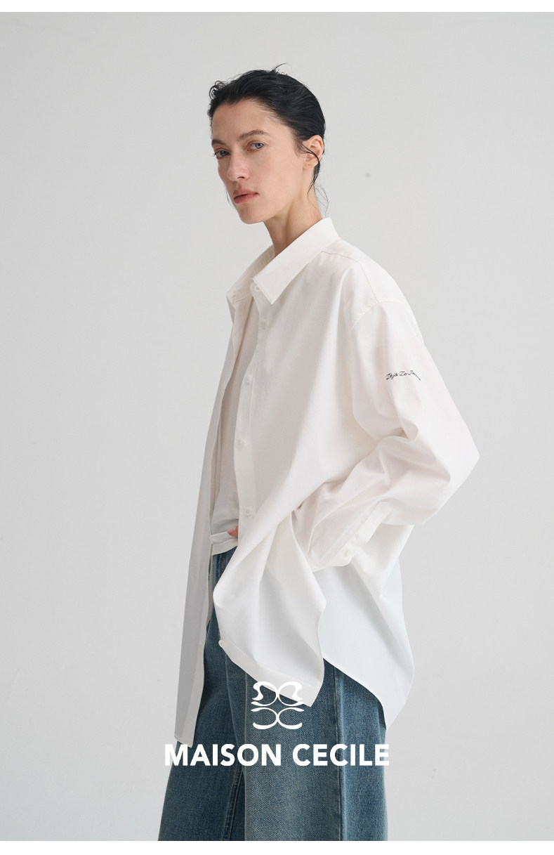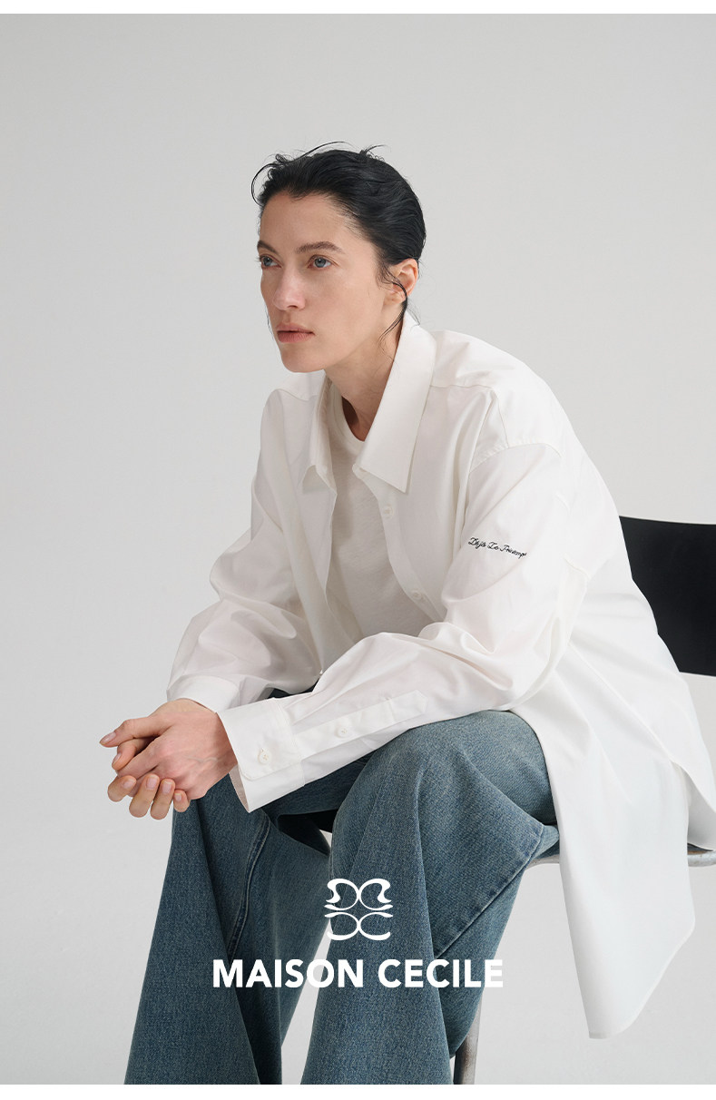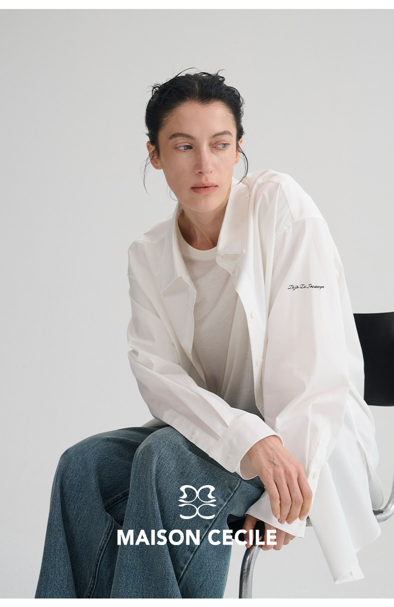 MAISON CECILE“春日已至”法语刺绣莱赛尔棉百搭简约随性白衬衫
