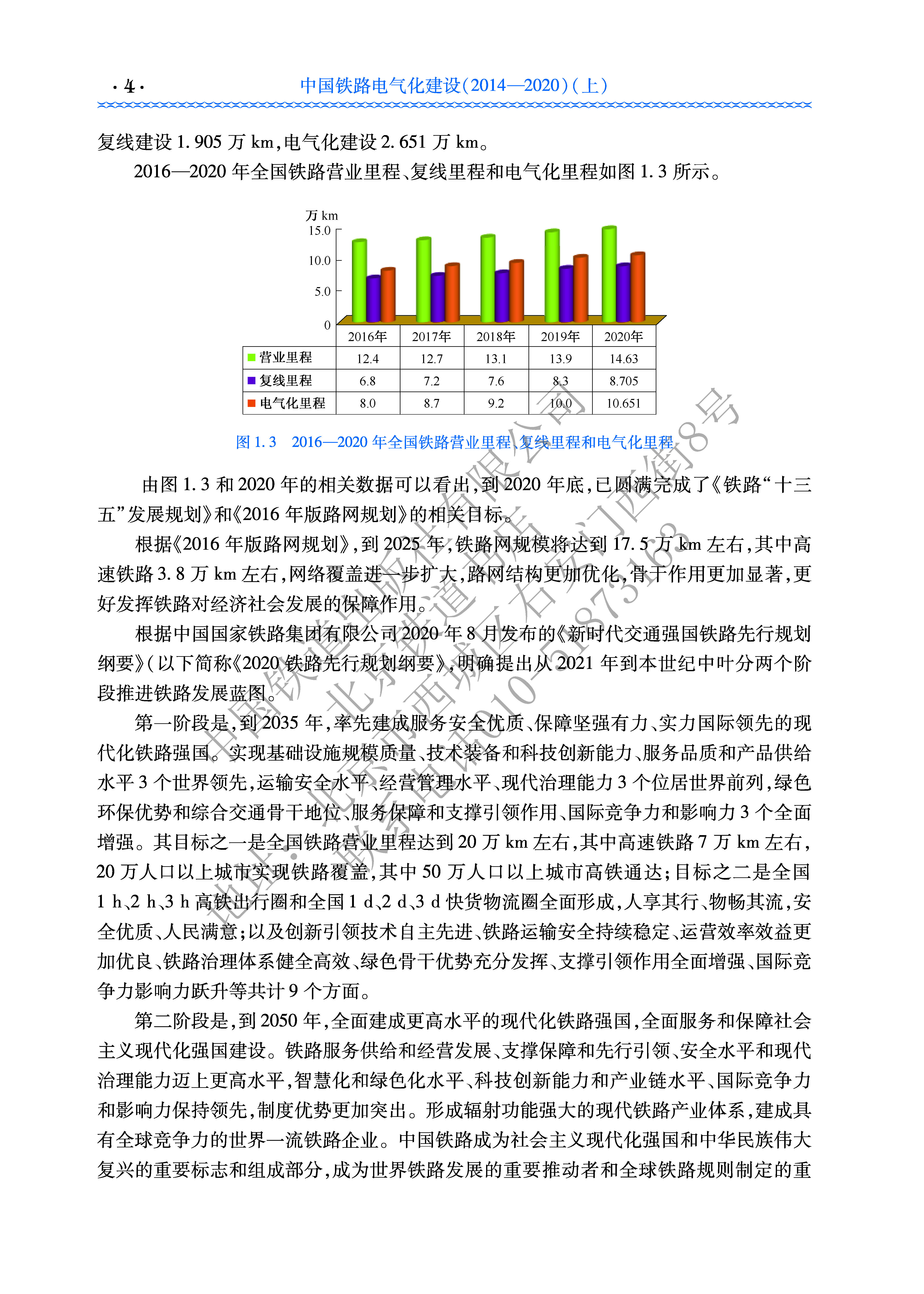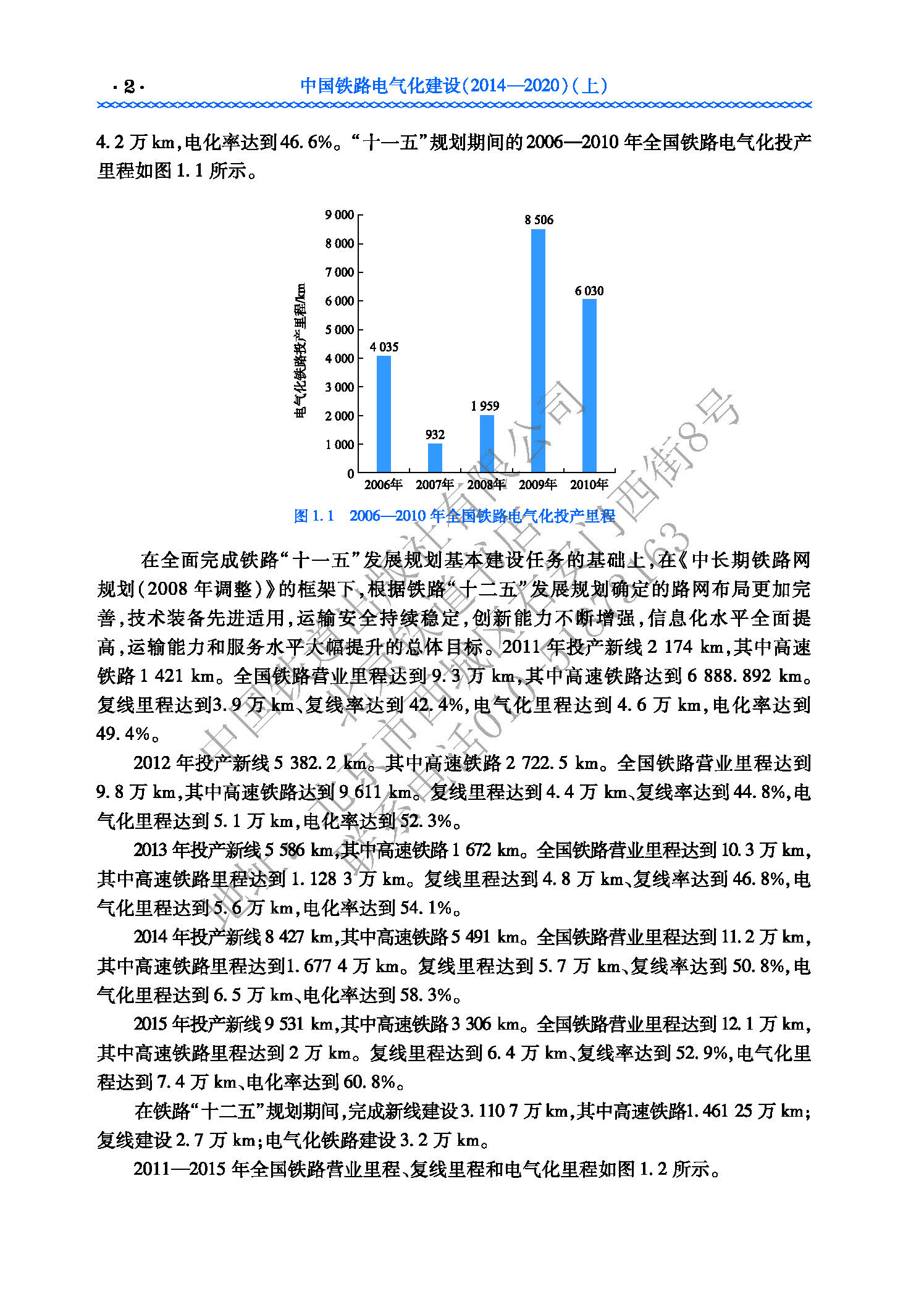 本书以大量的历史资料和数据详细记录了2014至2020年中国铁路电气化建设的发展历程, 已建成电气化铁路赣韶、张唐、敦格、兰渝、青连、连盐、九景衢、怀邵衡线,蒙西至华中地区铁路煤运通道、山西中南部铁路通道,沪昆客运专线各段、南广、大西、贵广、合福、哈齐、哈佳、成渝、宝兰、张呼、石济、京沈客运专线和济青、京张、大张高速铁路,以及多条既有铁路电气化改造等电气化铁路线路的概况,线路主要技术标准,电气化、电力、通信、信号专业设计方案,承建的设计和主要施工单位,开工、建成或开通日期等。