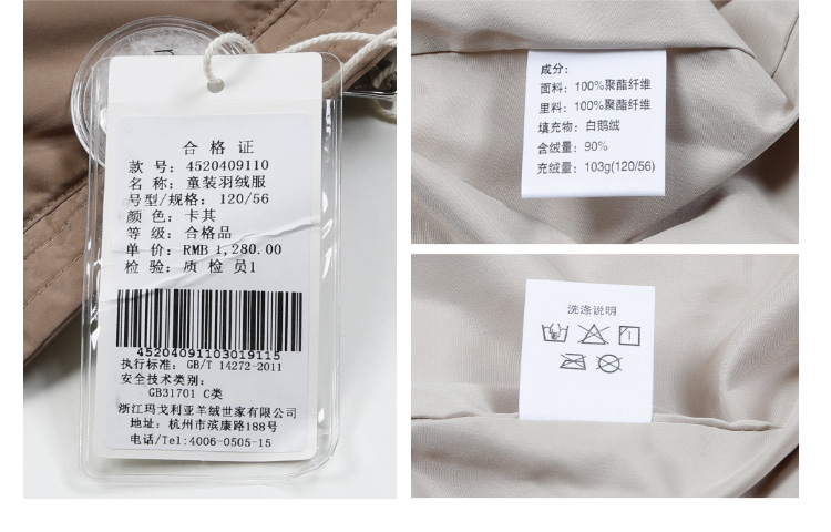 | 含绒量: 90% | 材质成分: 聚酯纤维100% |