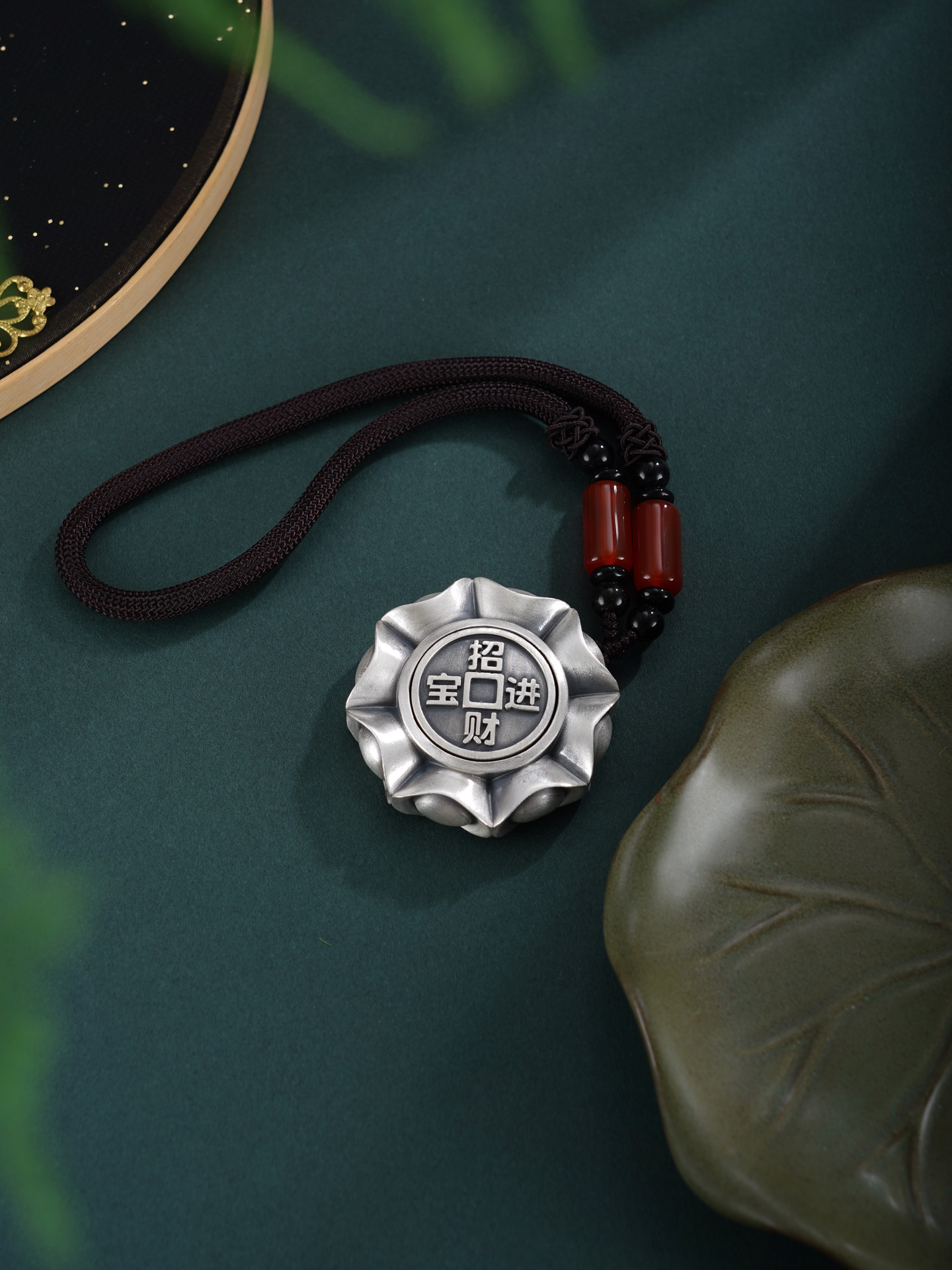 子佩集【财富自由】银S999手把件【YSY018】可转动招财进宝八卦元宝2602
