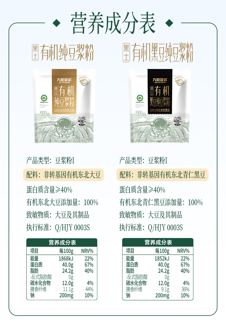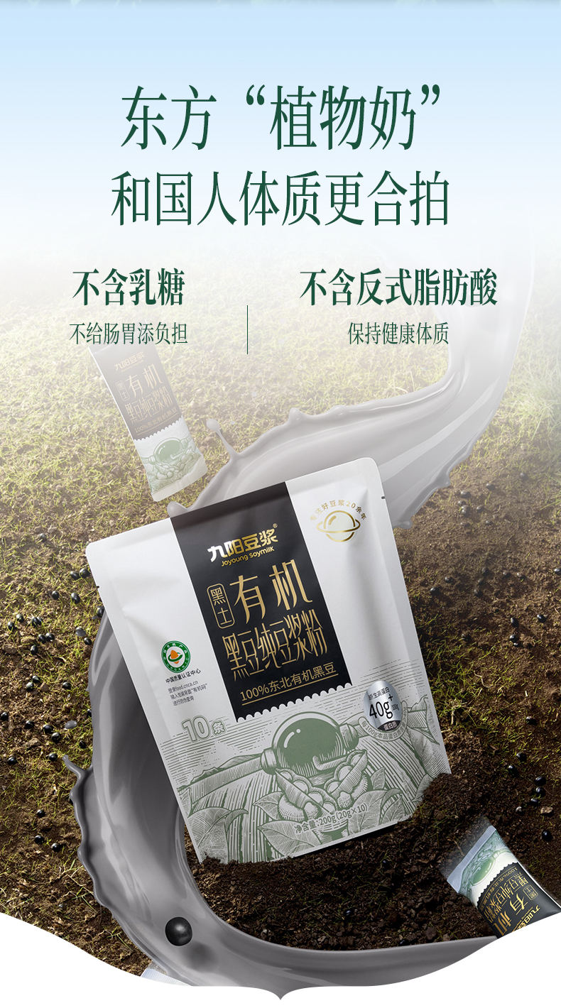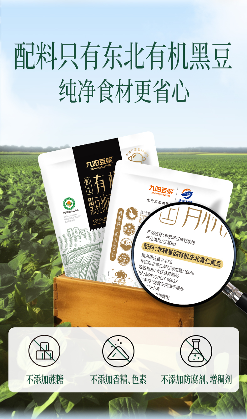 【有机无糖】九阳豆浆有机黑豆纯豆浆粉0添加糖高蛋白早餐学生