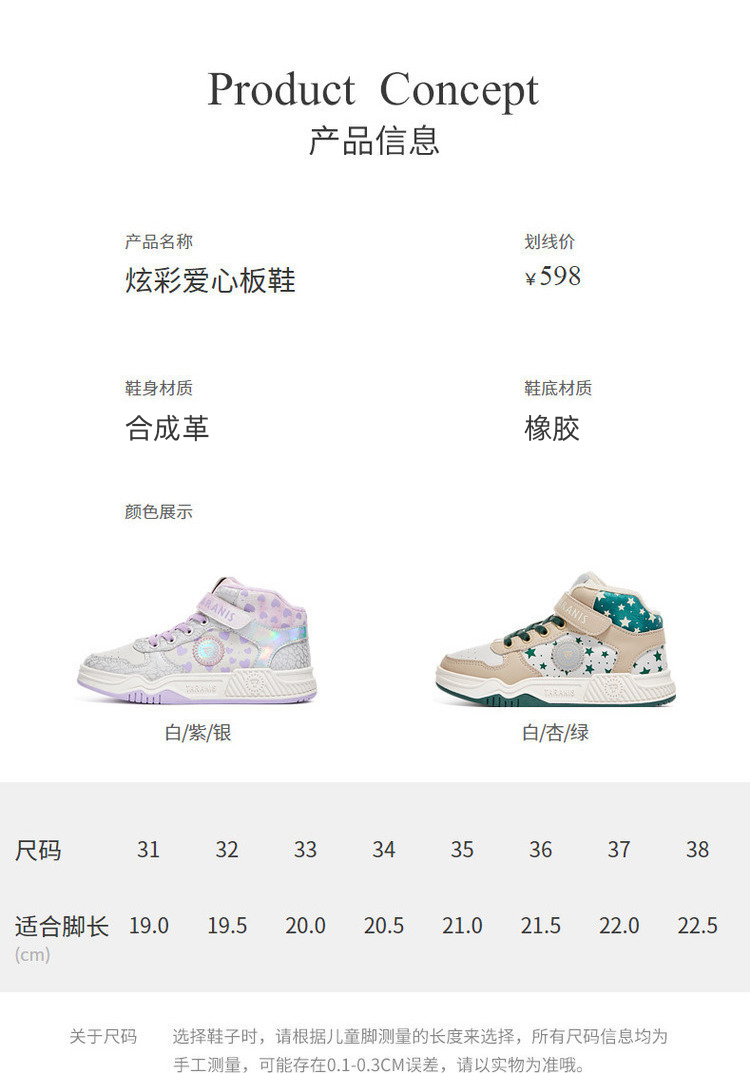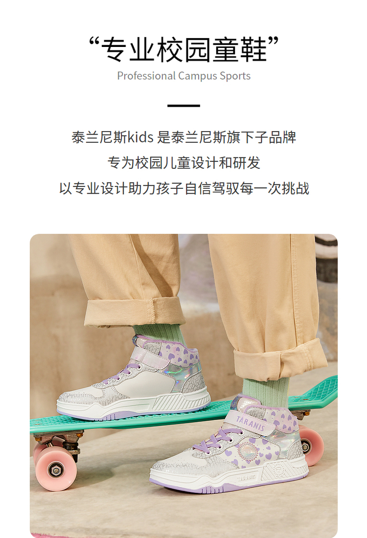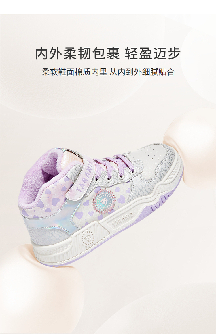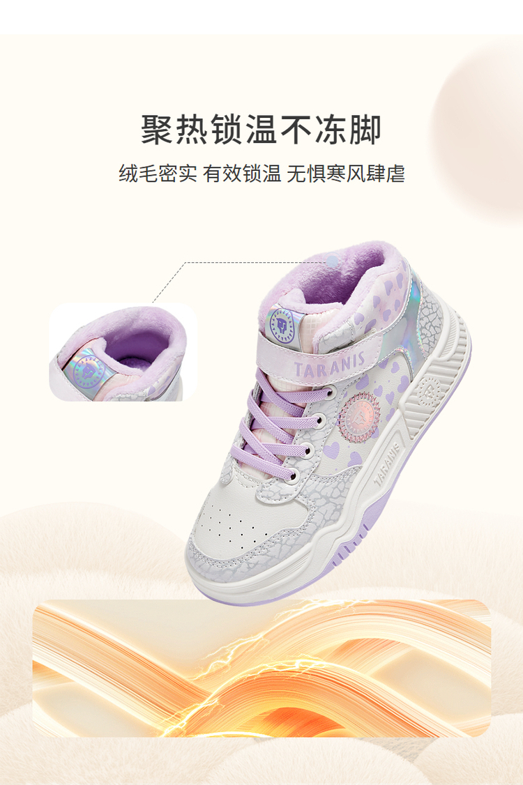 泰兰尼斯2024秋冬儿童板鞋防滑中大童加绒运动鞋软底女男童休闲鞋T02D3D3321
