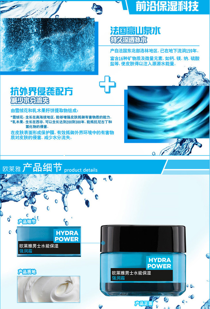 欧莱雅男士水能保湿强润霜
