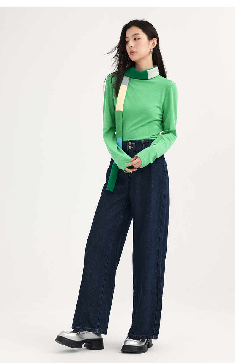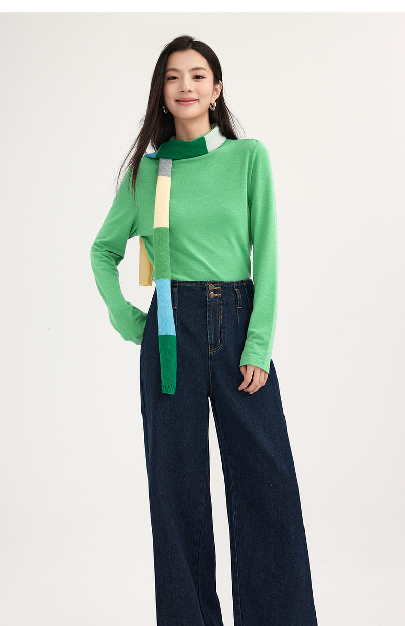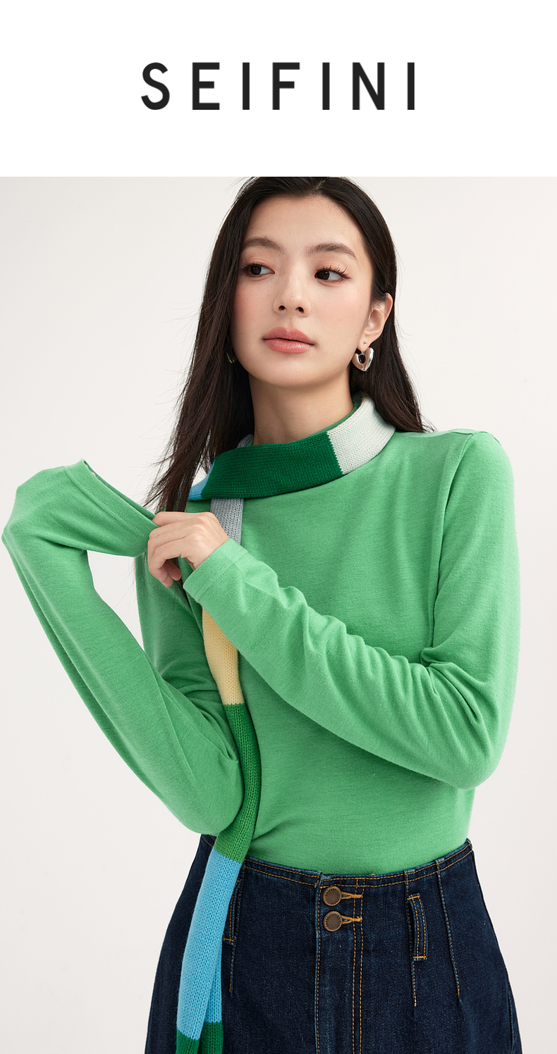【特惠不退货】诗凡黎半高圆领内搭针织衫2024春打底衫女3EC100031