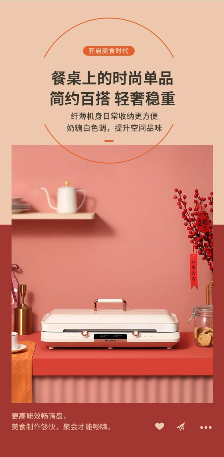 大宇(DAEWOO) 家用双灶多用途锅IH多功能料理盘DYHG-C20A1