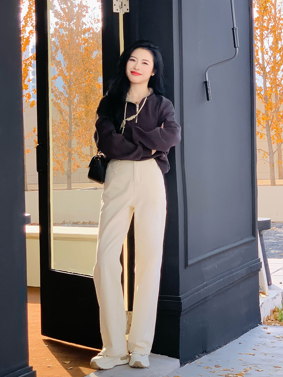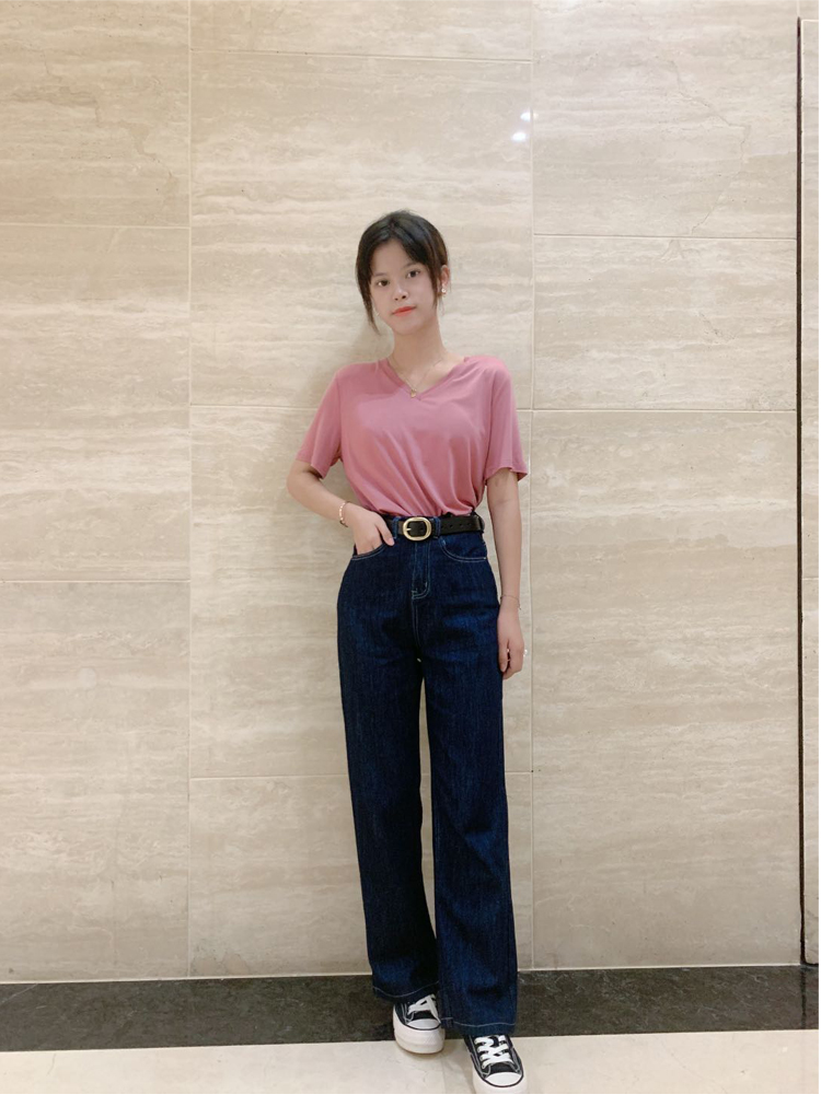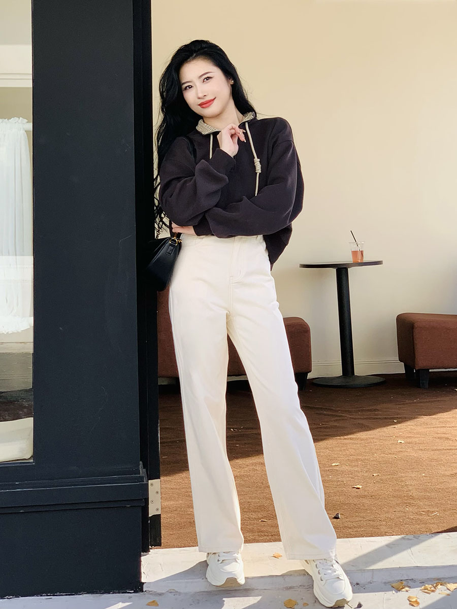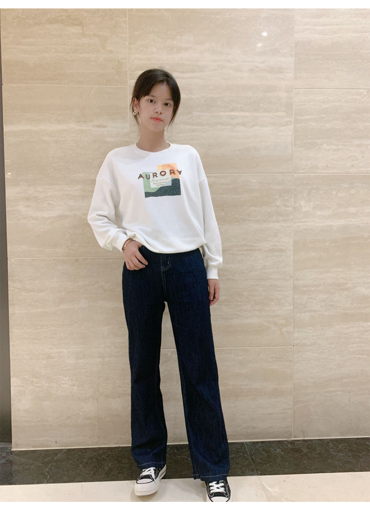 面料:100%棉适合温度:20-35度适合季节:春夏秋颜色:深蓝色弹力:面料无弹力腰型:高腰裤长:长款版型:直筒型穿脱方式:裤门襟