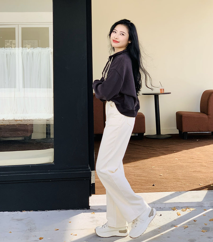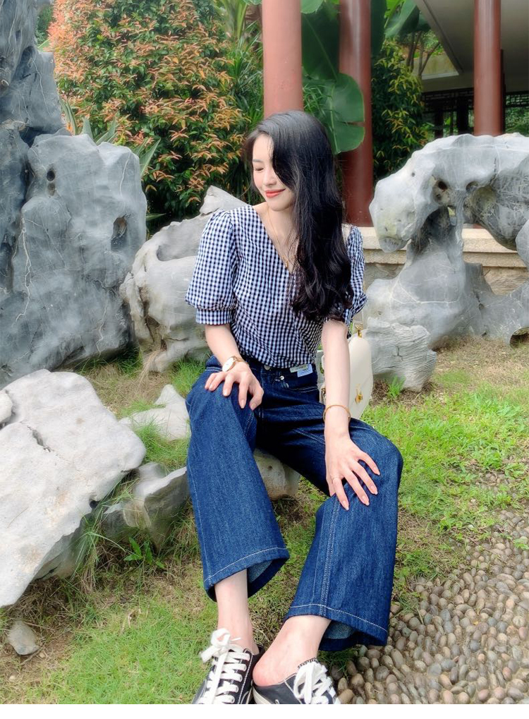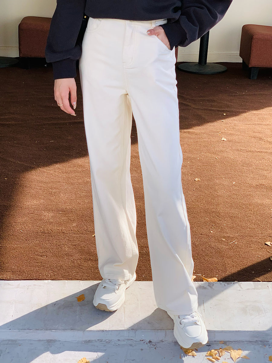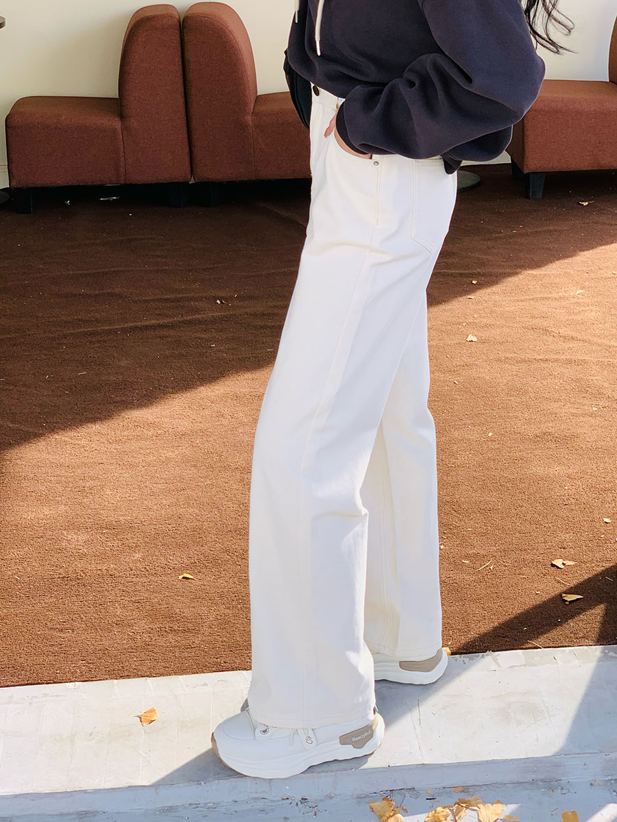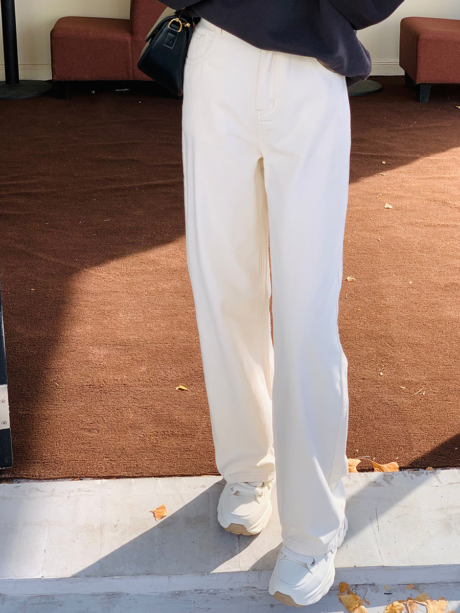 面料:100%棉适合温度:20-35度适合季节:春夏秋颜色:深蓝色弹力:面料无弹力腰型:高腰裤长:长款版型:直筒型穿脱方式:裤门襟