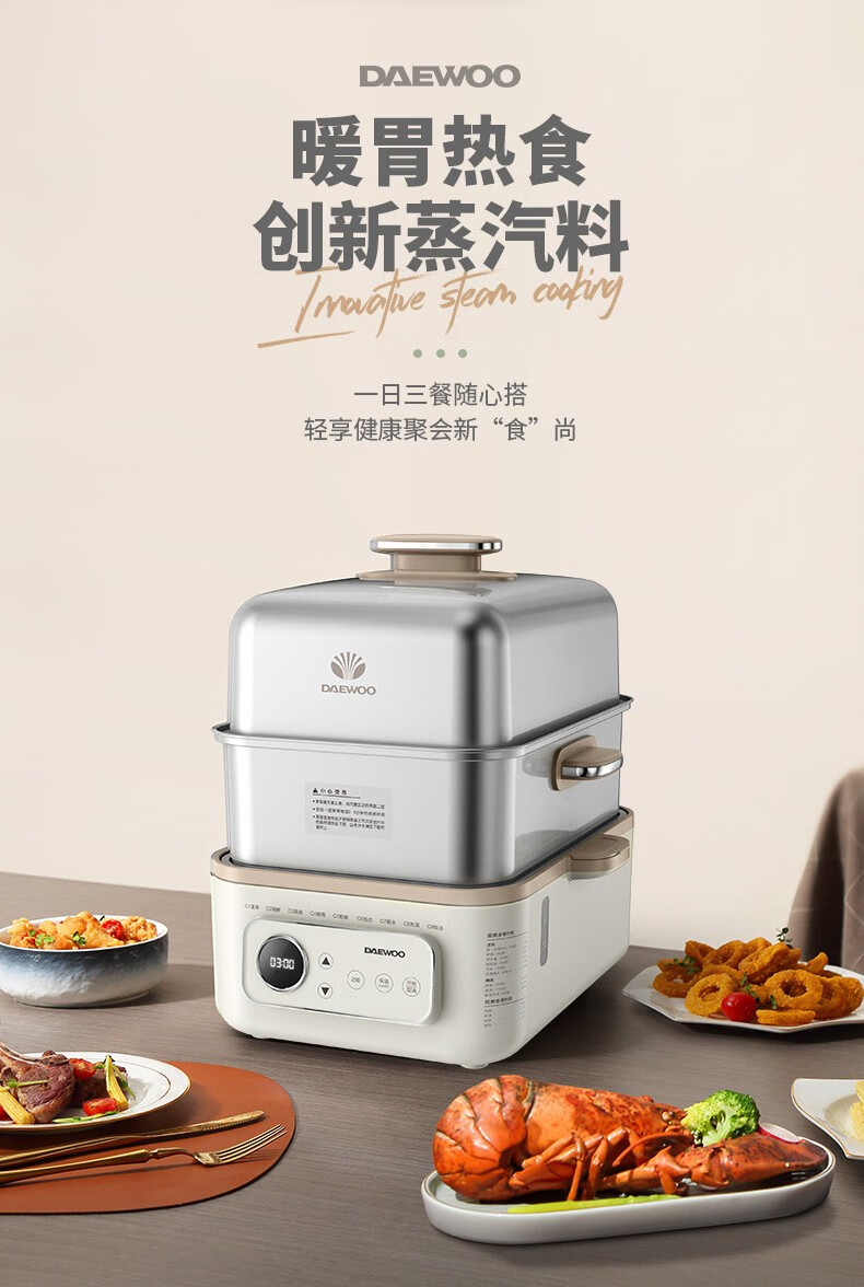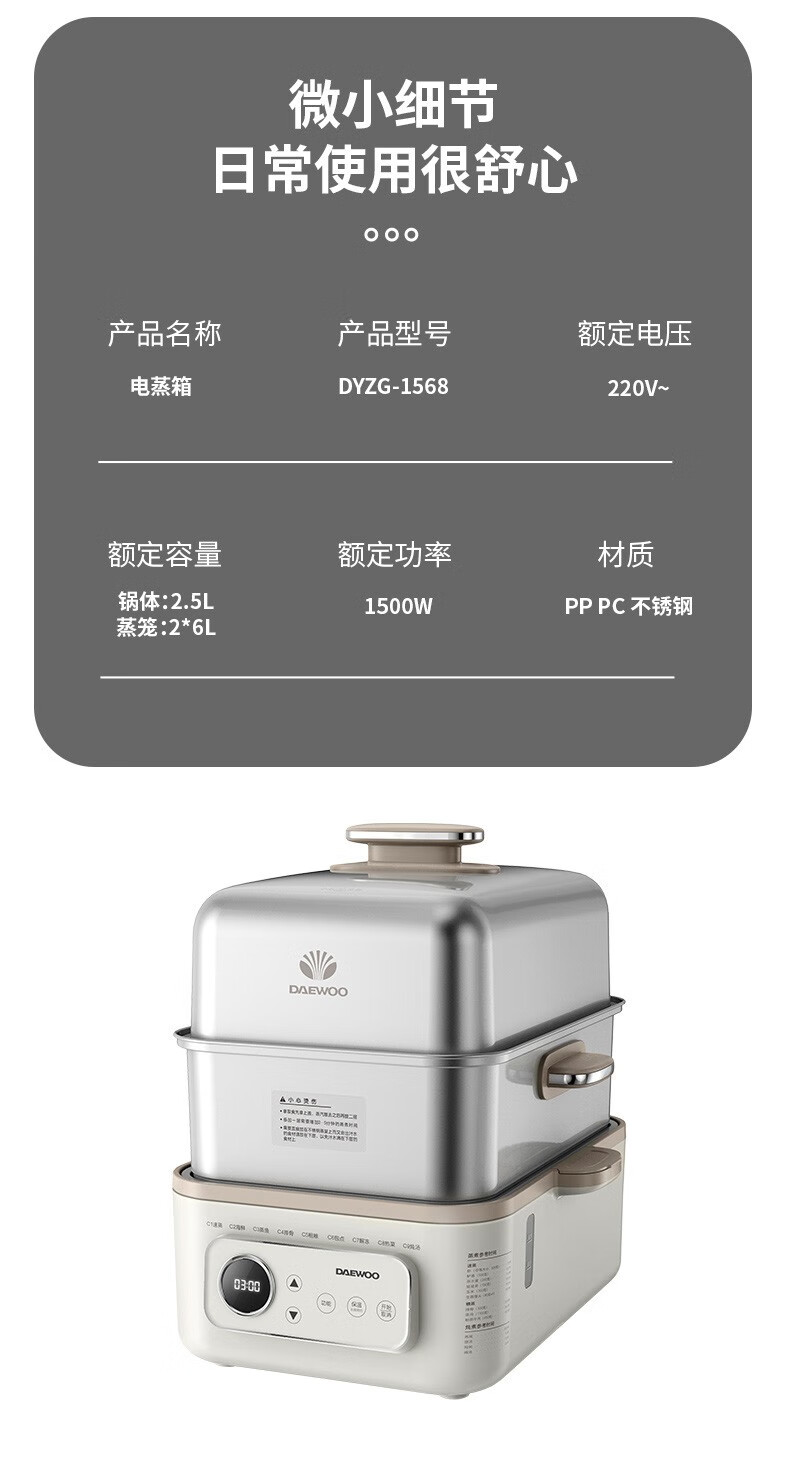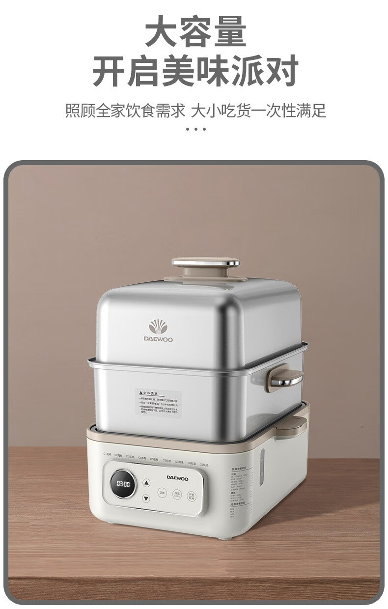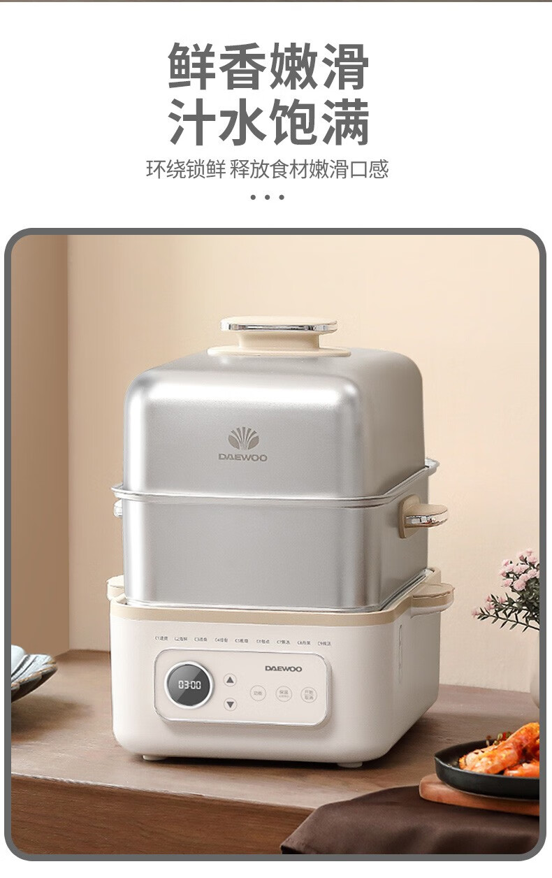大宇(DAEWOO)多功能电蒸箱家用双层容量多功能电蒸锅DYZG-1568流苏白