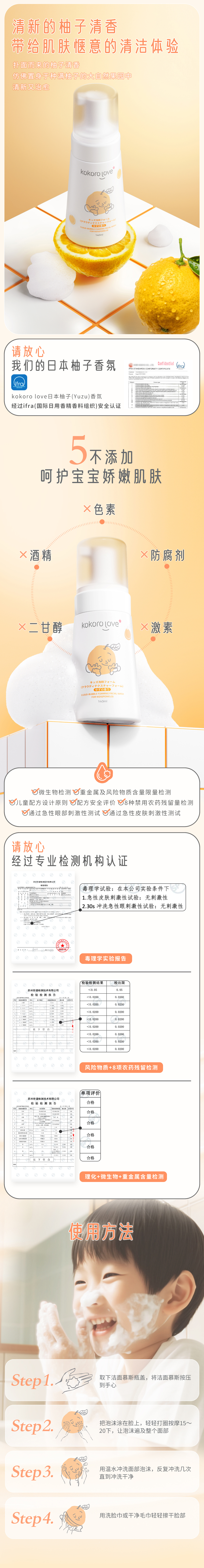 kokorolove初葆儿童云朵洗颜慕斯(柚香) 清洁 温和 | 4岁+ | 140ml