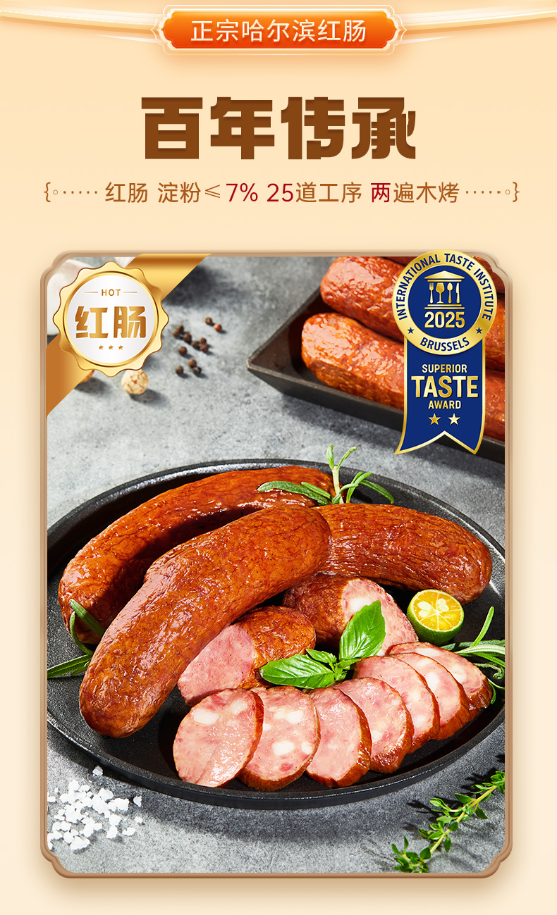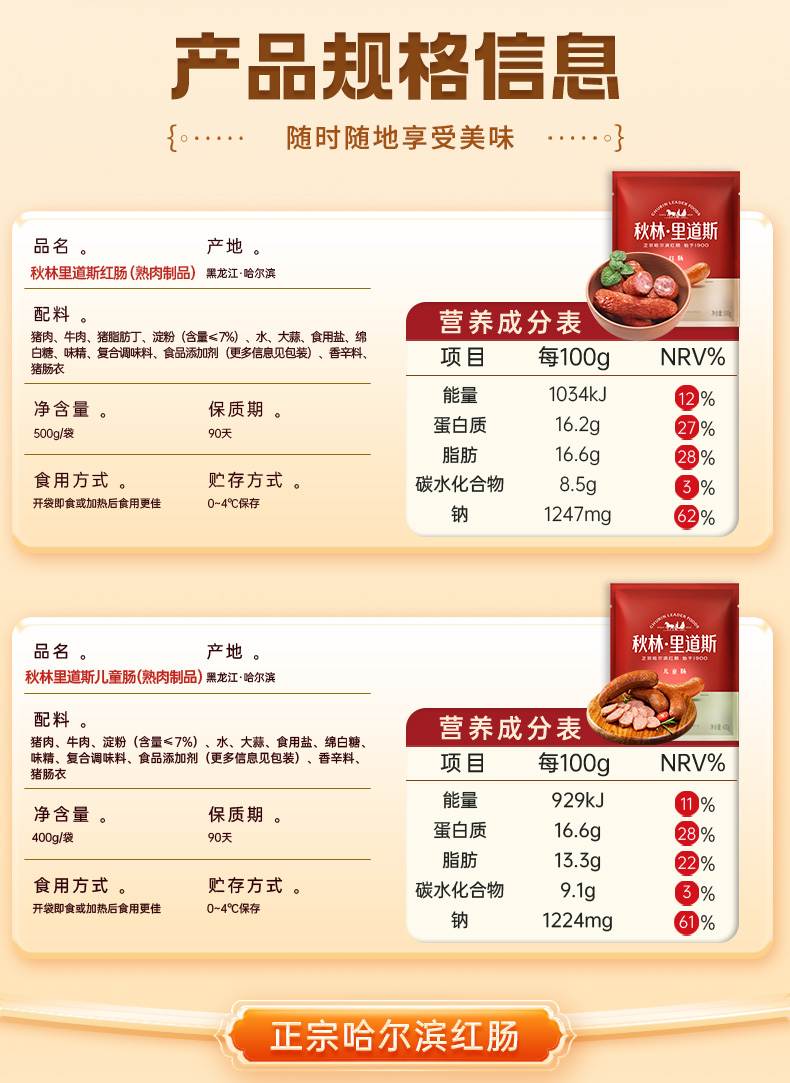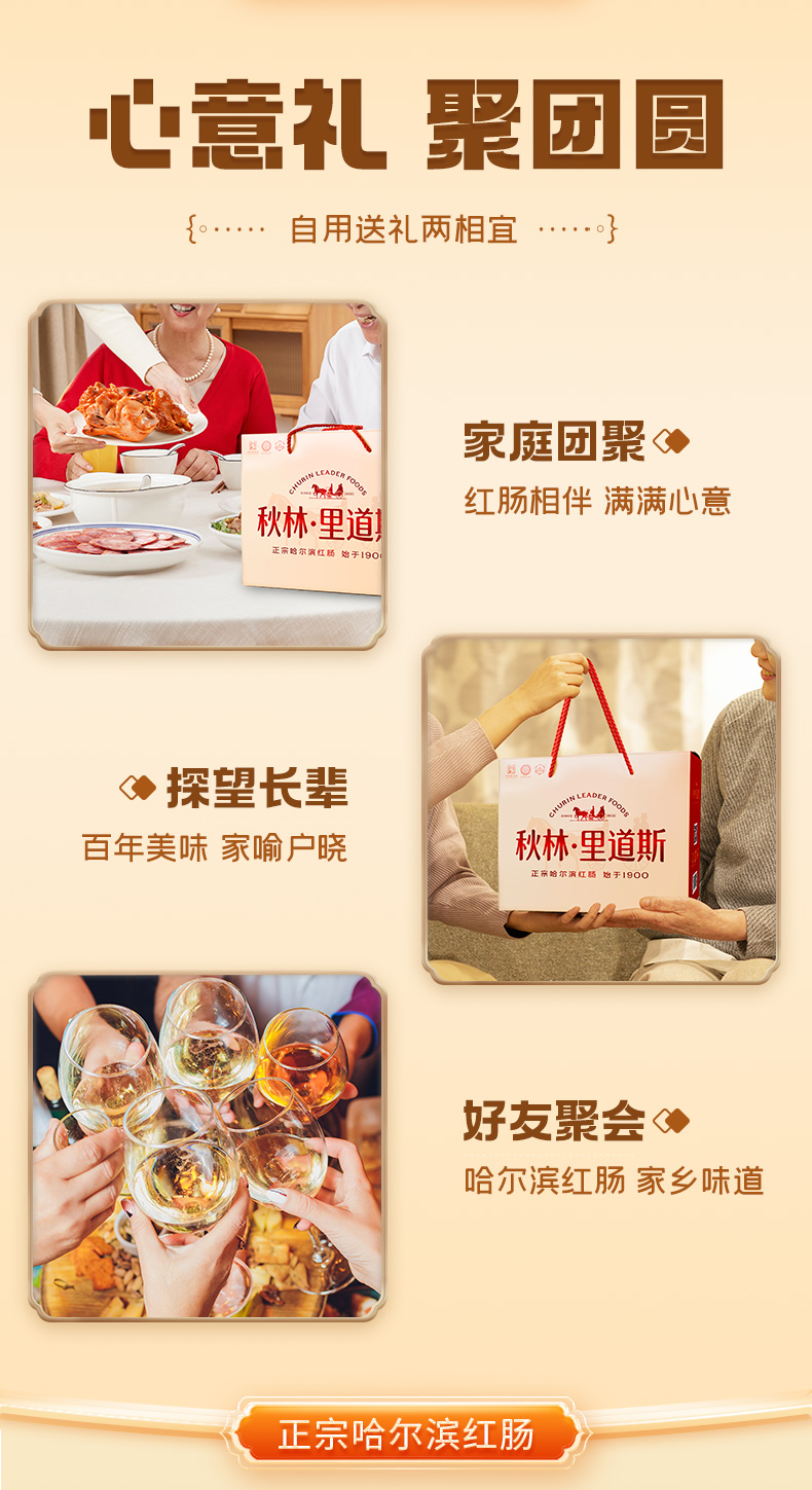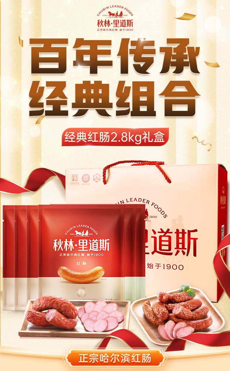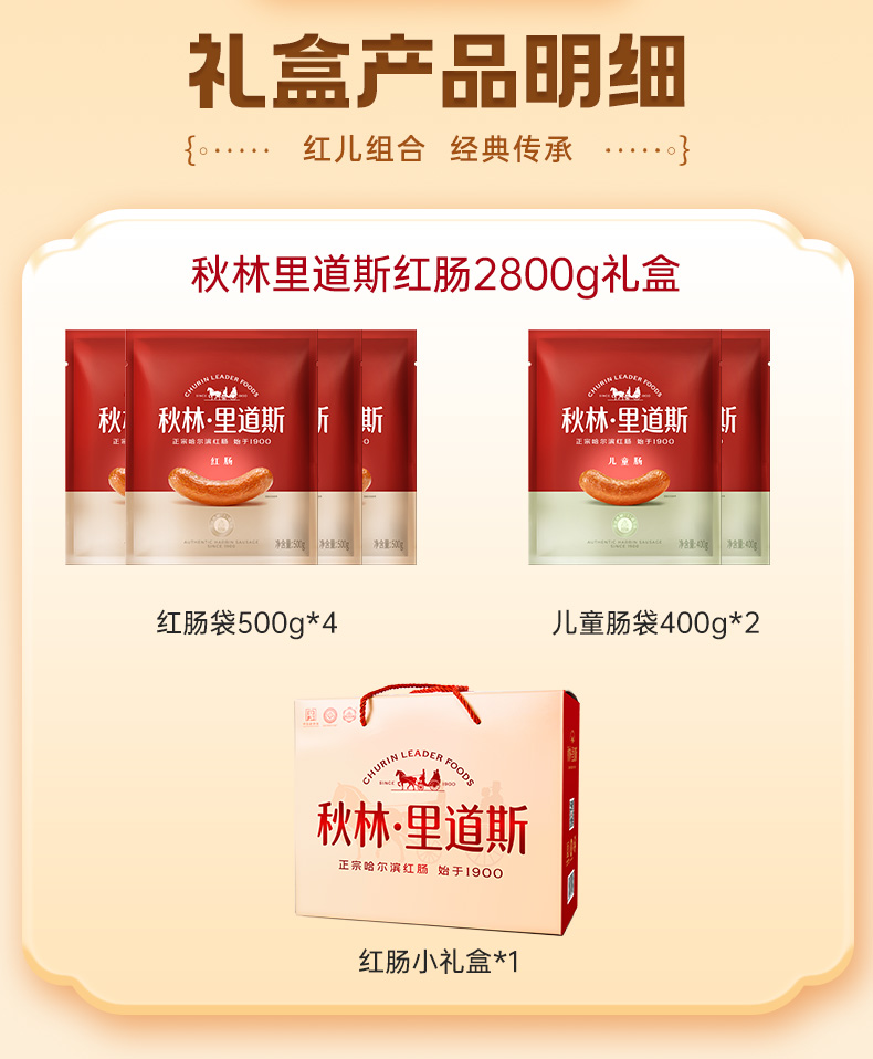 秋林里道斯哈尔滨红肠2.8kg年货礼盒(红肠500g*4袋+儿童肠400g*2袋)东北特产熟食礼盒