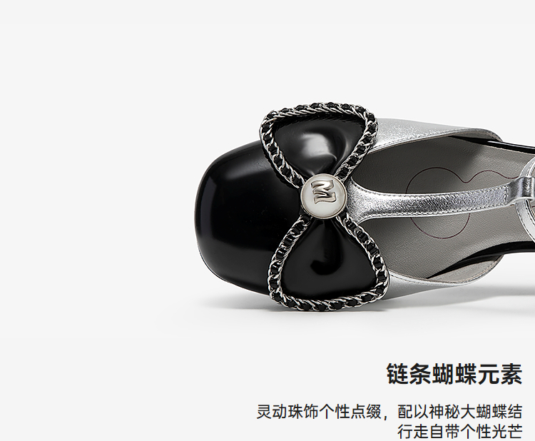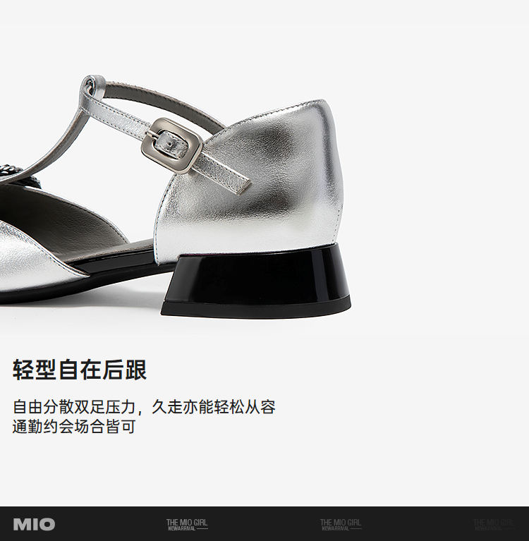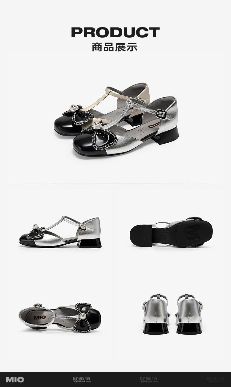 MIO米奥女鞋小香风凉鞋春夏新款甜美链条蝴蝶结法式浅口单鞋皮鞋M252240712