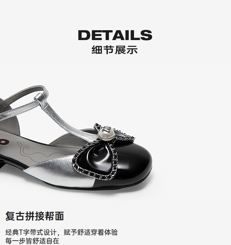 千百度蝴蝶钻饰低跟玛丽珍女鞋通勤真皮通勤浅口单鞋A25185101
