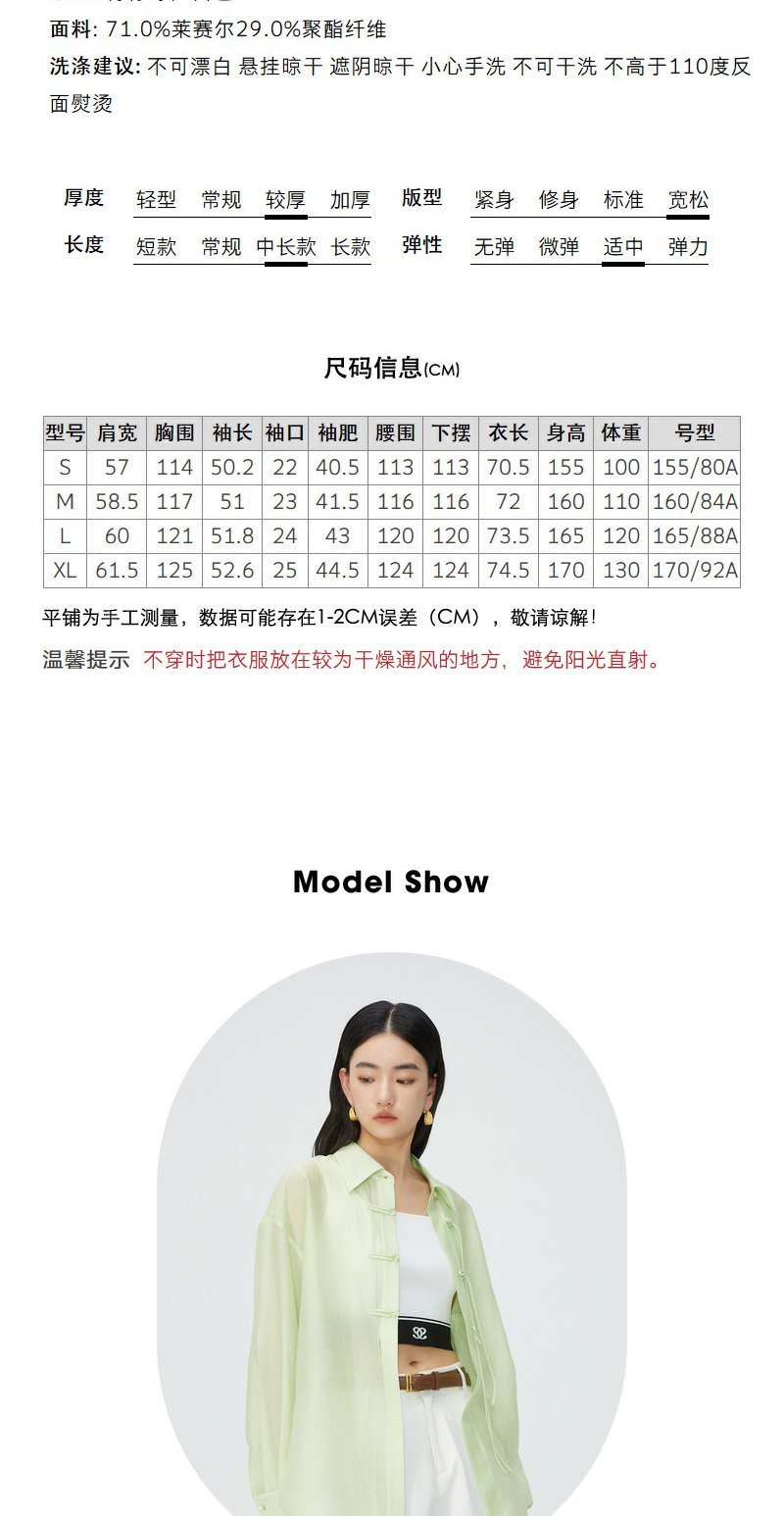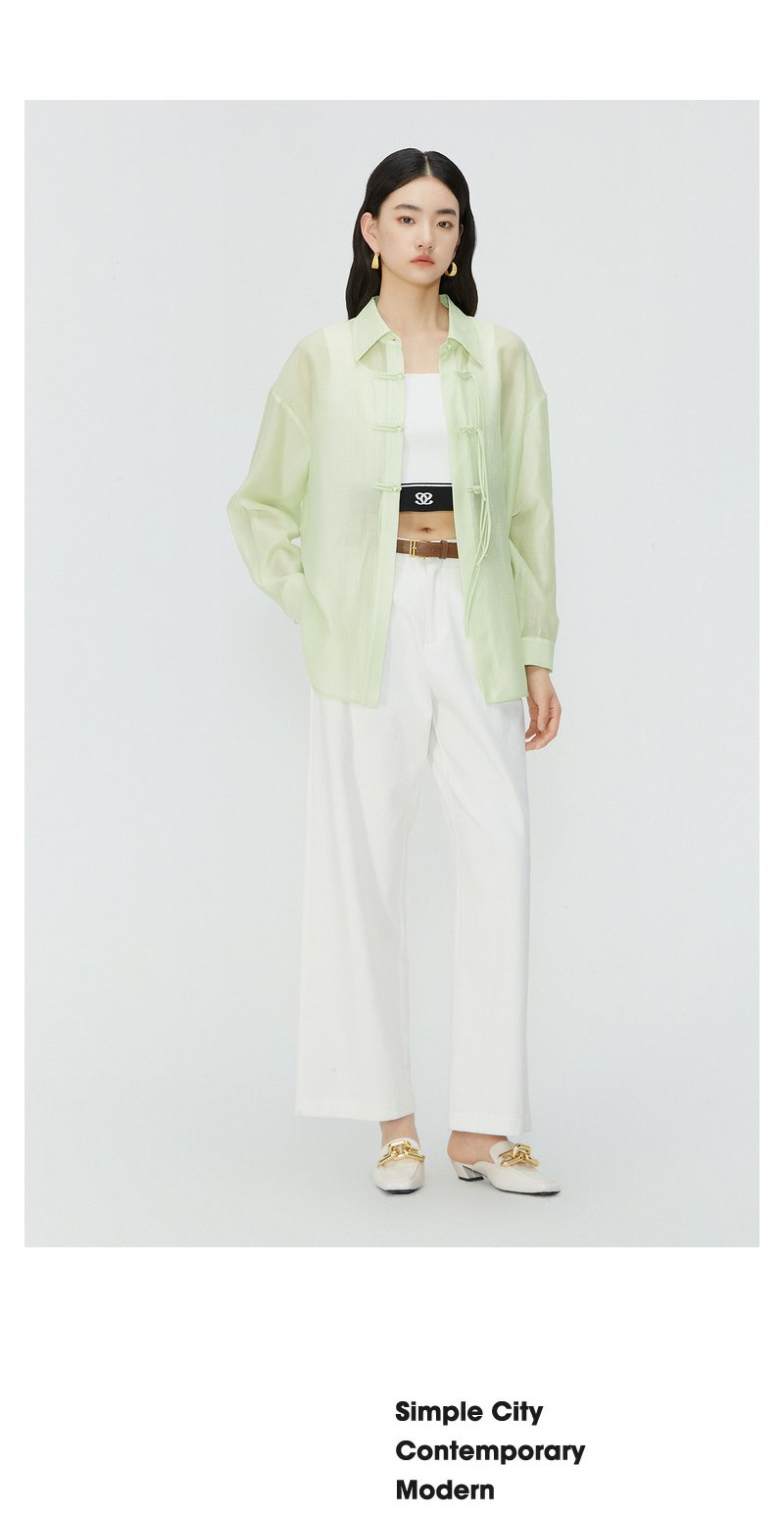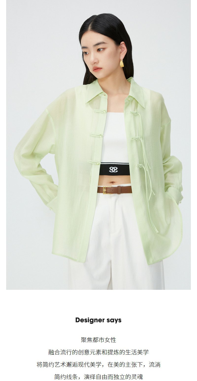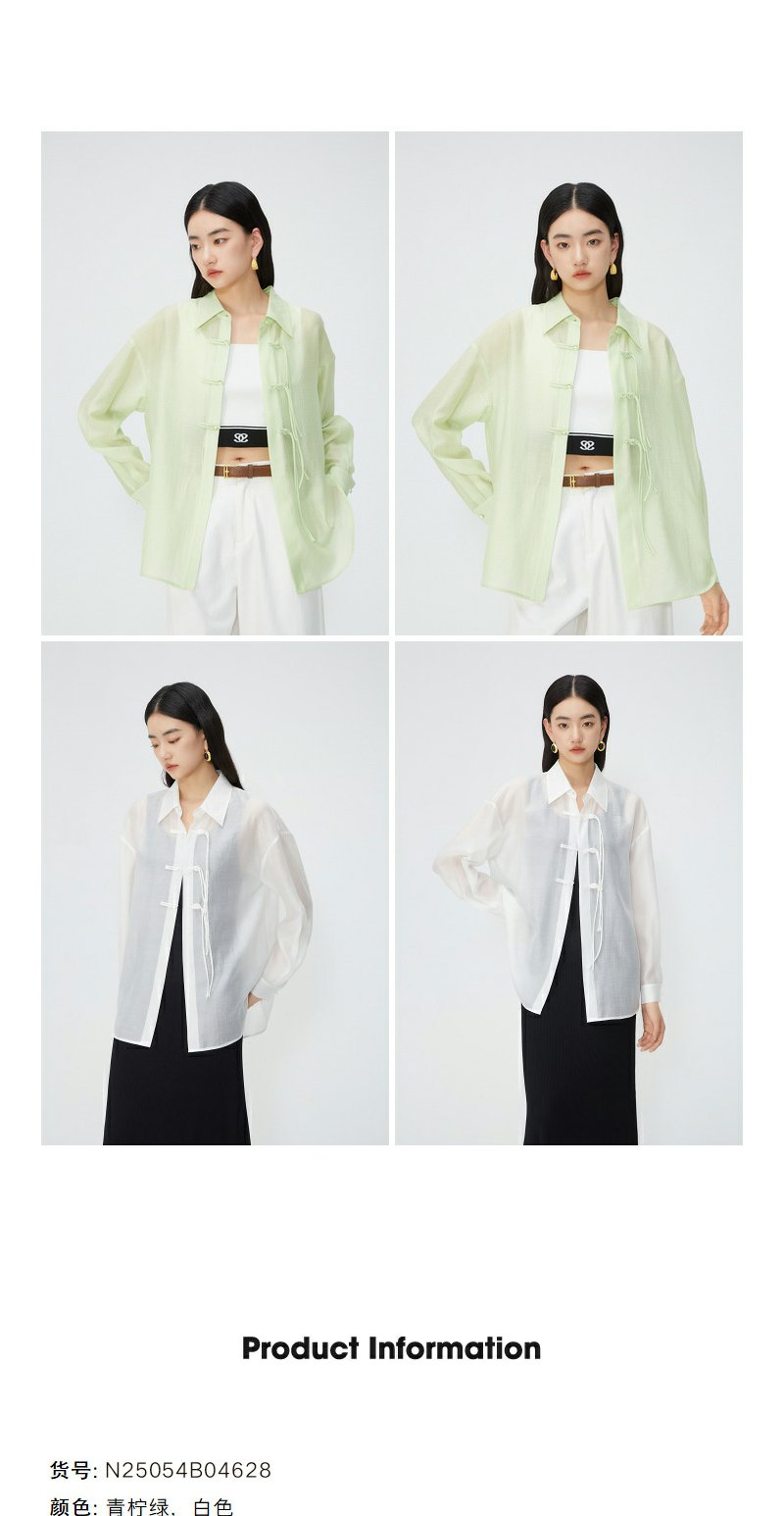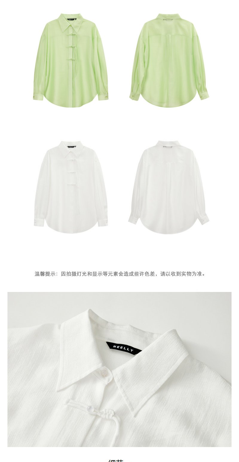 NEELLY纳俪商场同款夏季新款莱赛尔新中式衬衫女盘扣百搭清新外套N25054B04628