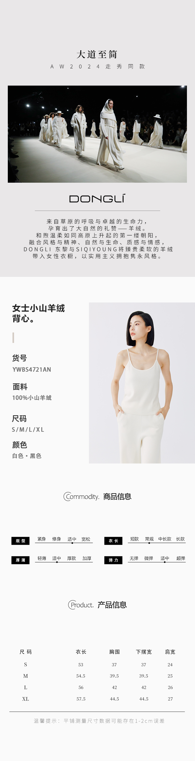 东黎 •小山羊绒女士秋冬吊带背心 4721