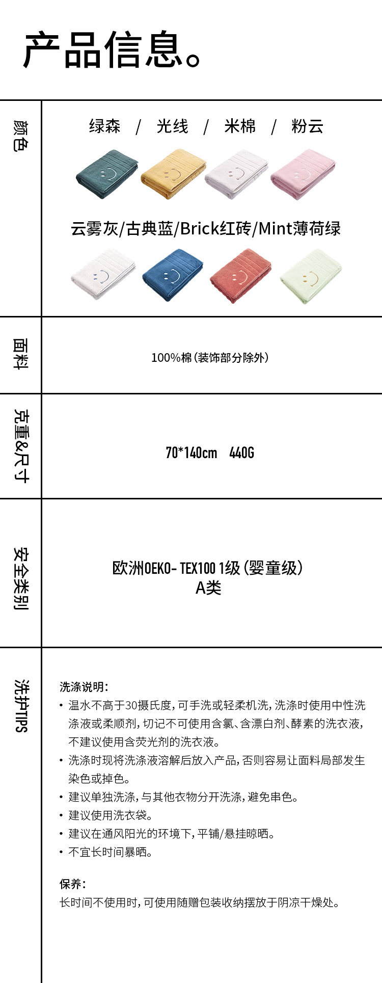 【云优选】SMILEY 新疆长绒棉纯色浴巾抗菌440g超量克重吸水浴巾70*140
