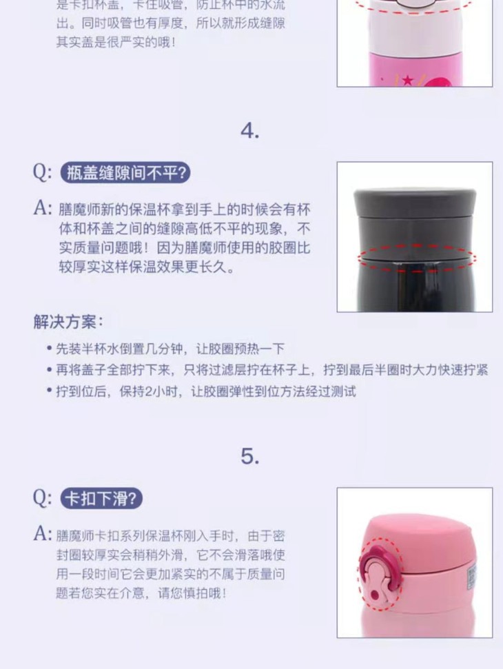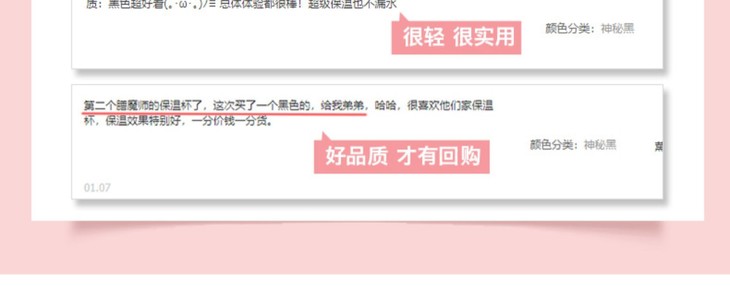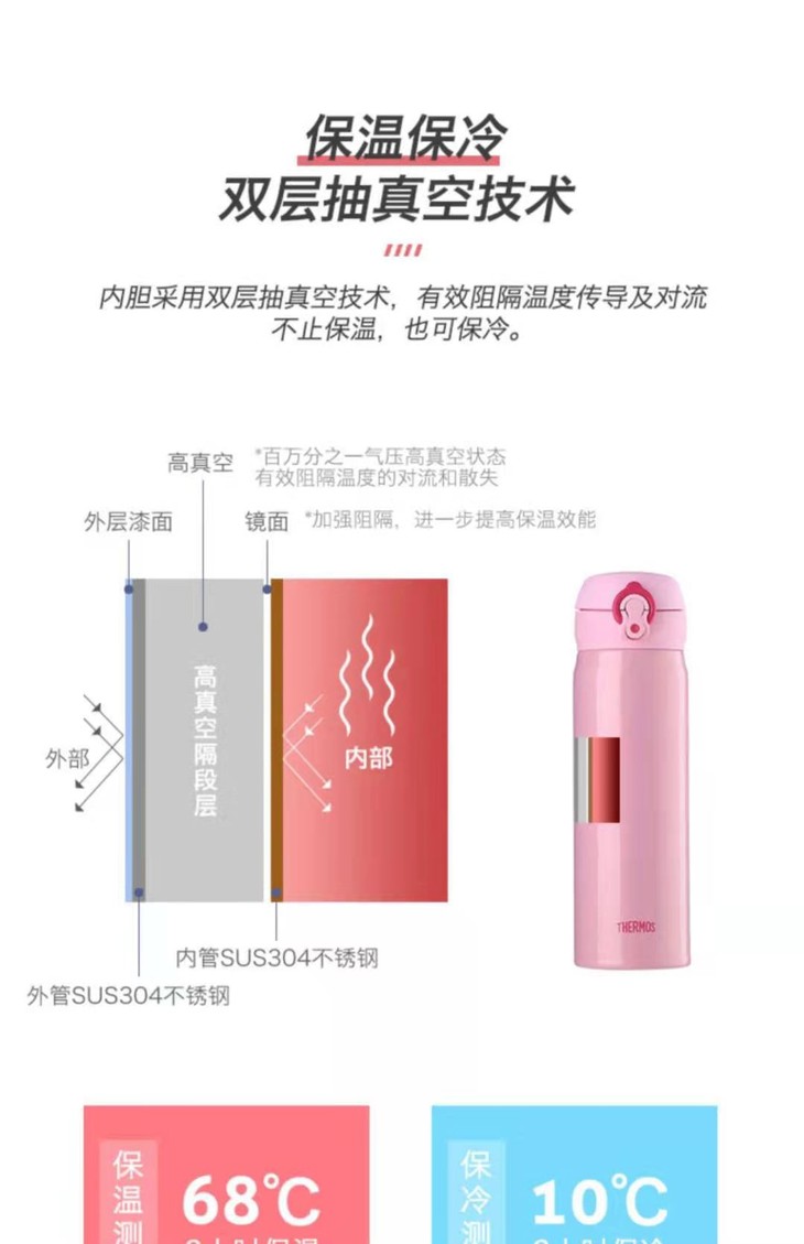 特点:安全性高奥氏体304不锈钢,盖子采用食用级PP材质 更安全健康,高效持续的保温 能让你晚上倒了热水,第二天还可以喝到温呼呼的水