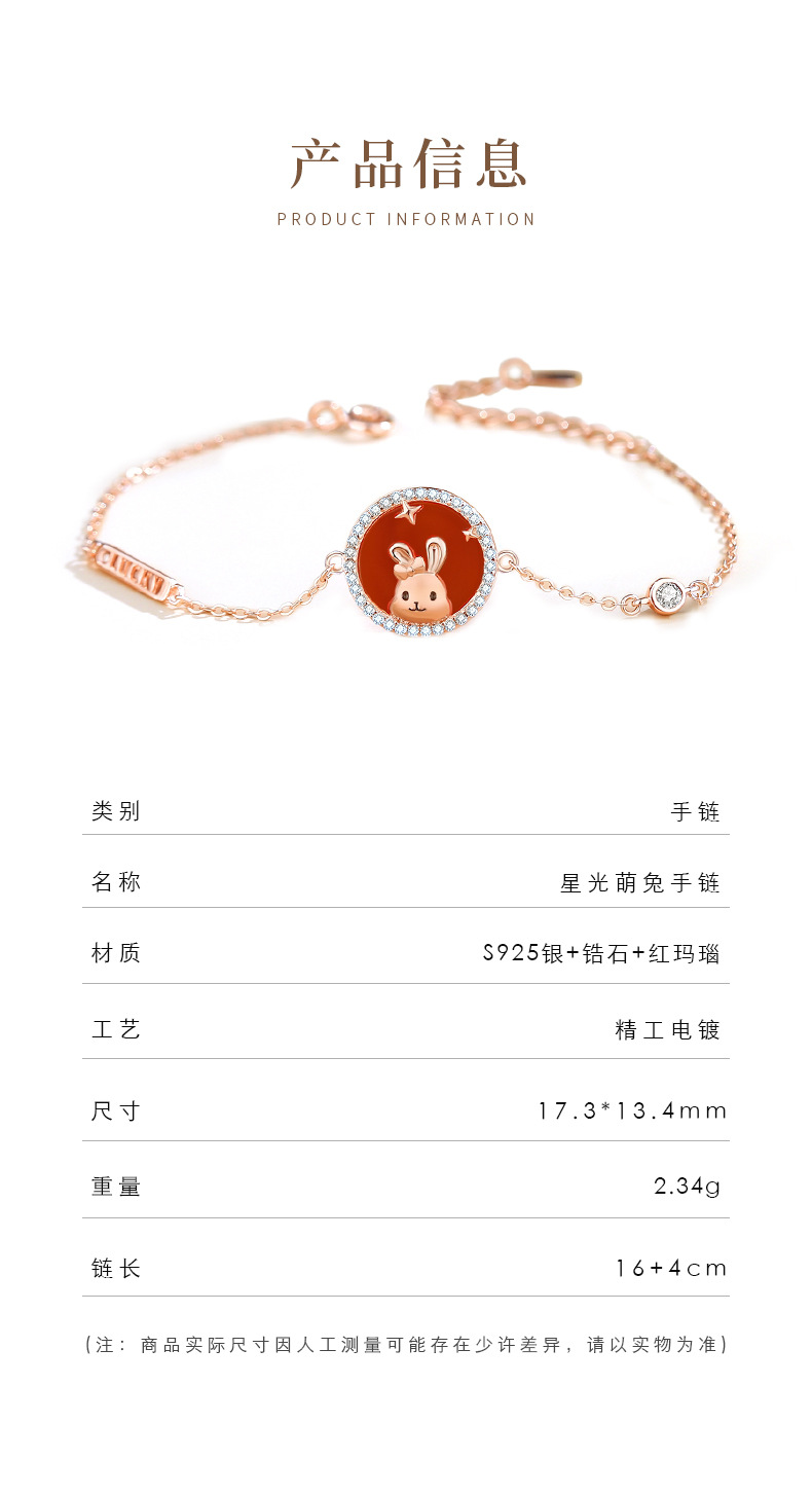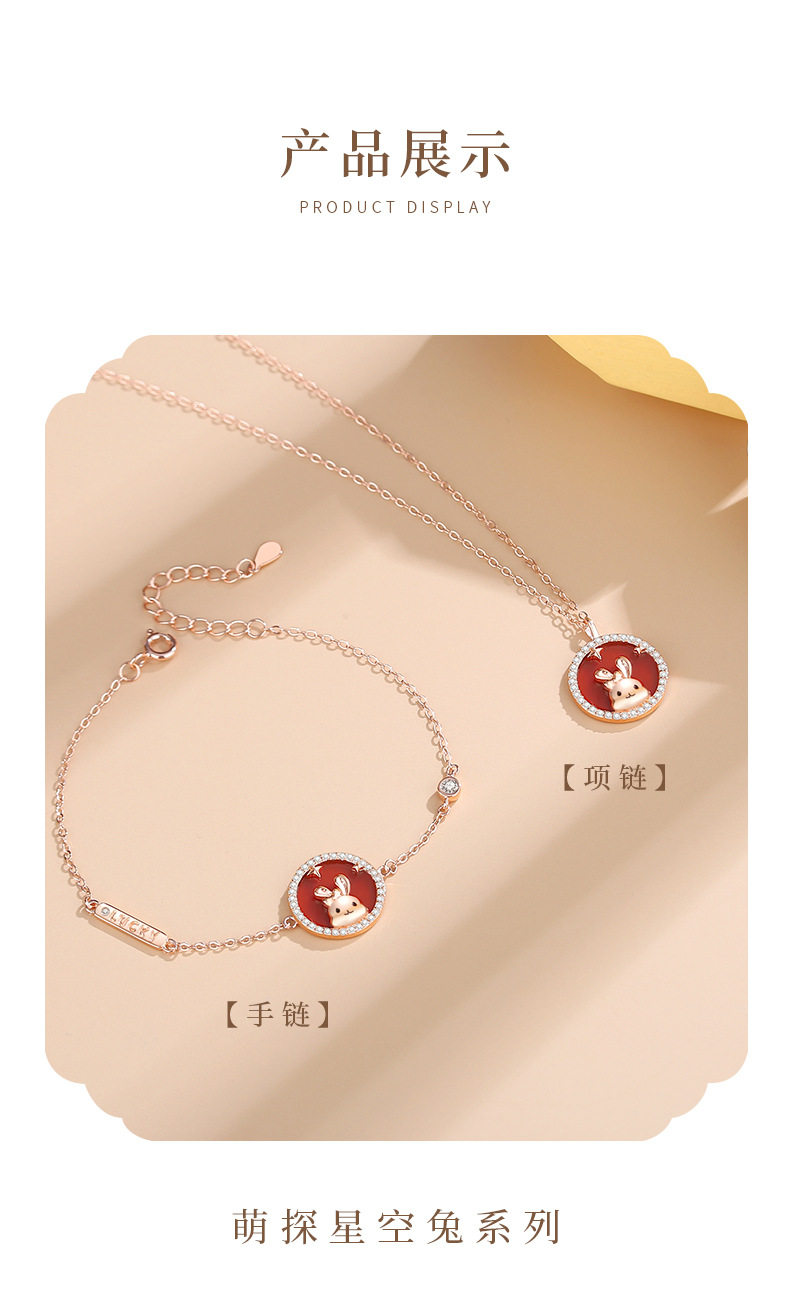 【品牌授权】BOMURNNY/宝慕尼 S925纯银星光萌兔兔子兔年限定项链手链两件套