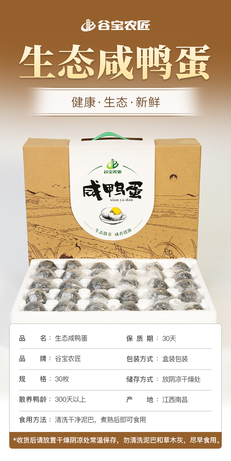 【谷宝农匠】生态手工咸鸭蛋30枚装