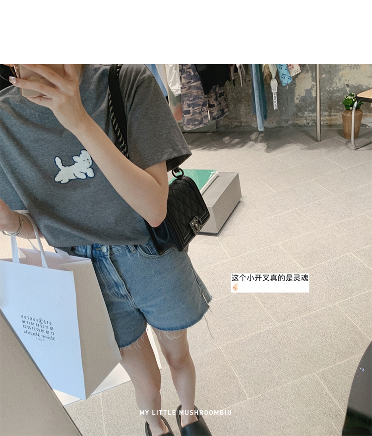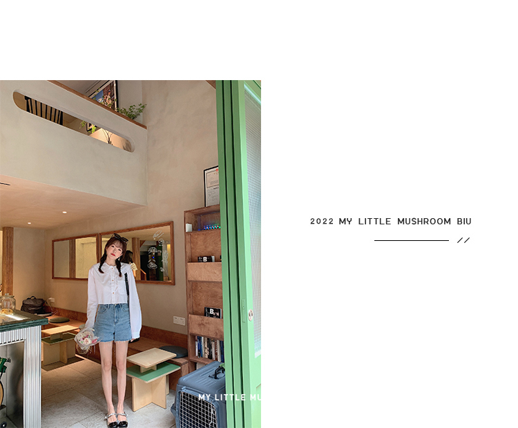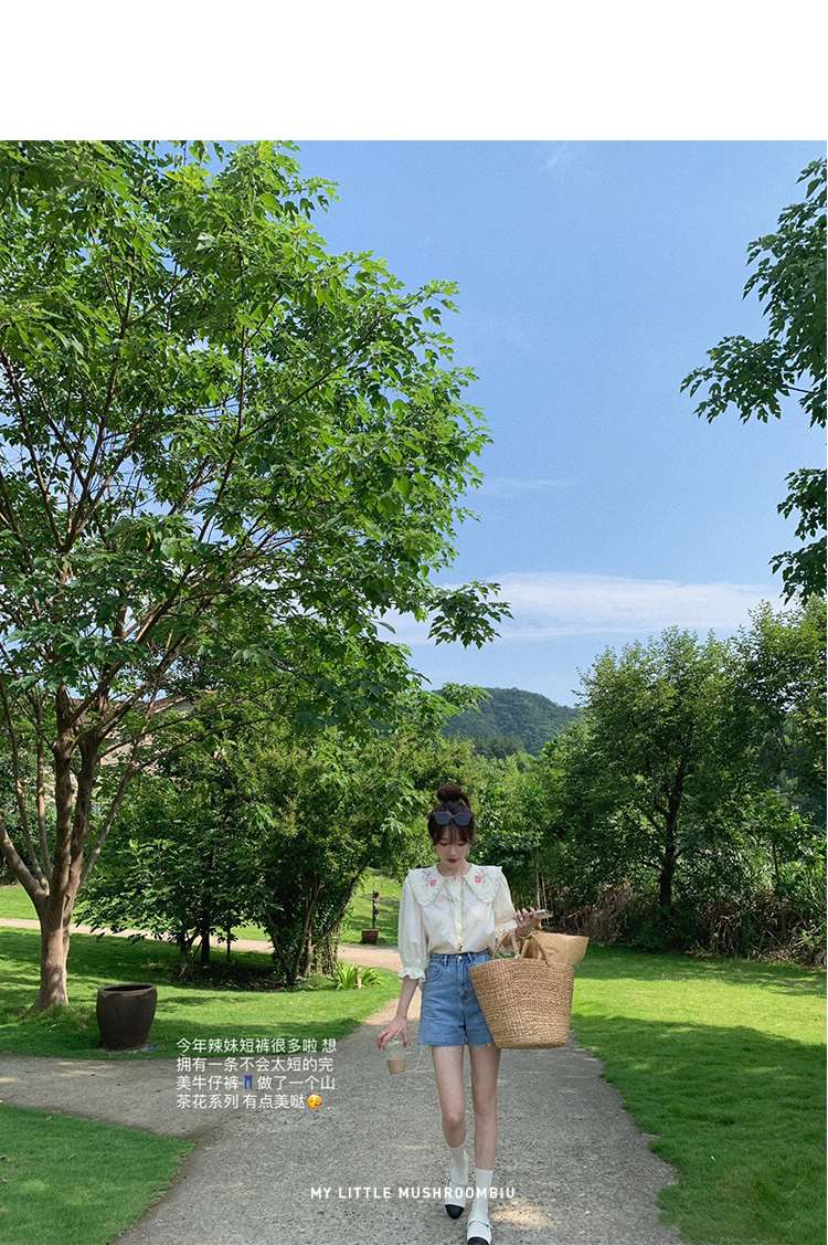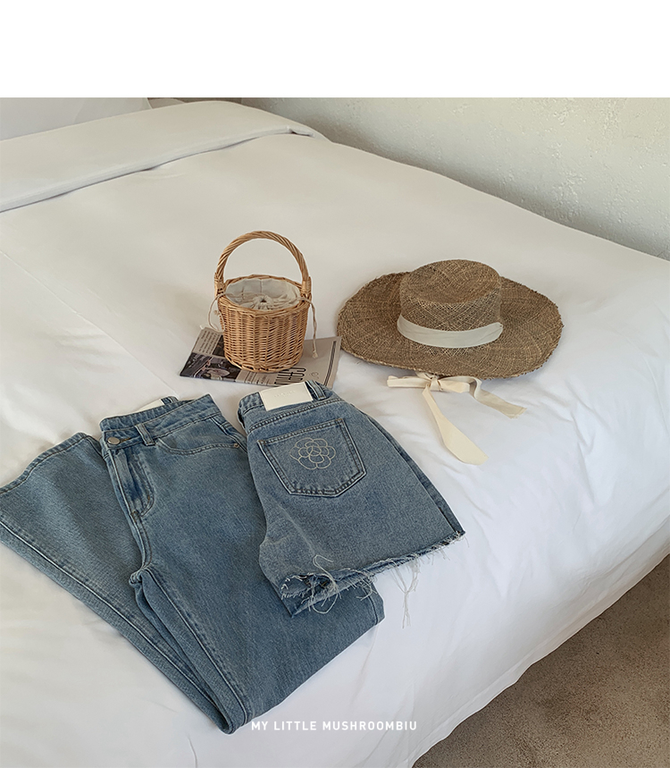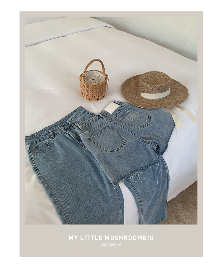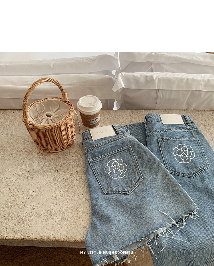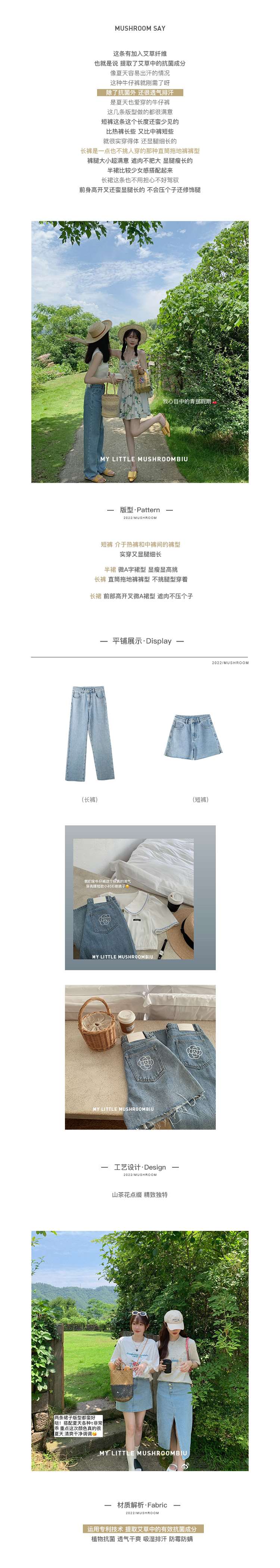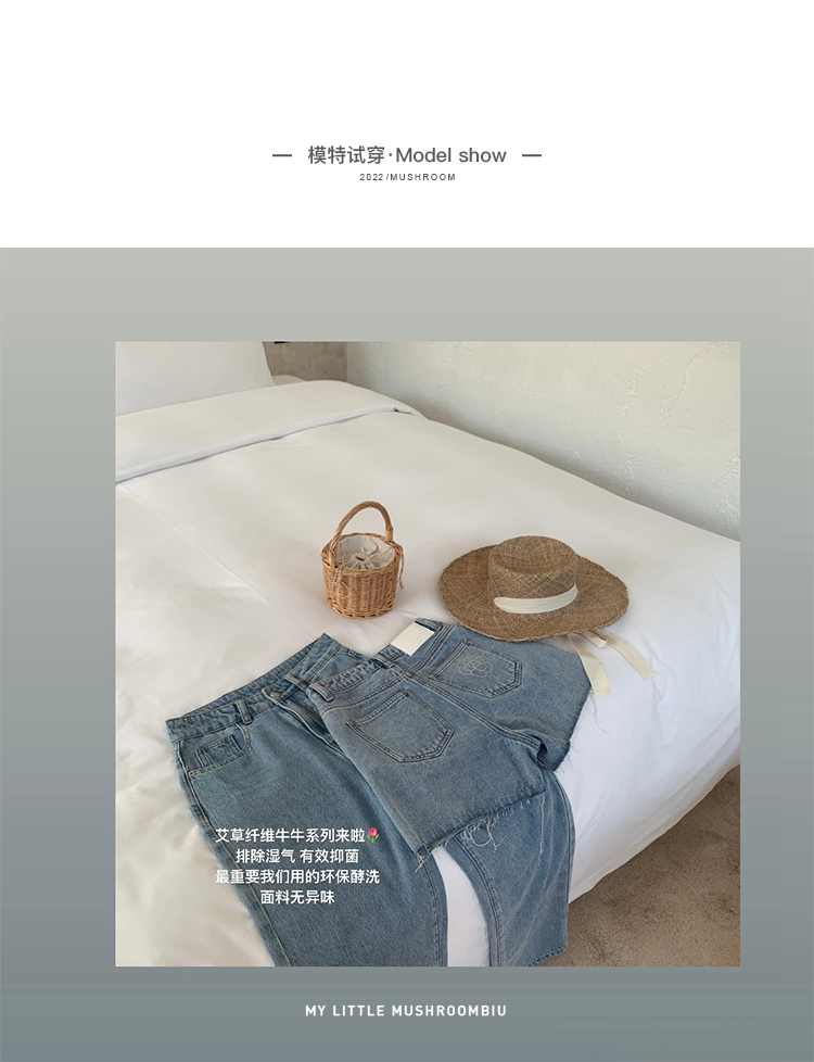 金蘑菇菇【山茶花 艾草牛仔】短裤/半裙/长裤浅蓝百搭牛仔短裤