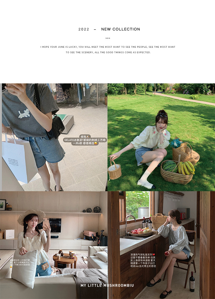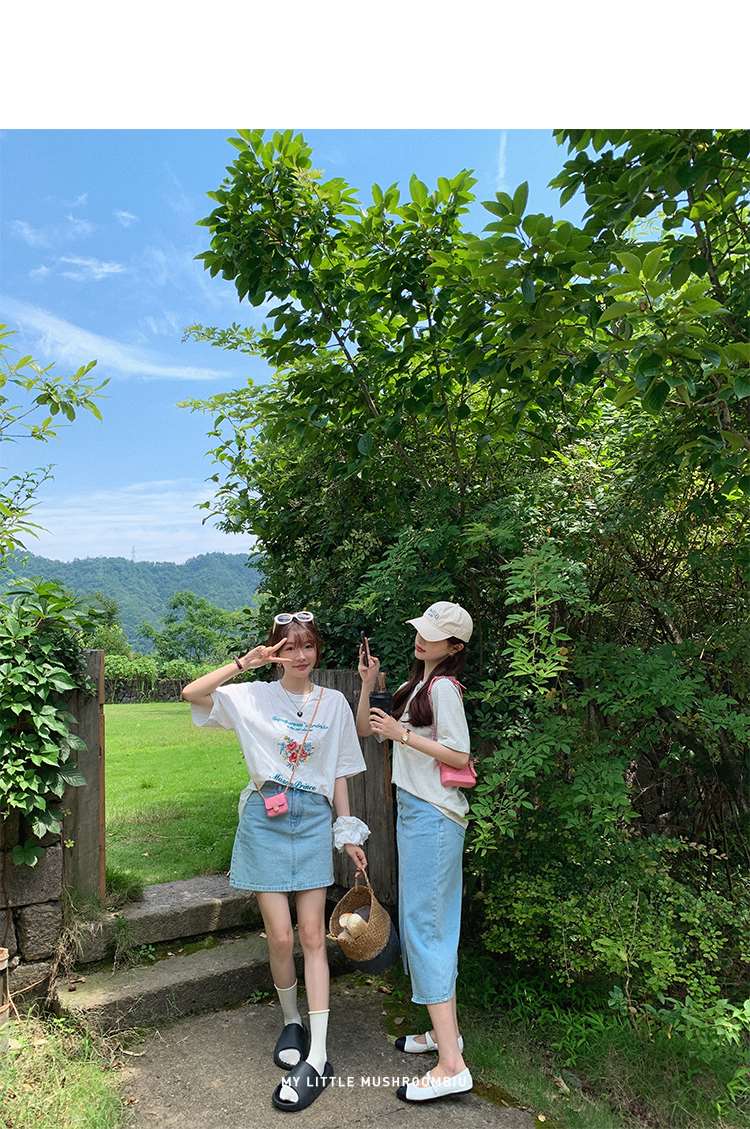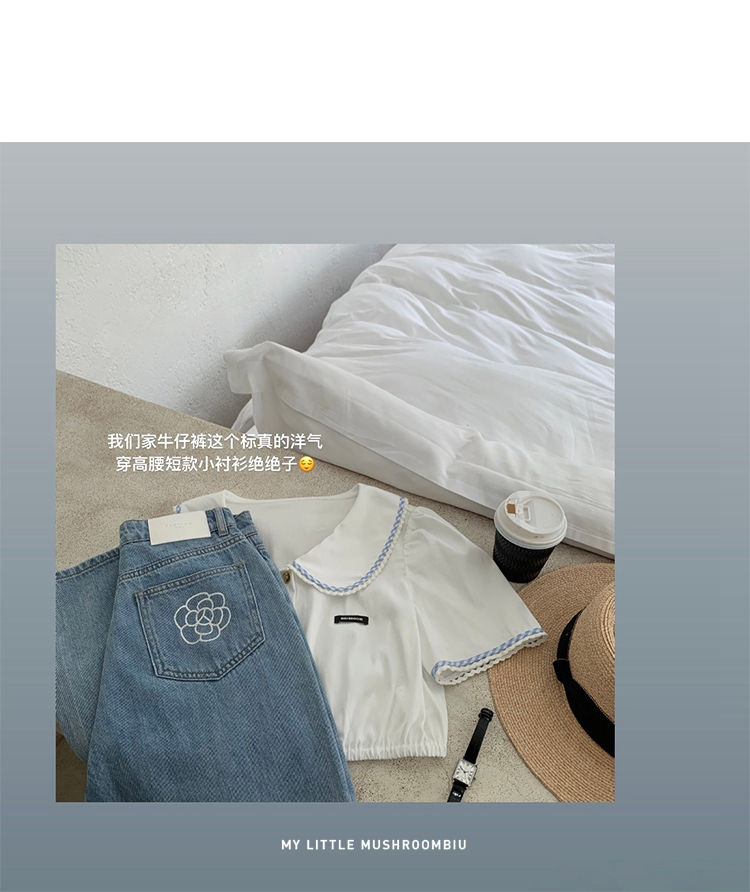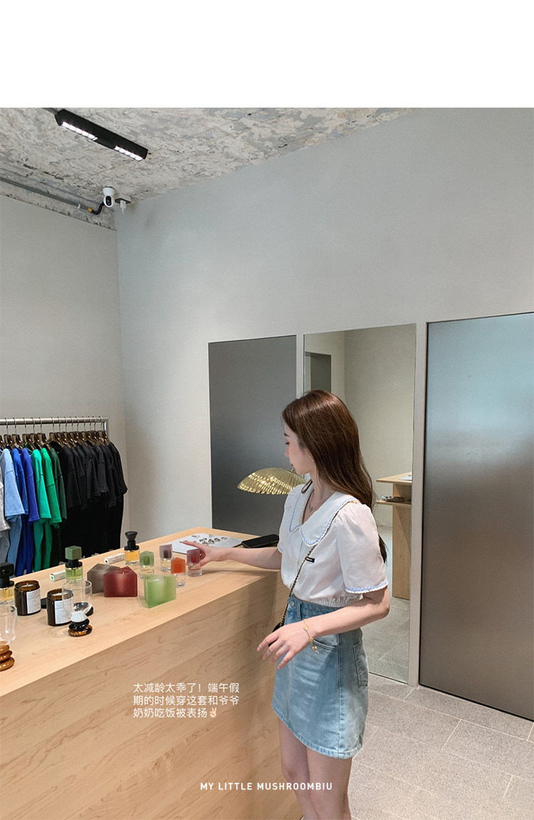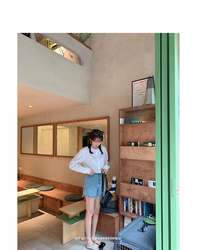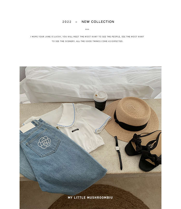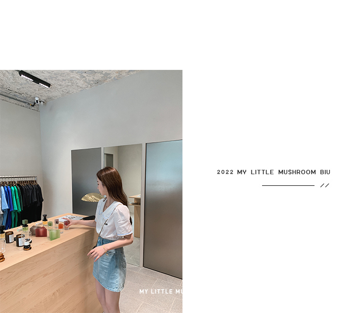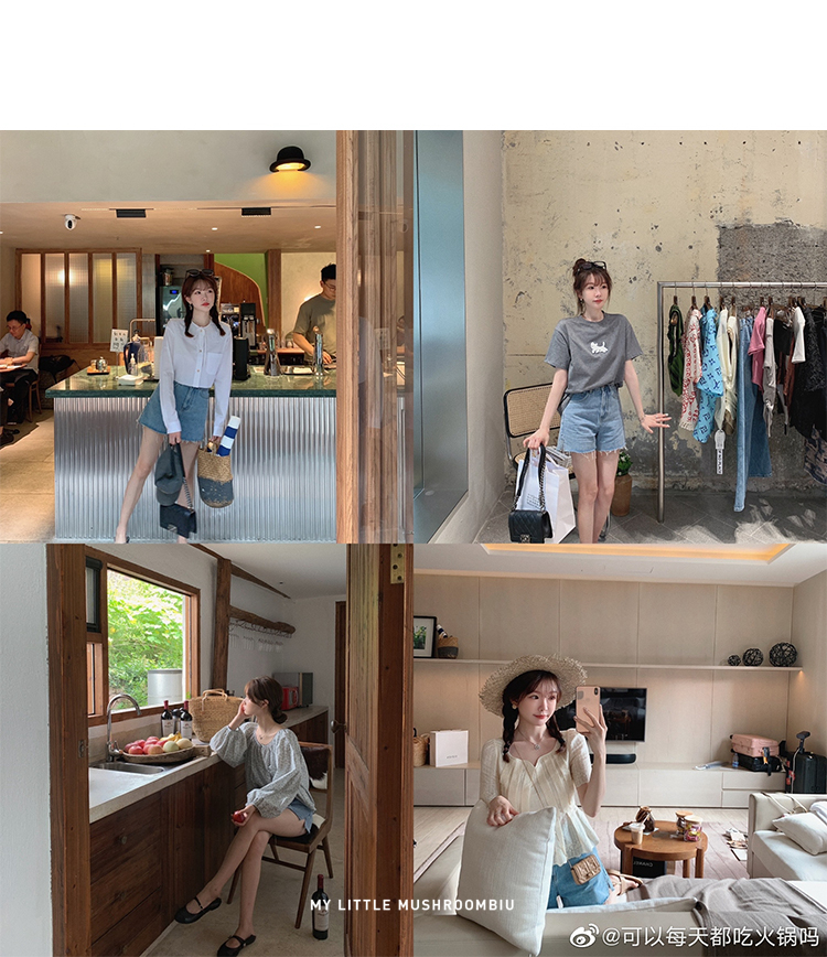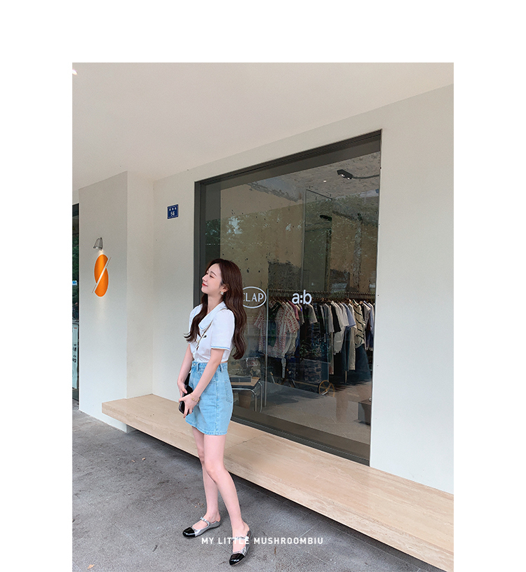 金蘑菇菇【山茶花 艾草牛仔】短裤/半裙/长裤浅蓝百搭牛仔短裤