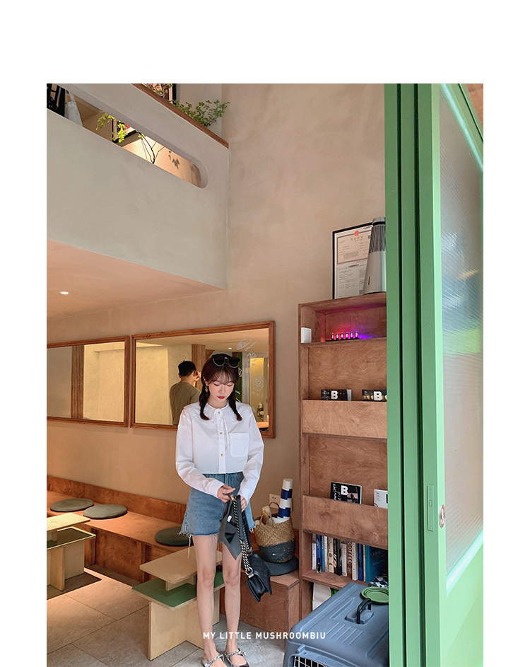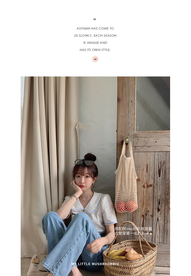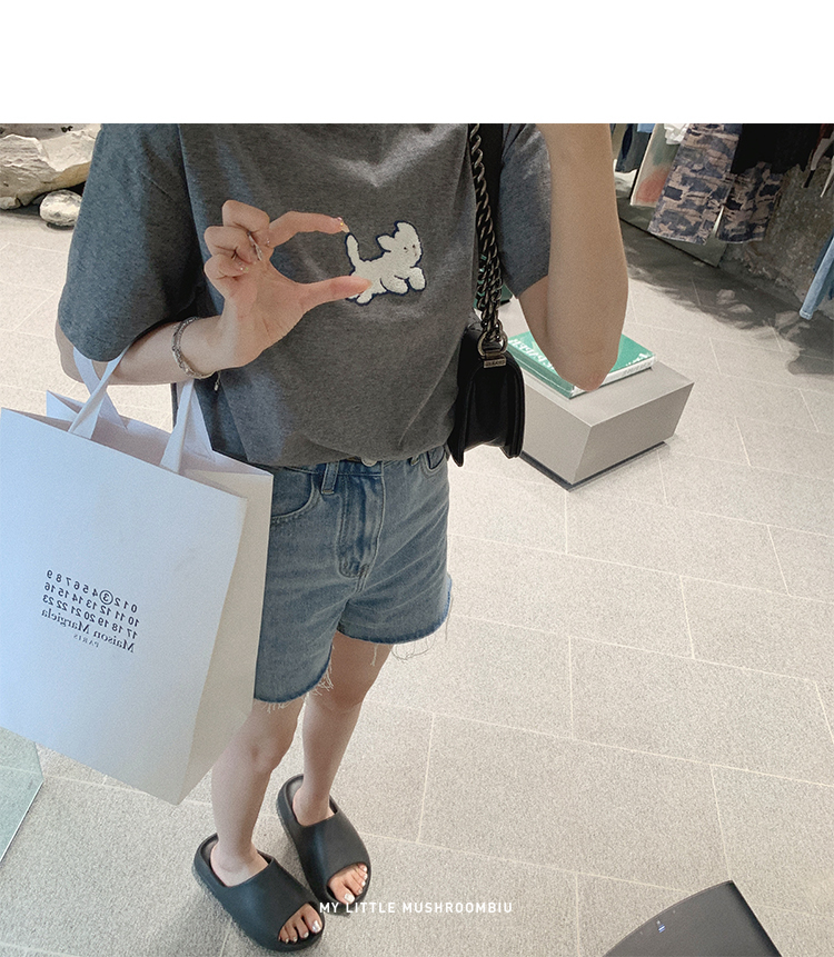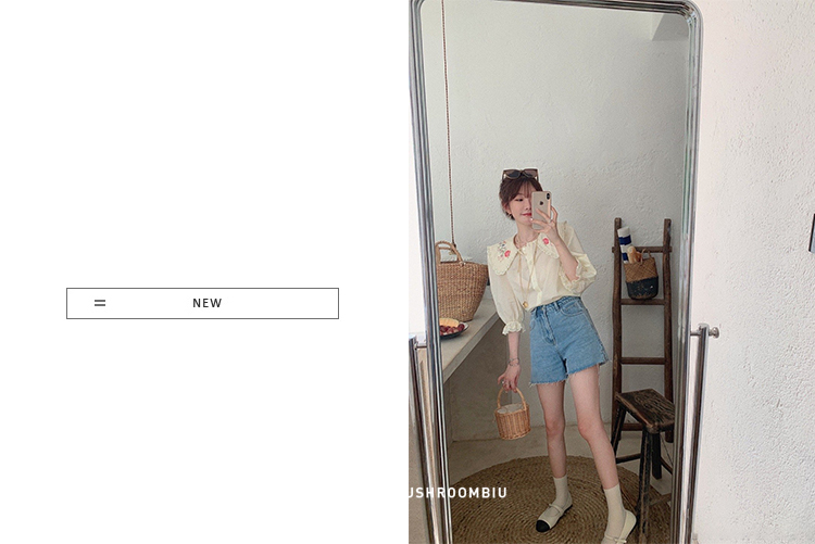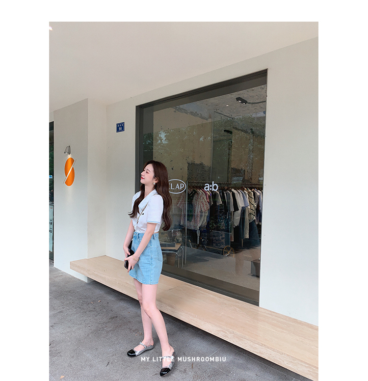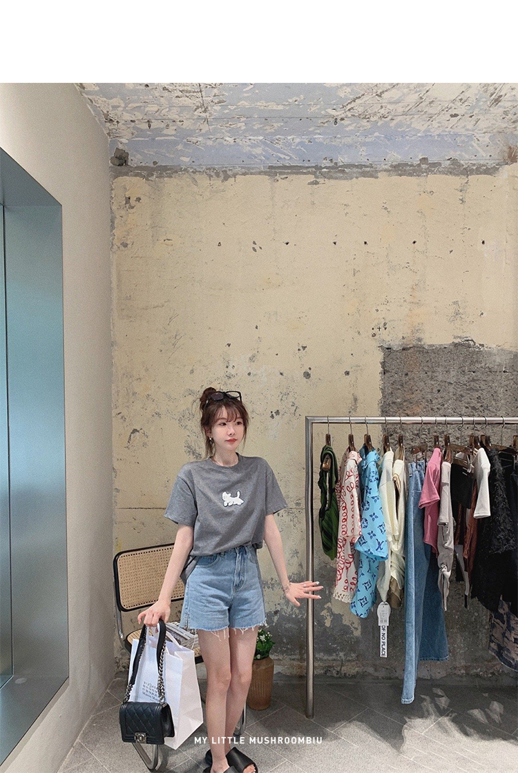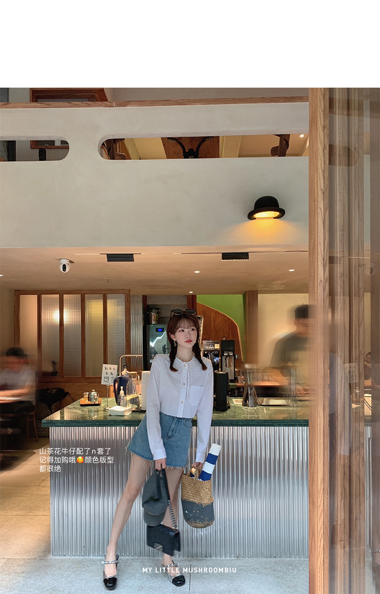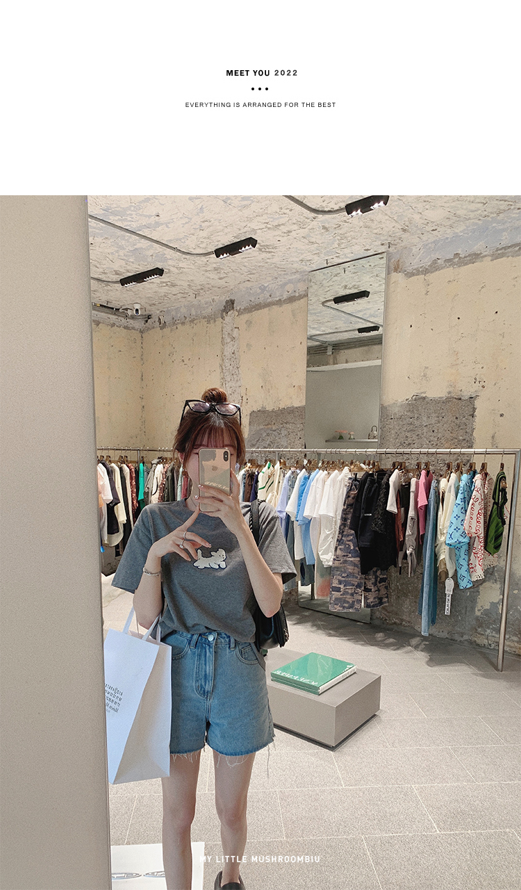 金蘑菇菇【山茶花 艾草牛仔】短裤/半裙/长裤浅蓝百搭牛仔短裤