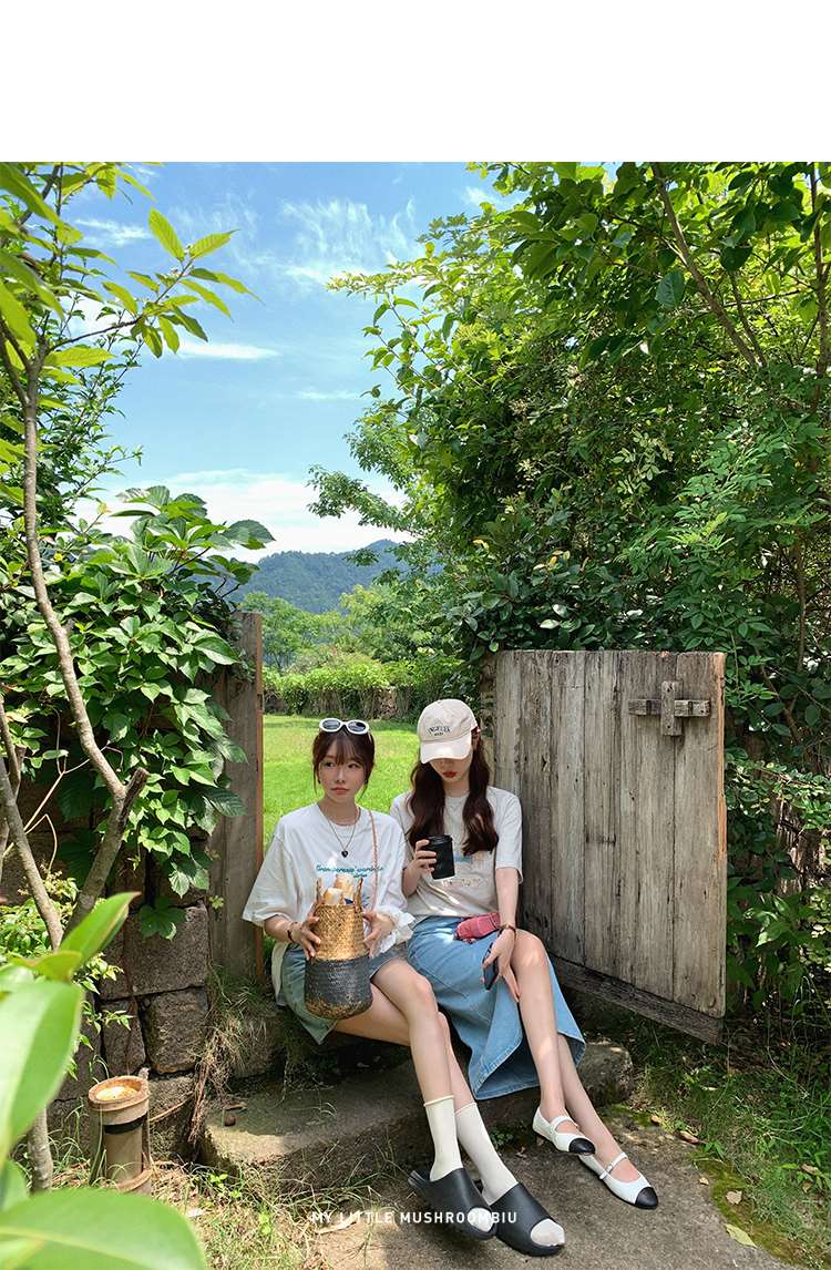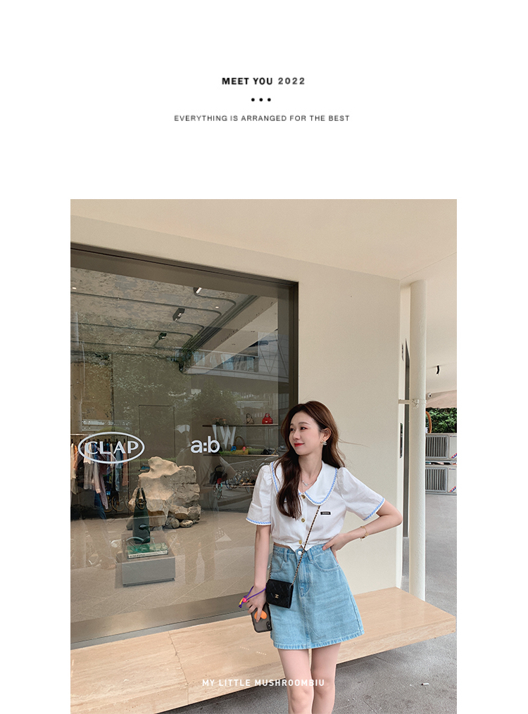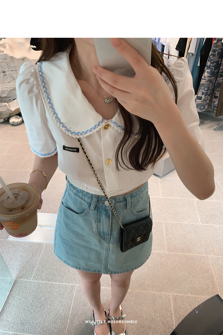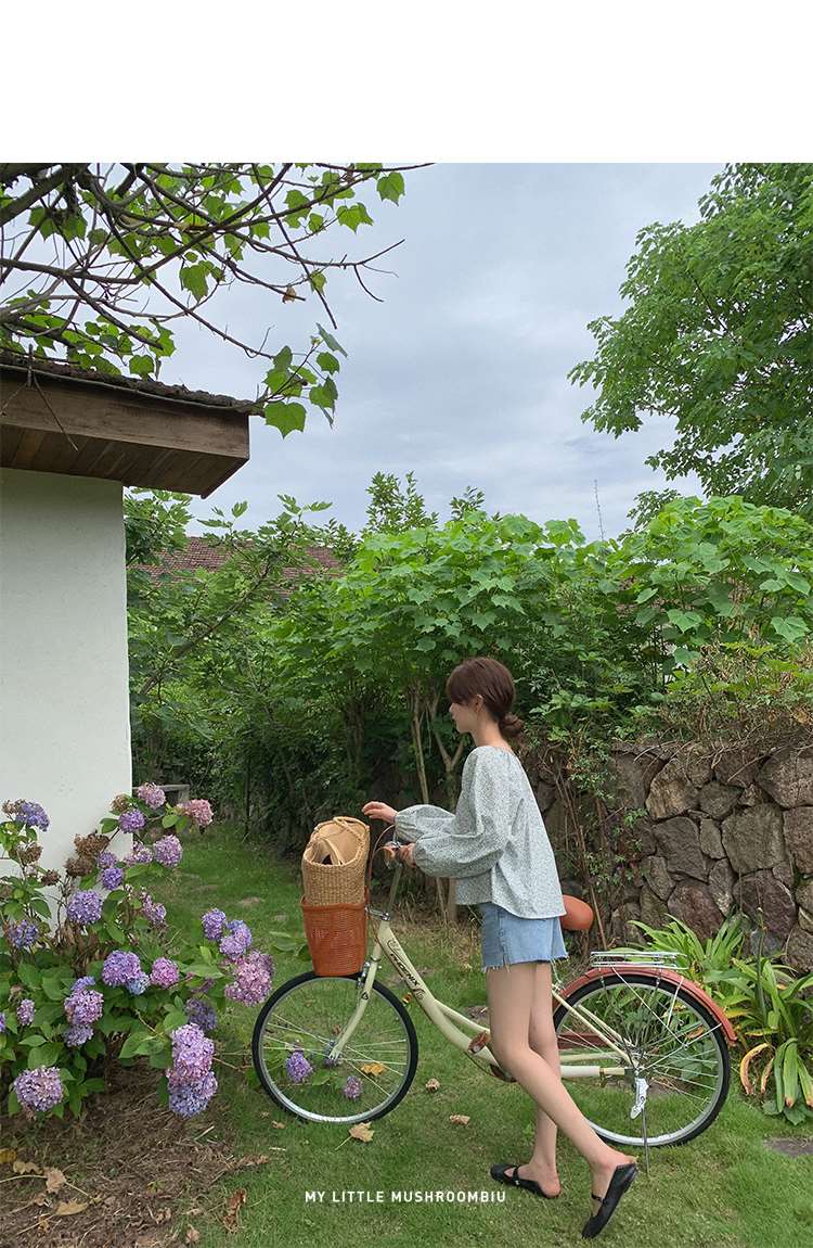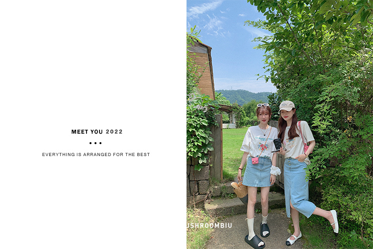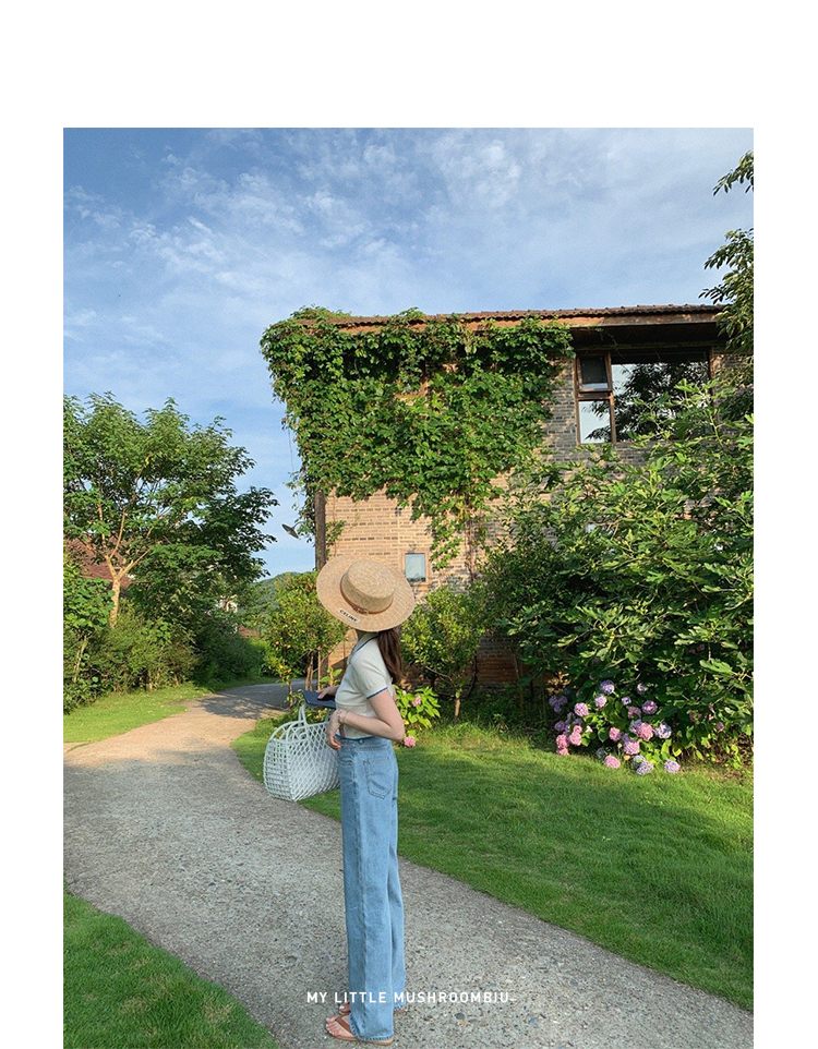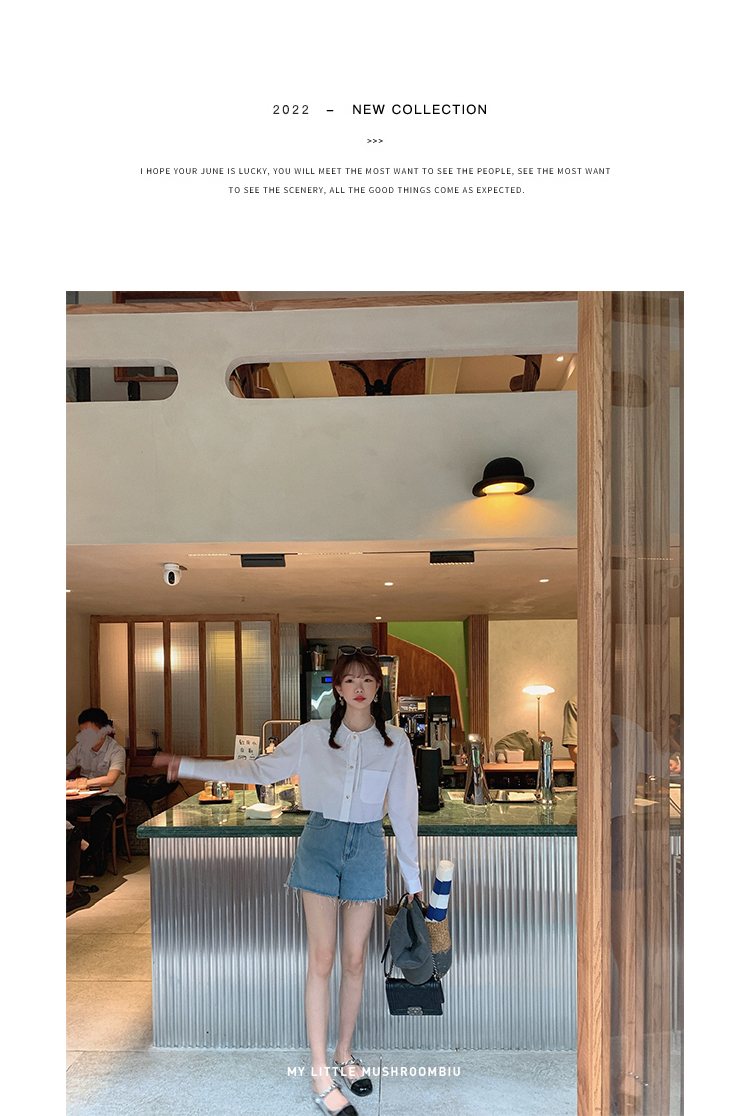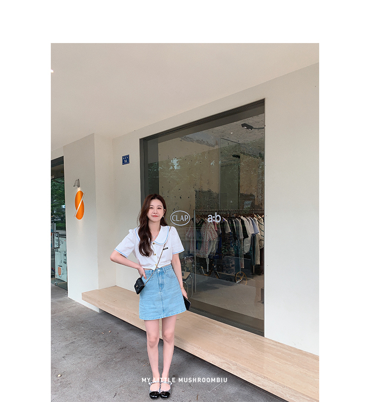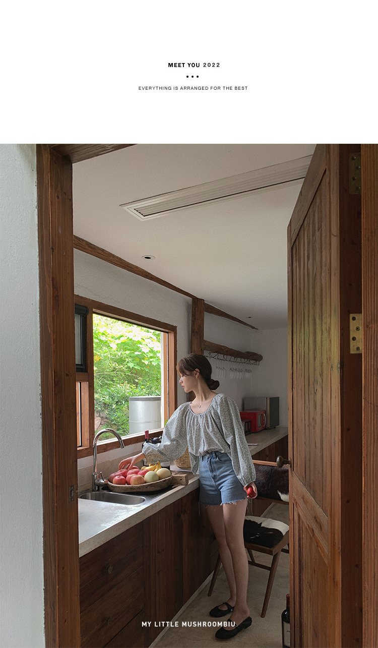 金蘑菇菇【山茶花 艾草牛仔】短裤/半裙/长裤浅蓝百搭牛仔短裤