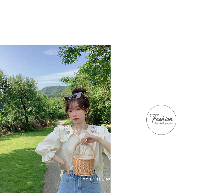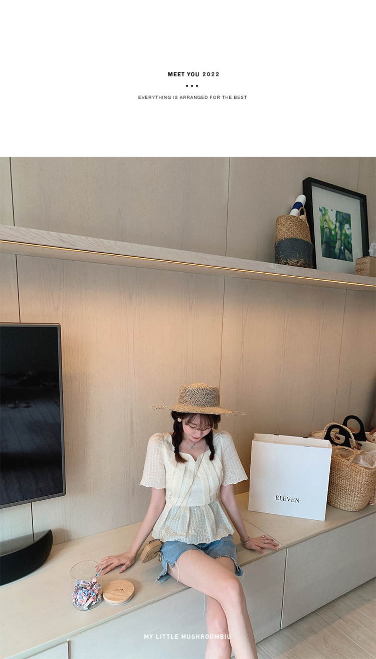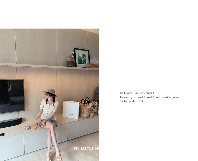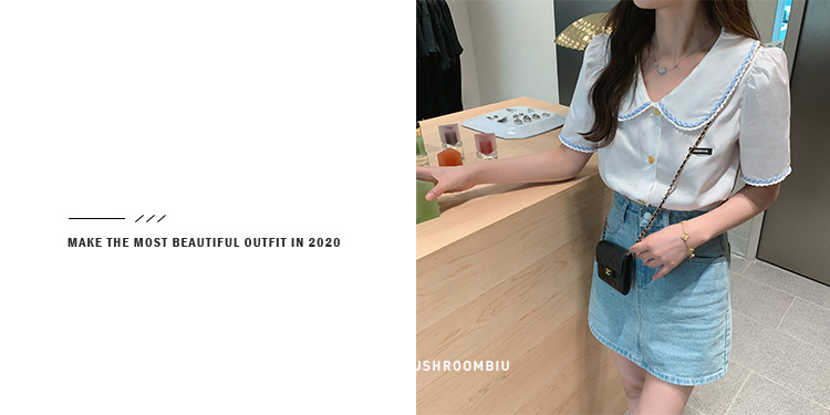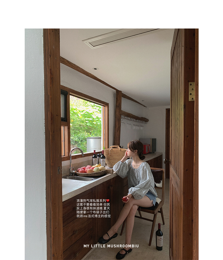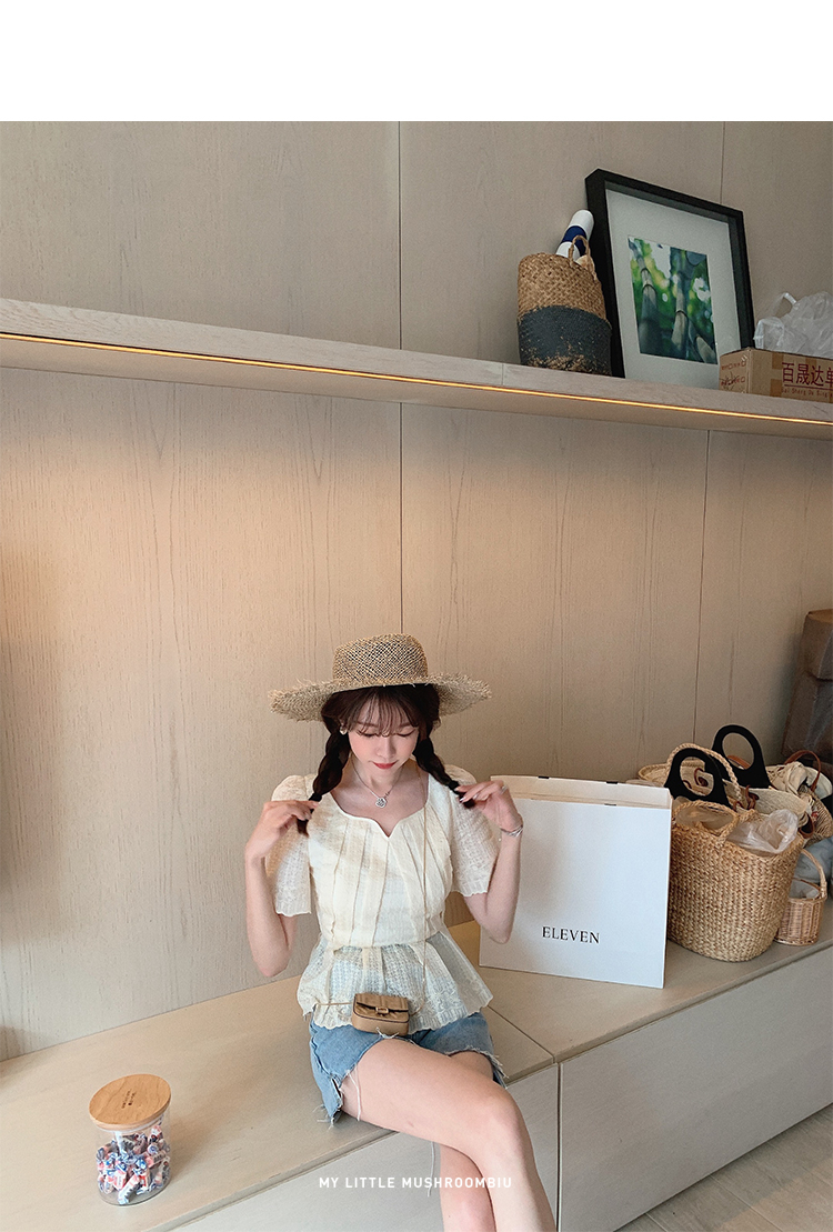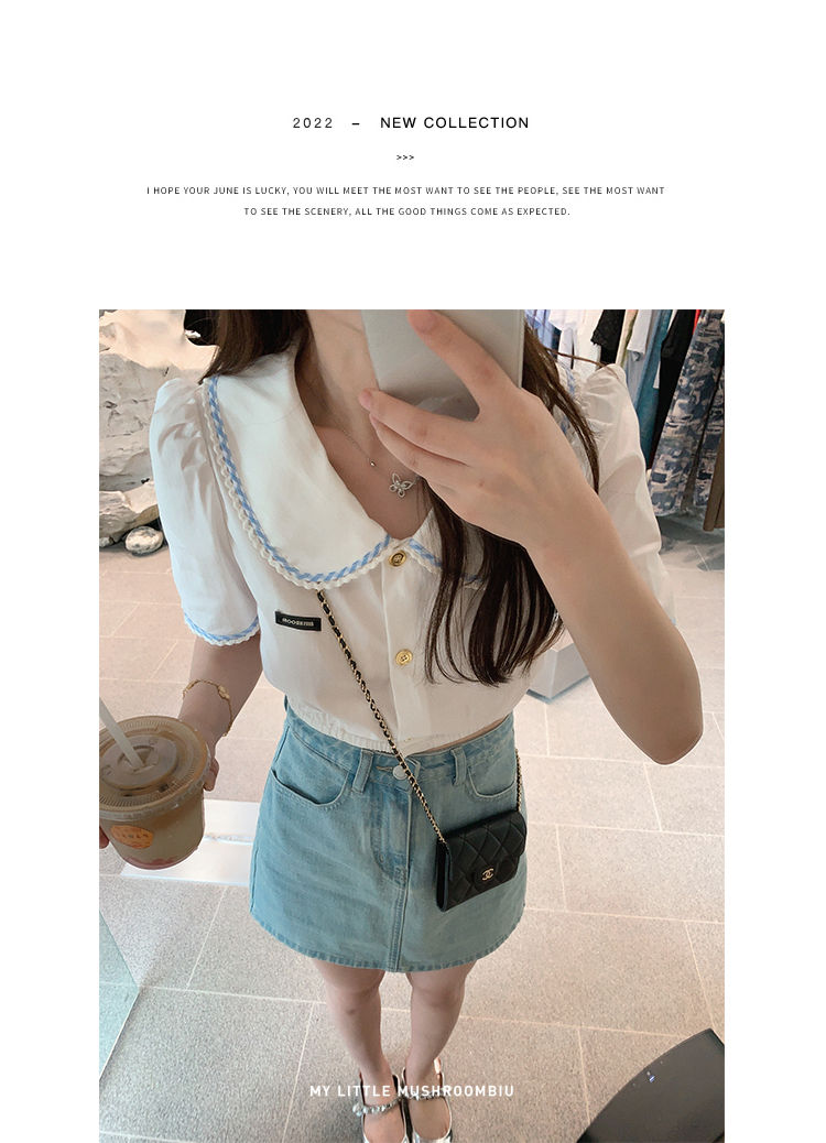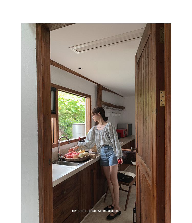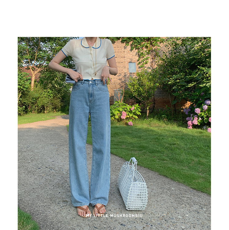 金蘑菇菇【山茶花 艾草牛仔】短裤/半裙/长裤浅蓝百搭牛仔短裤
