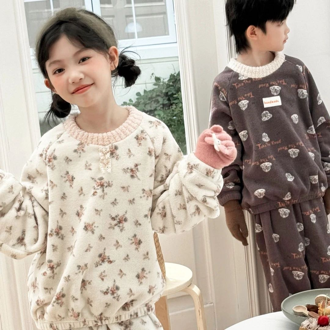 【品名】西蒙日记&儿童花边雪呢绒家居服睡衣DLXNLJJF