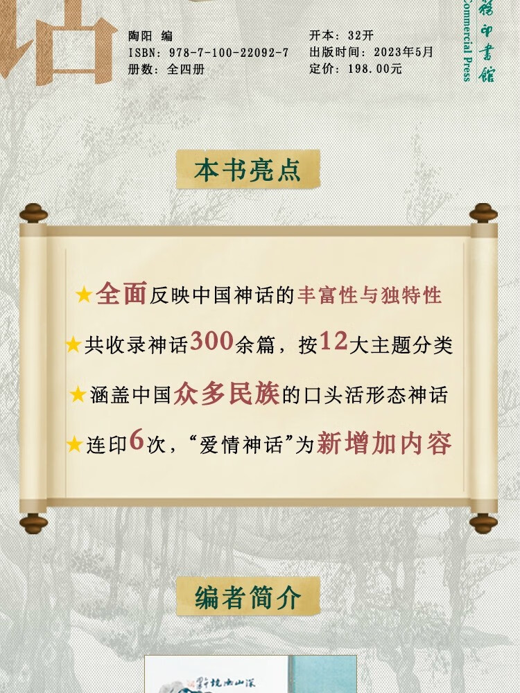 这部精品神话集中既有关于天、地、人类起源和中国几十个民族起源的神话传说,也有流布在中国山川大地上关于生与死、爱与恨、民俗与文化的相关故事。全书300多篇,涵盖我国众多民族的口头活形态神话,作者择优选取,忠实记录了口头流传的神话真品,同时也关照到很多民族、地区具有代表性和类型性的作品,全书叙述优美,包含丰富的文化史价值,又是优美的文艺读物,是一部与古希腊神话、埃及神话、罗马神话、希伯来神话、印度神话相比较毫不逊色且品种齐全的中国神话精品。