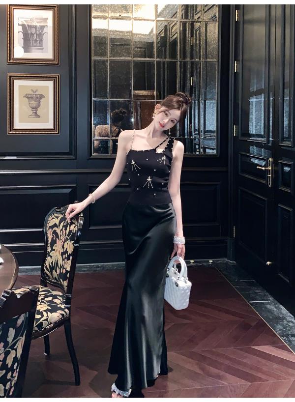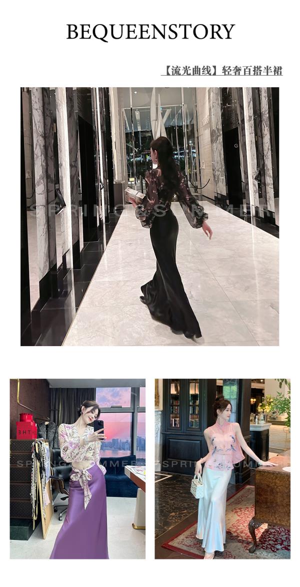 BeQueenStory【流光曲线】时尚轻奢气质修身百搭半身裙2023夏季新