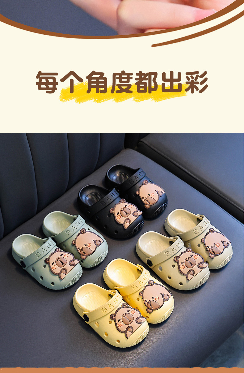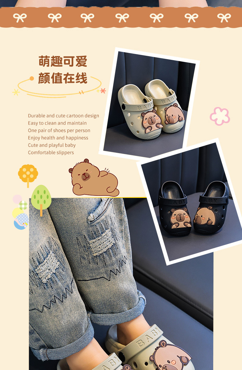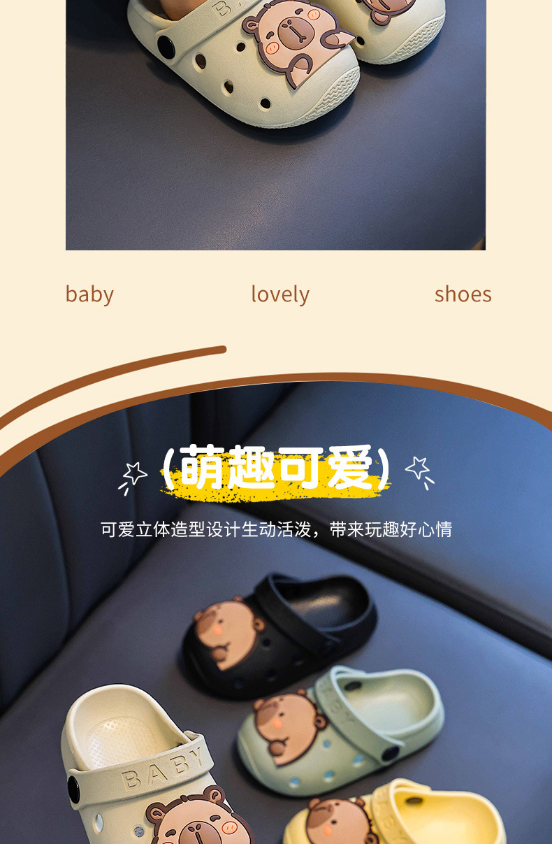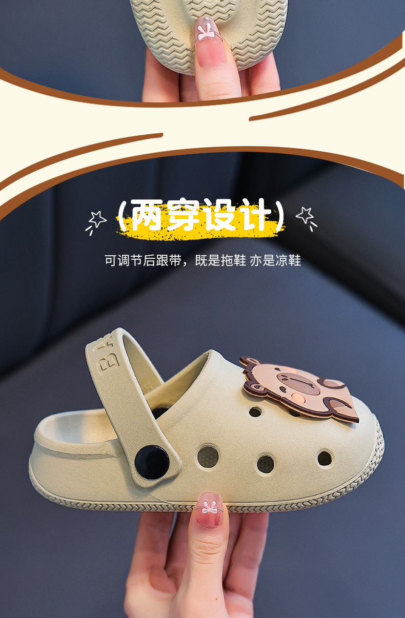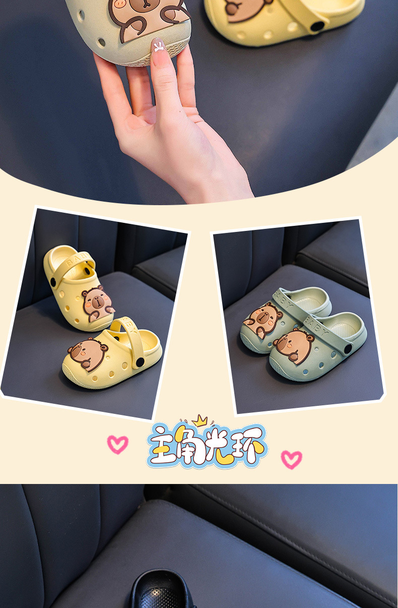 【包头防护!防滑耐穿】儿童凉拖鞋室内外穿卡通卡皮巴拉婴幼儿踩屎感洗澡防滑防臭洞洞鞋。xa