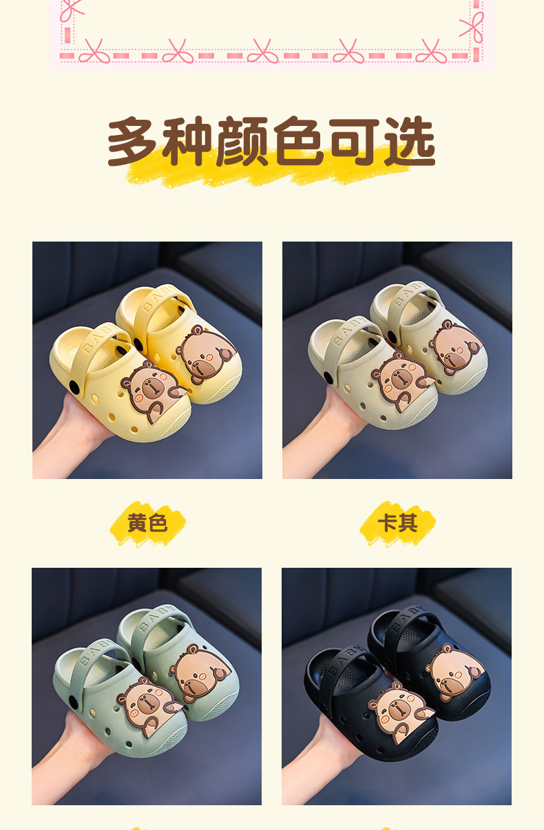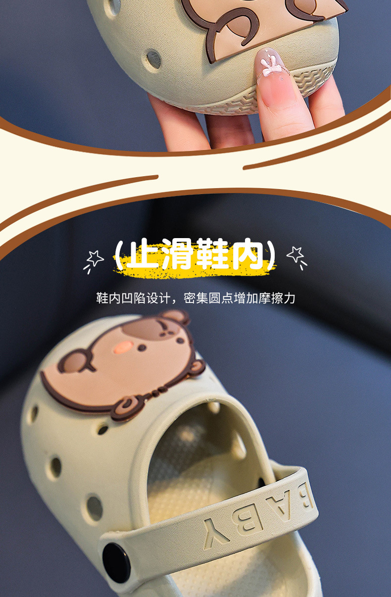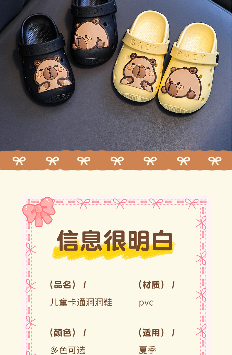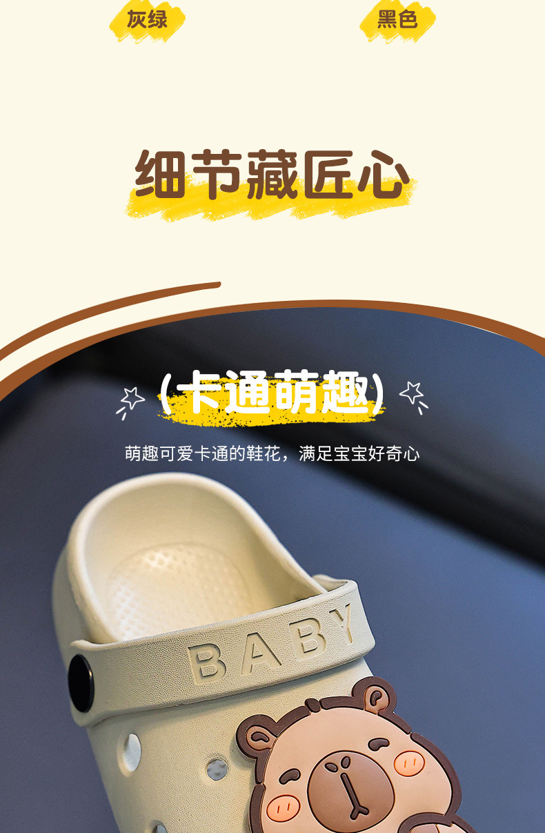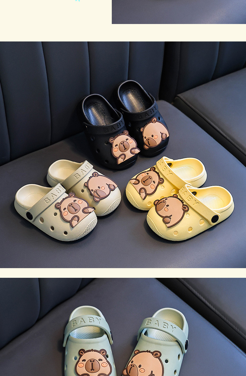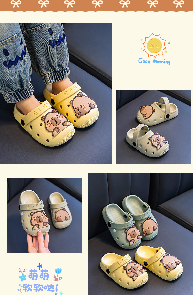 【包头防护!防滑耐穿】儿童凉拖鞋室内外穿卡通卡皮巴拉婴幼儿踩屎感洗澡防滑防臭洞洞鞋。xa