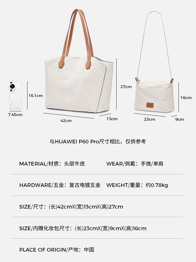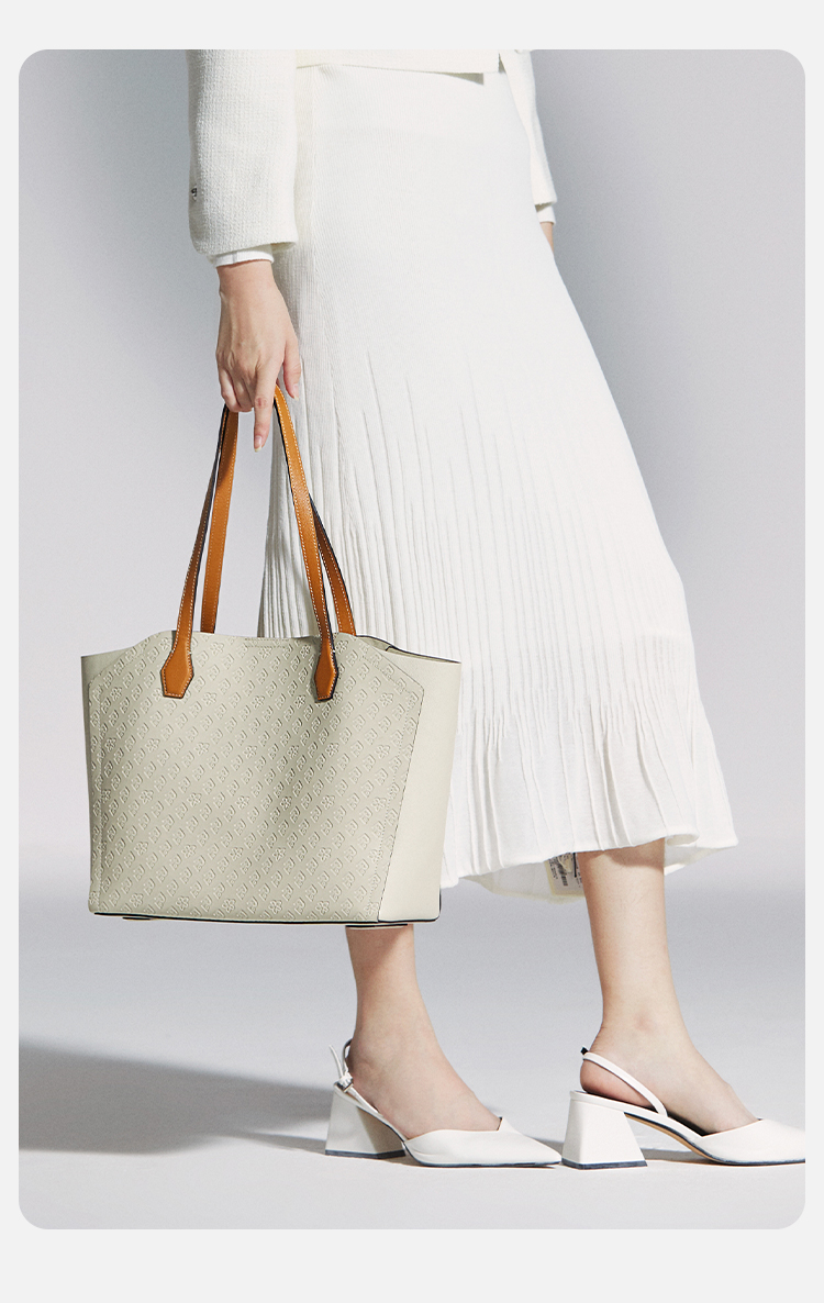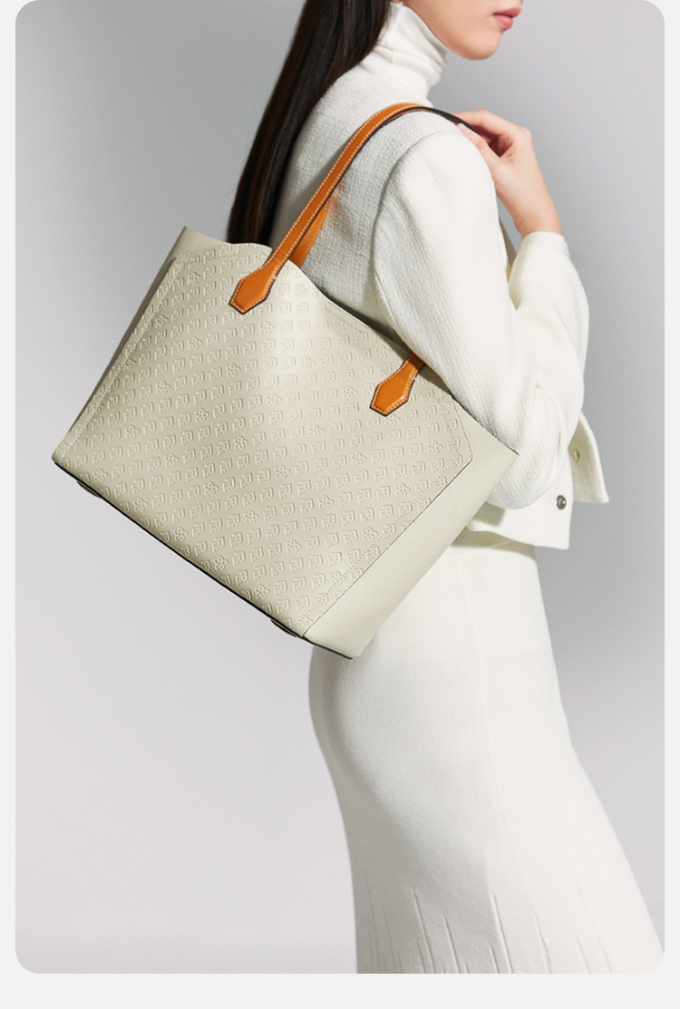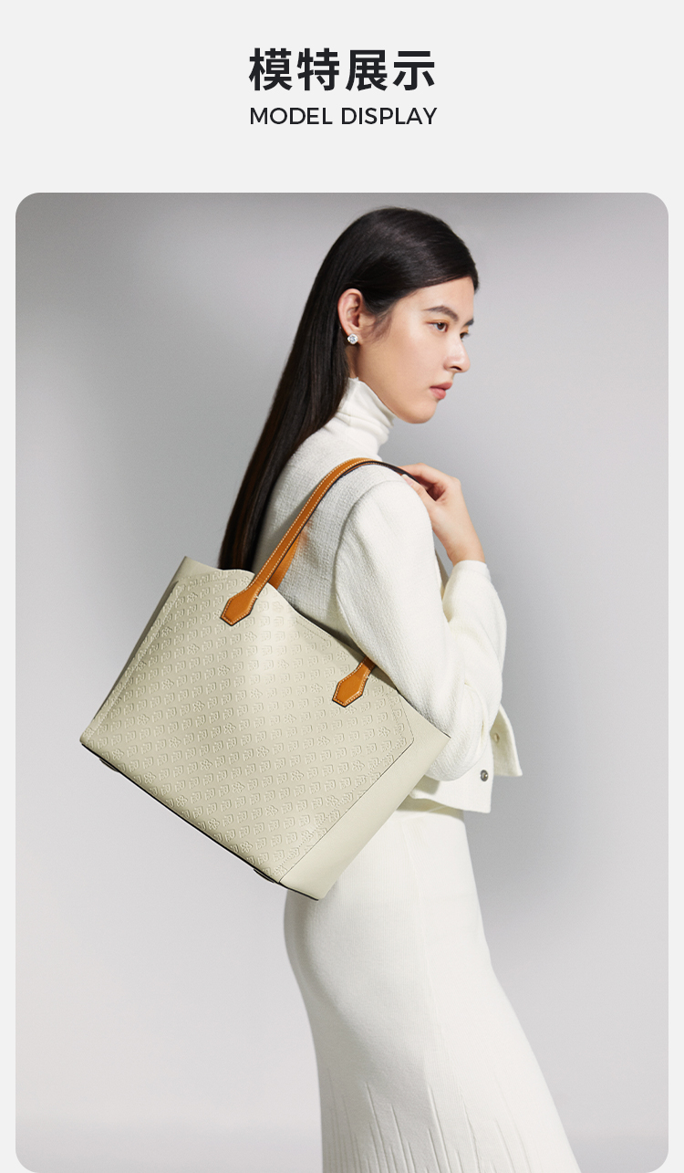 保兰德PLD东方雅奢45度老花压纹头层牛皮贝壳单肩托特包通勤必备女包