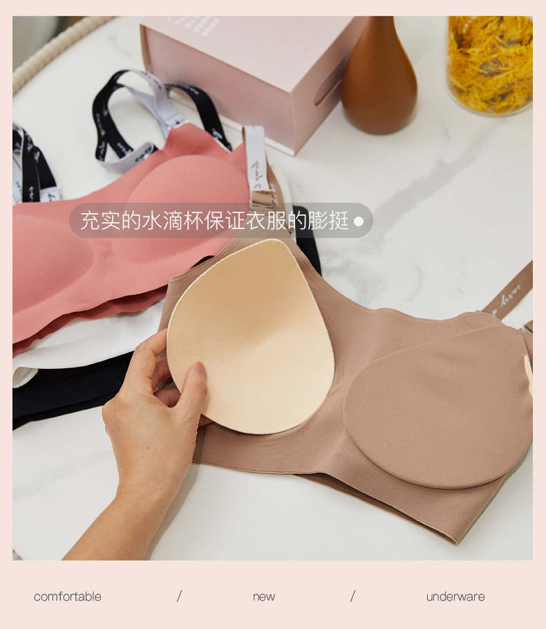 2、棉杯套的是水滴杯,水滴杯更贴近人体工学 更贴合胸部 不压胸 穿上之后能呈现出完美的胸型,无感水印洗水标识完全不剐蹭