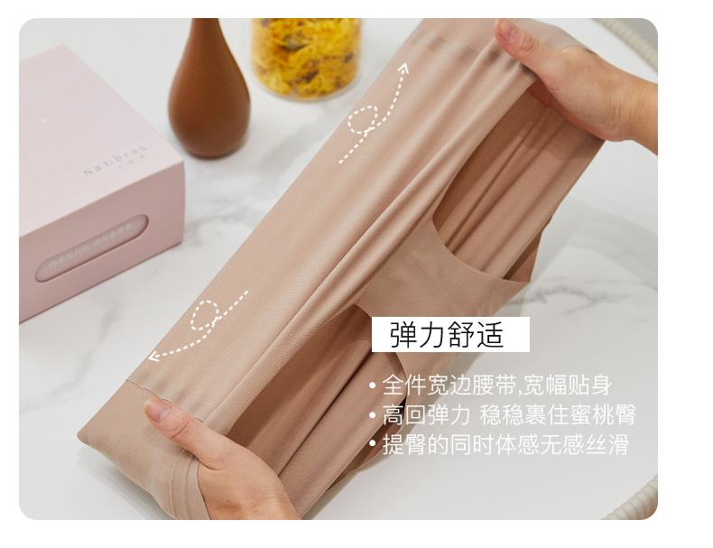 3、内裤的腰头采用无感设计 无痕无束缚,挑战一个内裤的最高境界就是脚口的无工艺处理,裸边设计更能体现无感的境界 ,使劲拉扯脚口不翻边不上翻