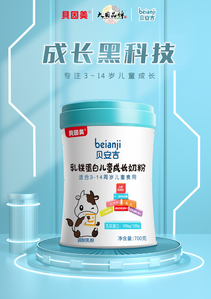贝因美贝安吉乳铁蛋白儿童成长奶粉700g(购满358元参与:1元报名送358元乳铁蛋白)