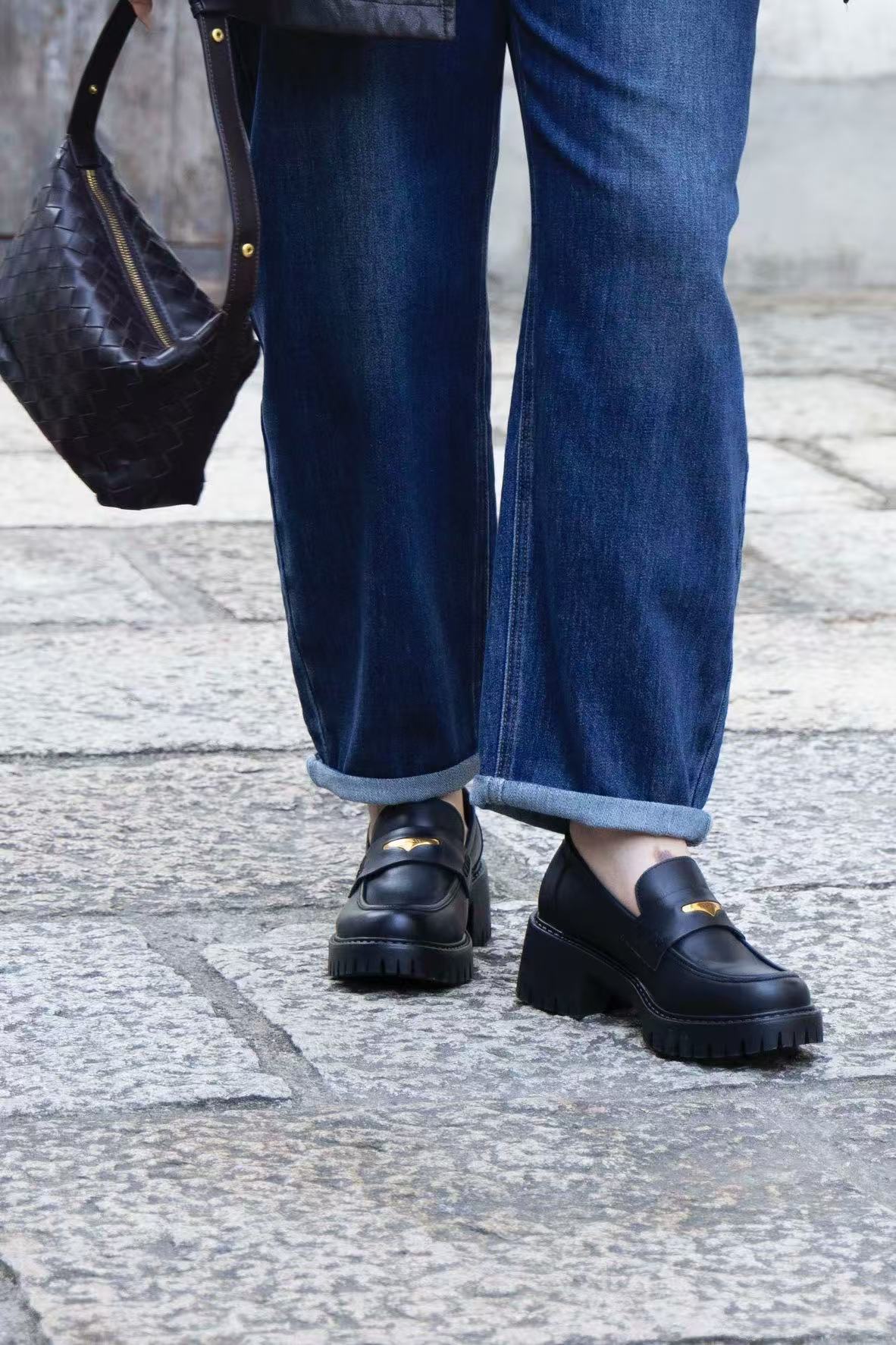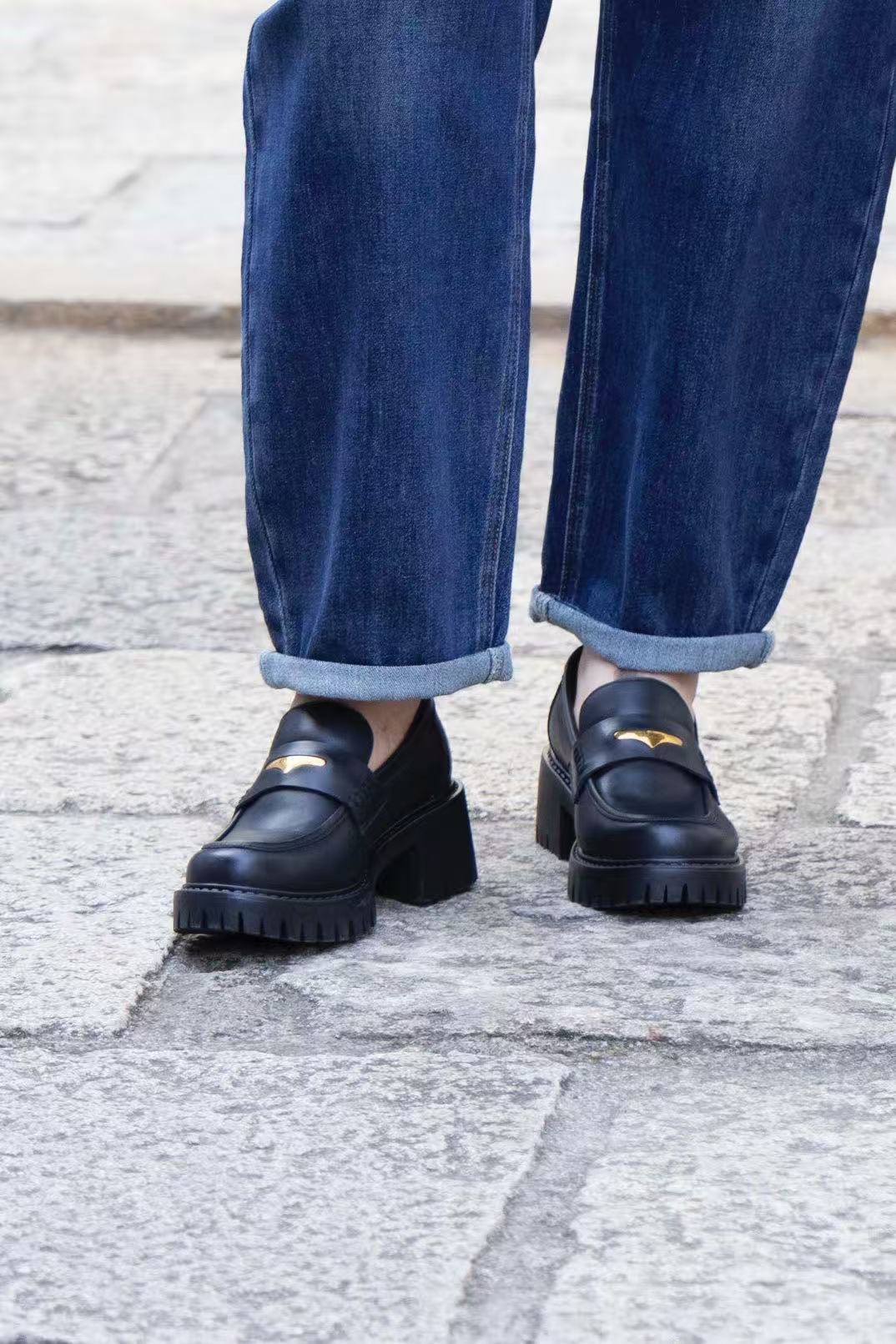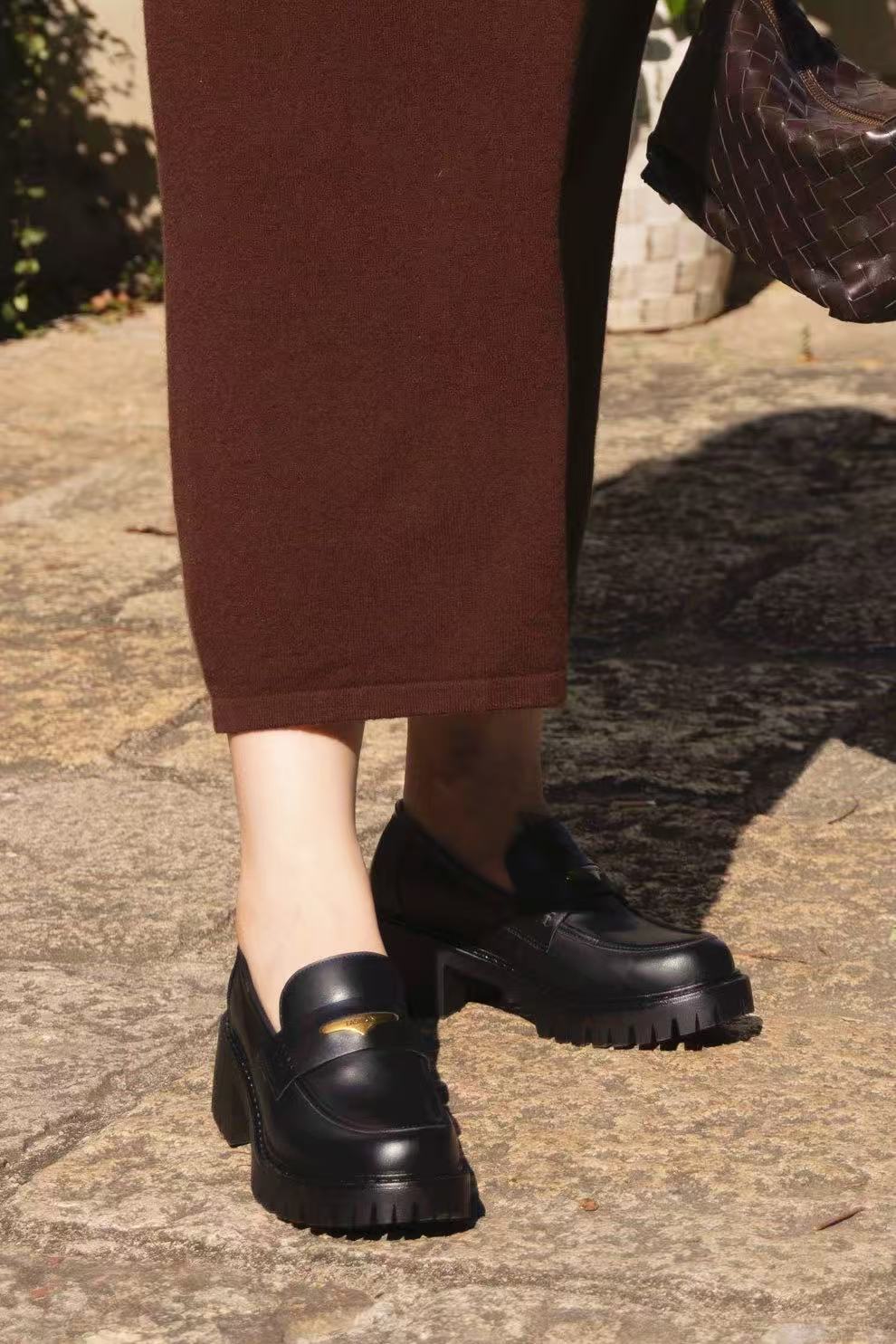 现货!【定制版乐福鞋】全料采用头层牛皮,耐穿耐磨!正码正拍,不用拍大一码!跟高5.5cm,胖宽脚型定制版,英伦风厚底乐福鞋,头层牛皮加宽皮鞋