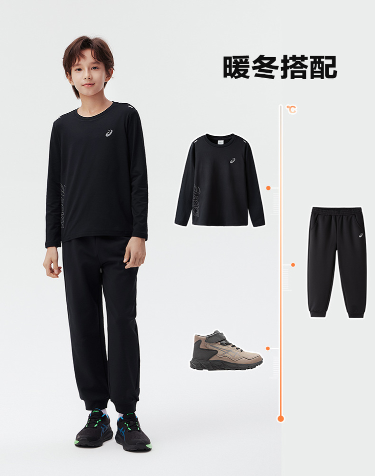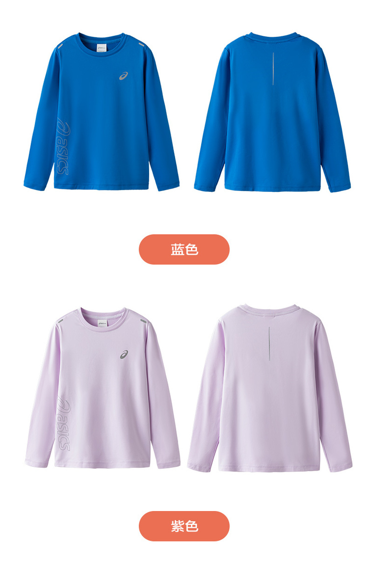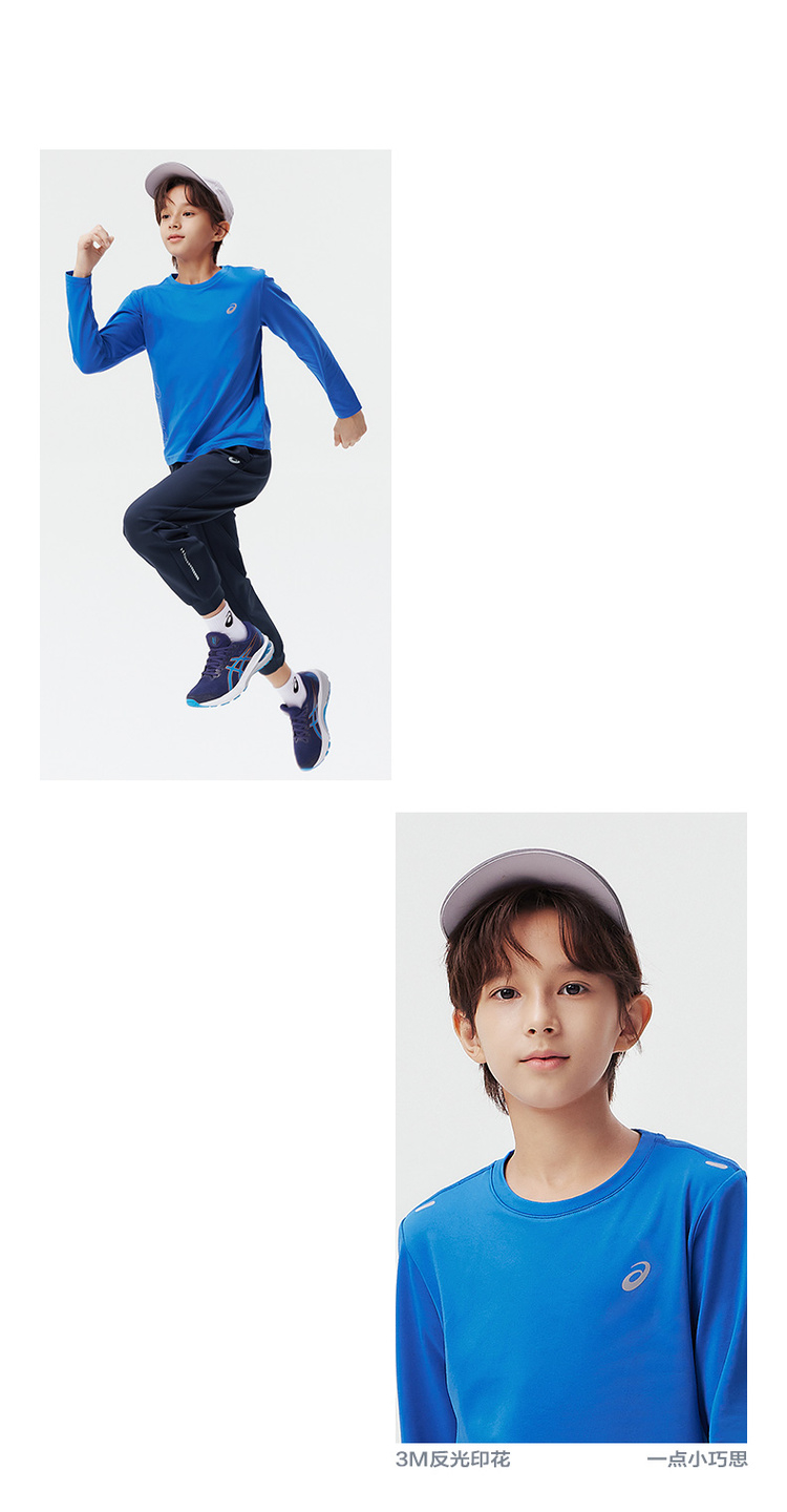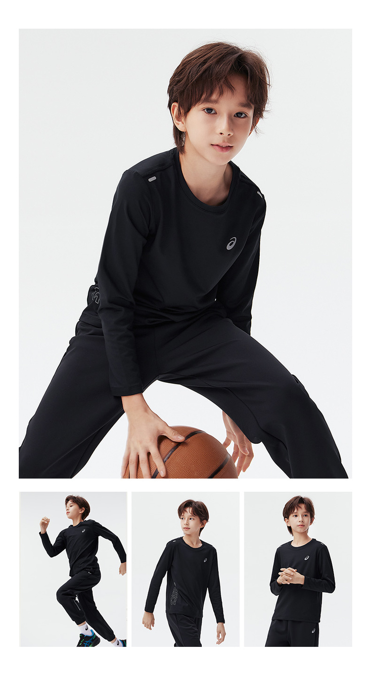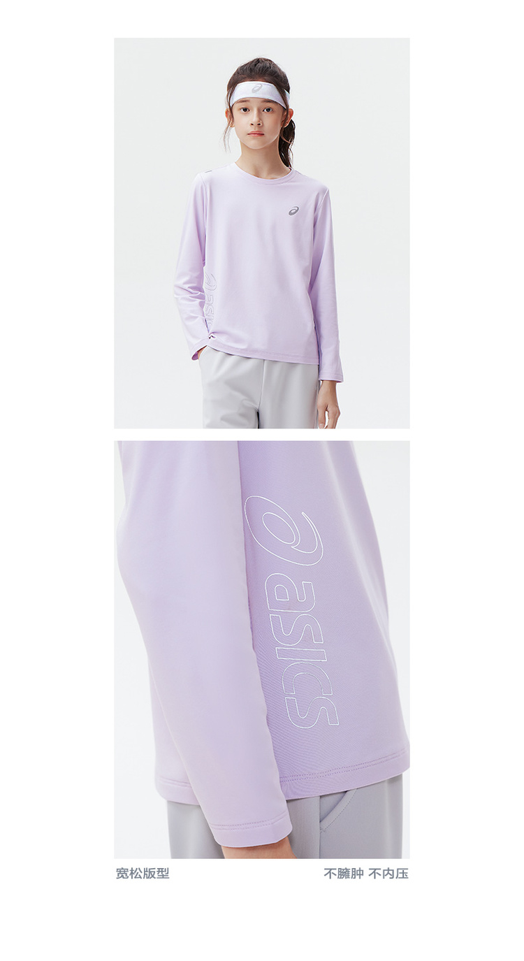 Asics/亚瑟士童装2024秋冬新款圆领长袖针织T恤运动吸湿速干薄款