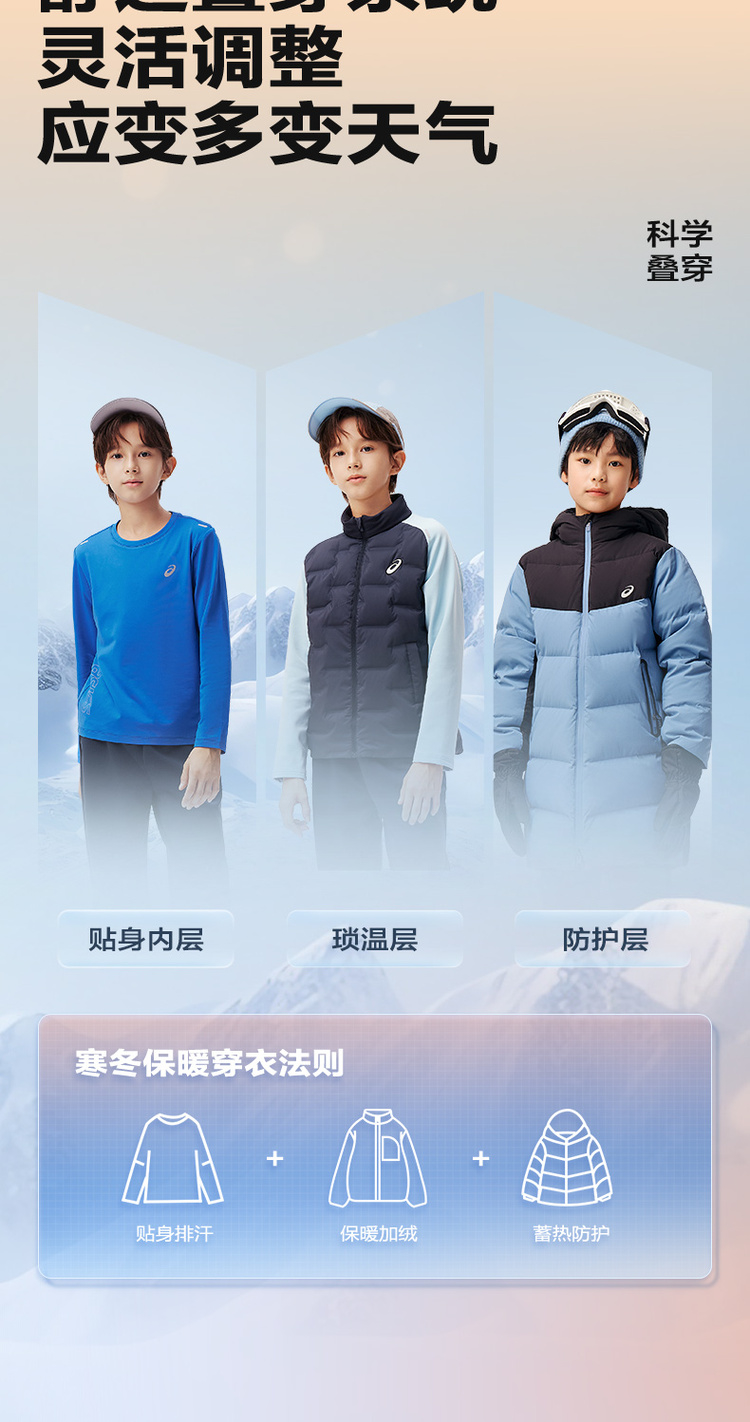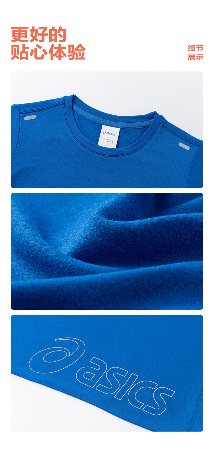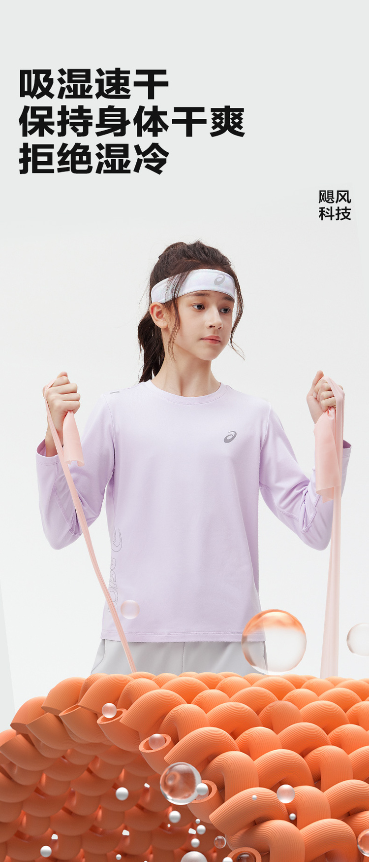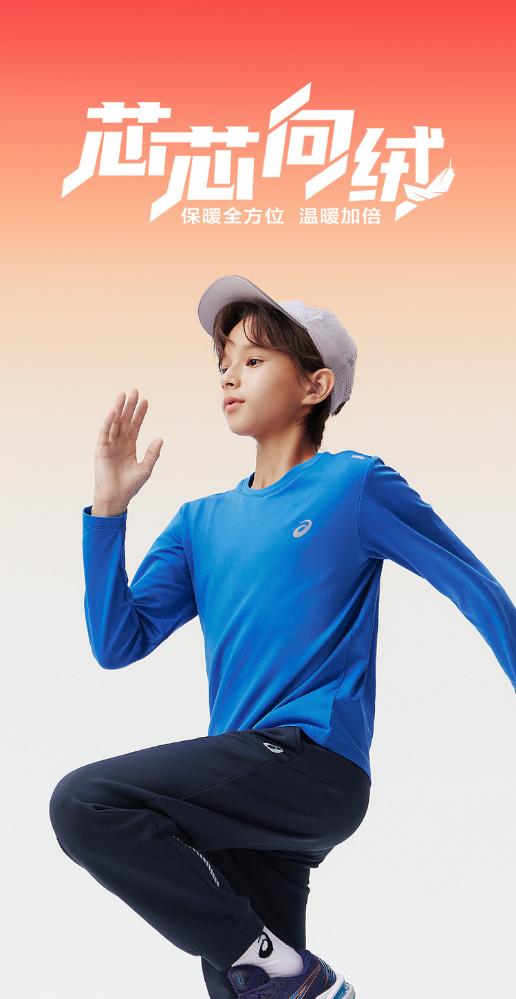 Asics/亚瑟士童装2024秋冬新款圆领长袖针织T恤运动吸湿速干薄款