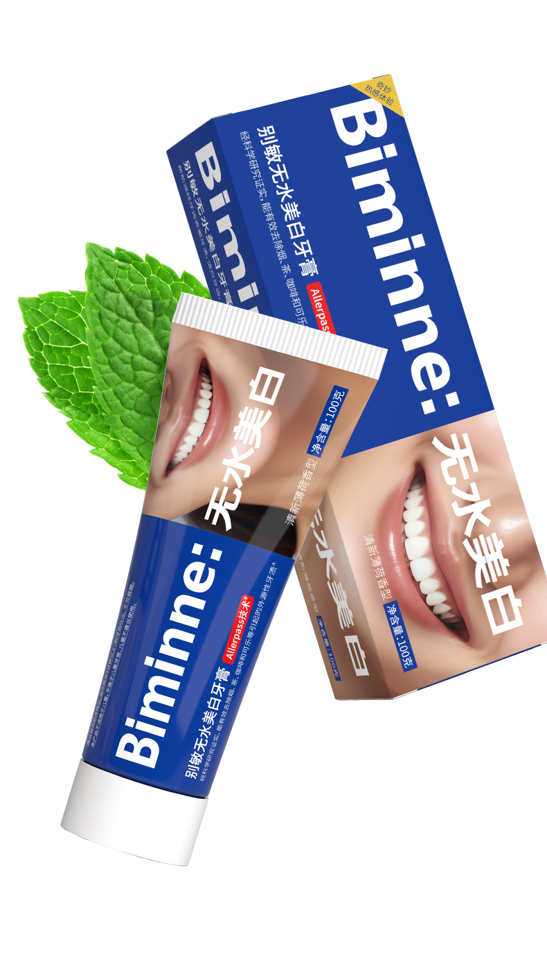 【Biminne别敏无水美白牙膏】💰59/2支 ⏰限时加赠牙刷6支 牙黄终结者🥊升级版‼️ 🌟武汉大学口腔医院权威认证 真正有效去除5种牙渍 🌟无水配方国家专利,对先天黄牙也效 🌟Al