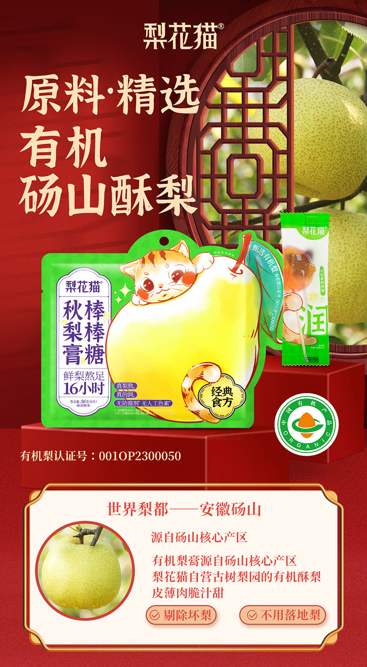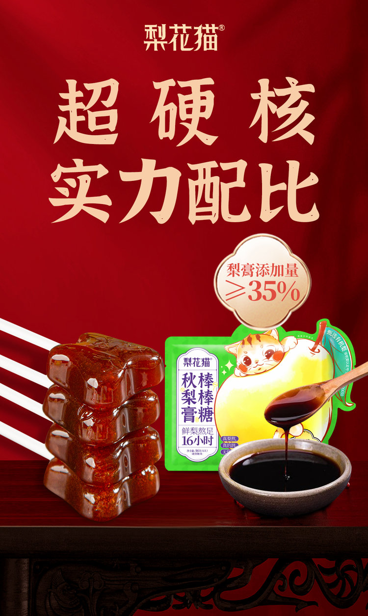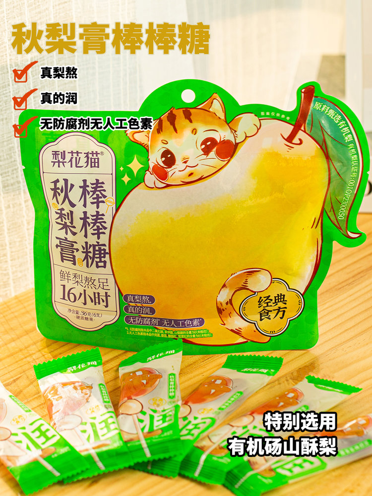 吃糖就要吃好糖!国民梨补品牌梨花猫又上新啦,带你健康吃糖没烦恼!宝宝都爱吃棒棒糖,那么既营养又好吃的棒棒糖,万万不能错过!