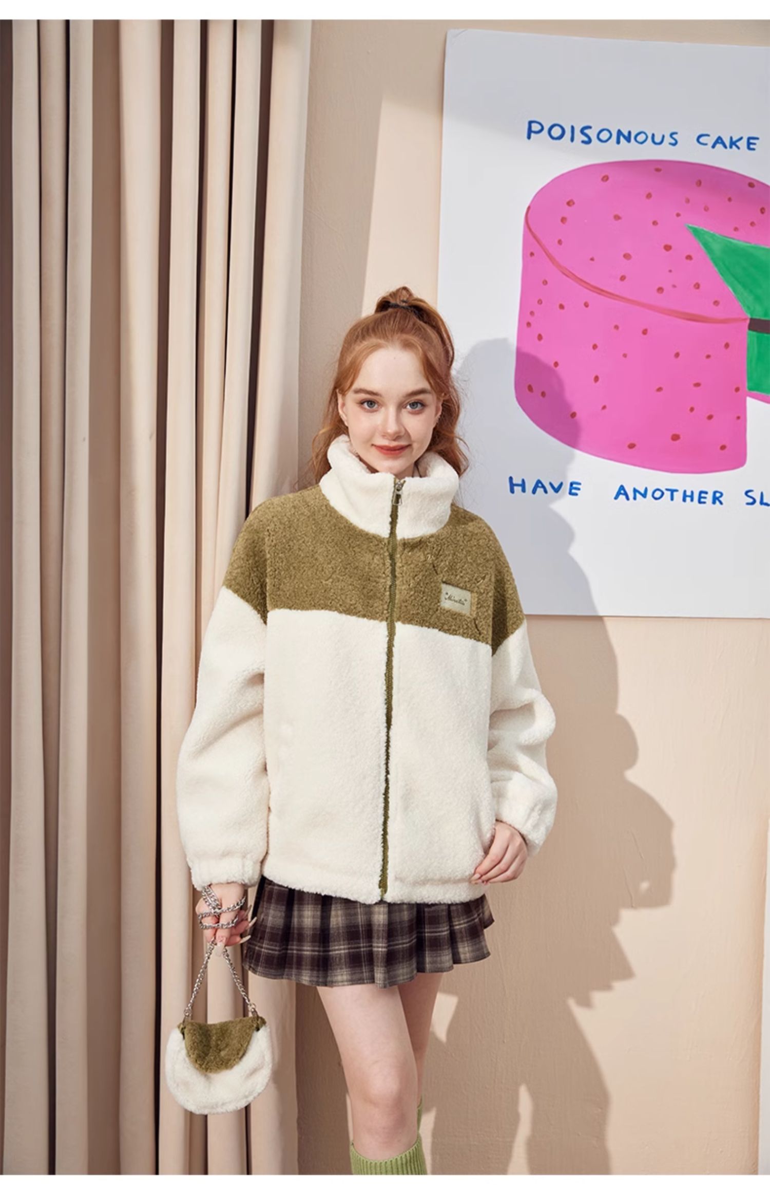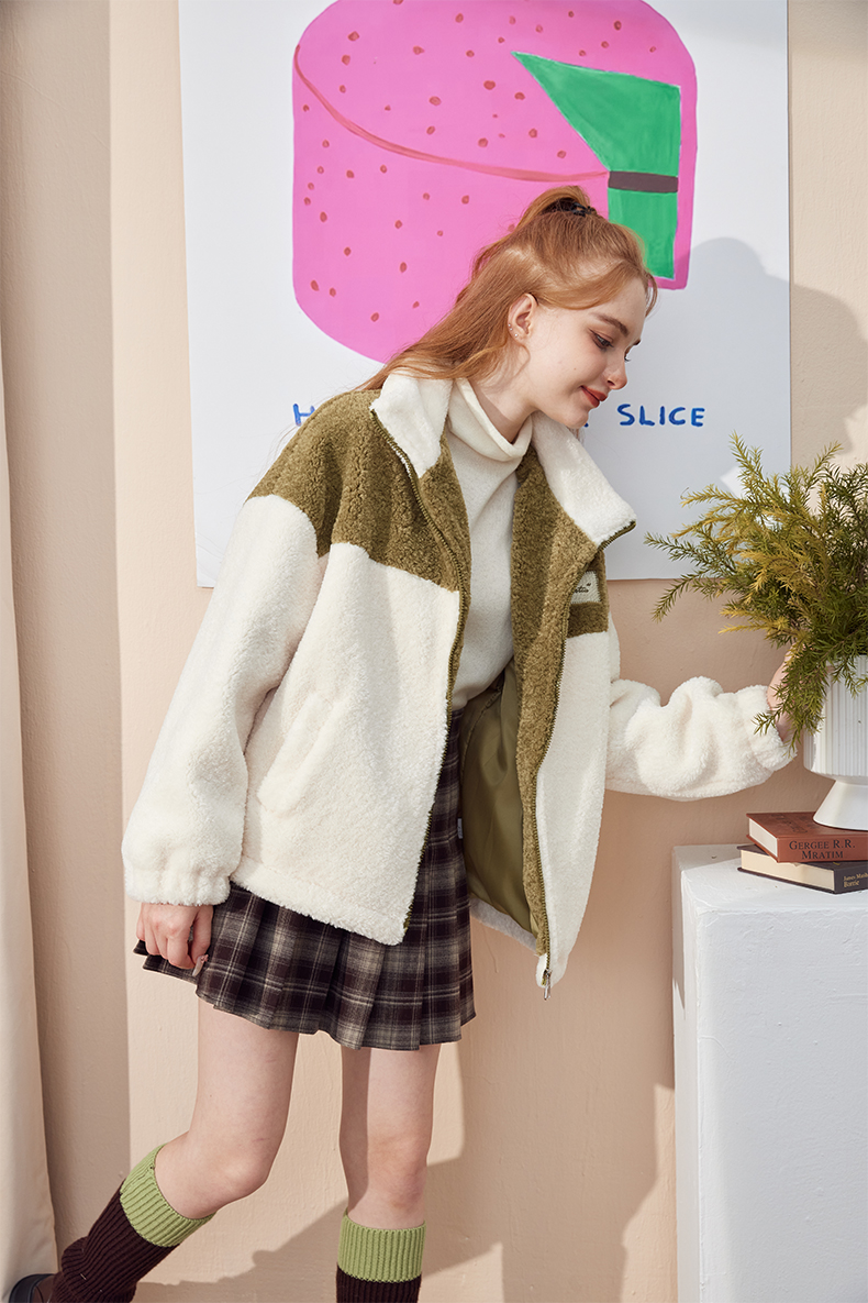 女装立领拼色配包包夹克外套-23838J3242392