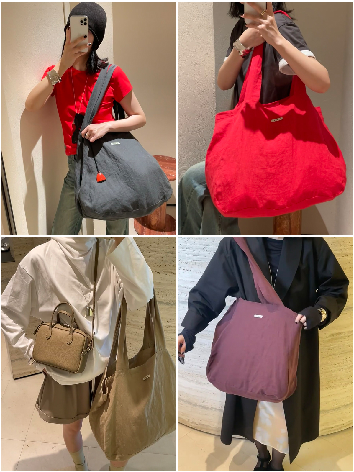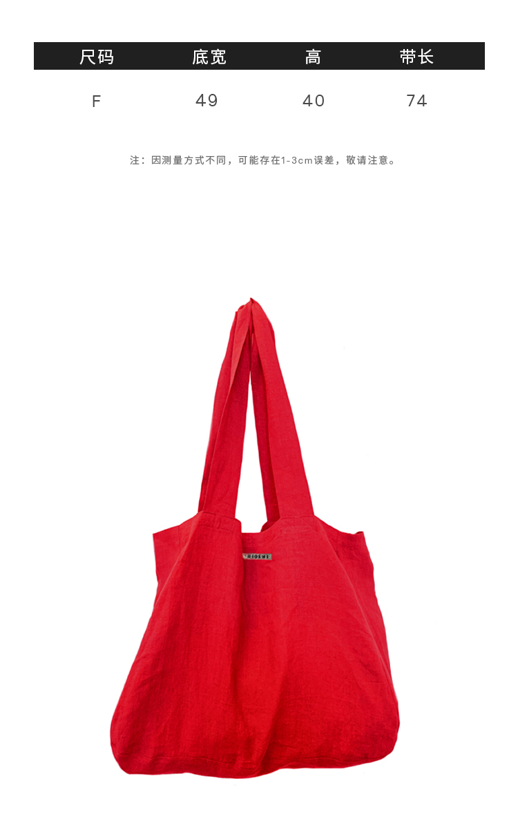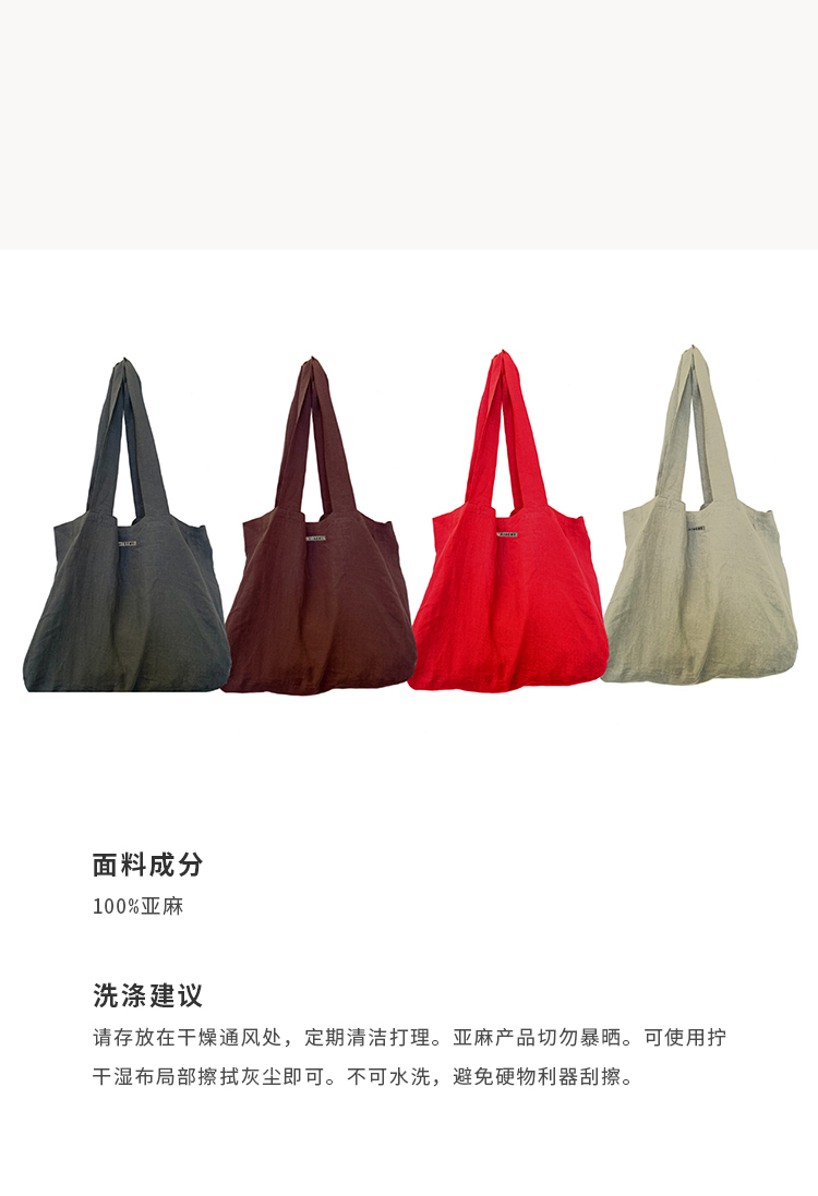 HIDEMI【当当同款】自然多重水洗纯亚麻超软慵懒随身帆布包大包tote托特包 雾霾蓝灰/马斯正红/酒红色/自然米