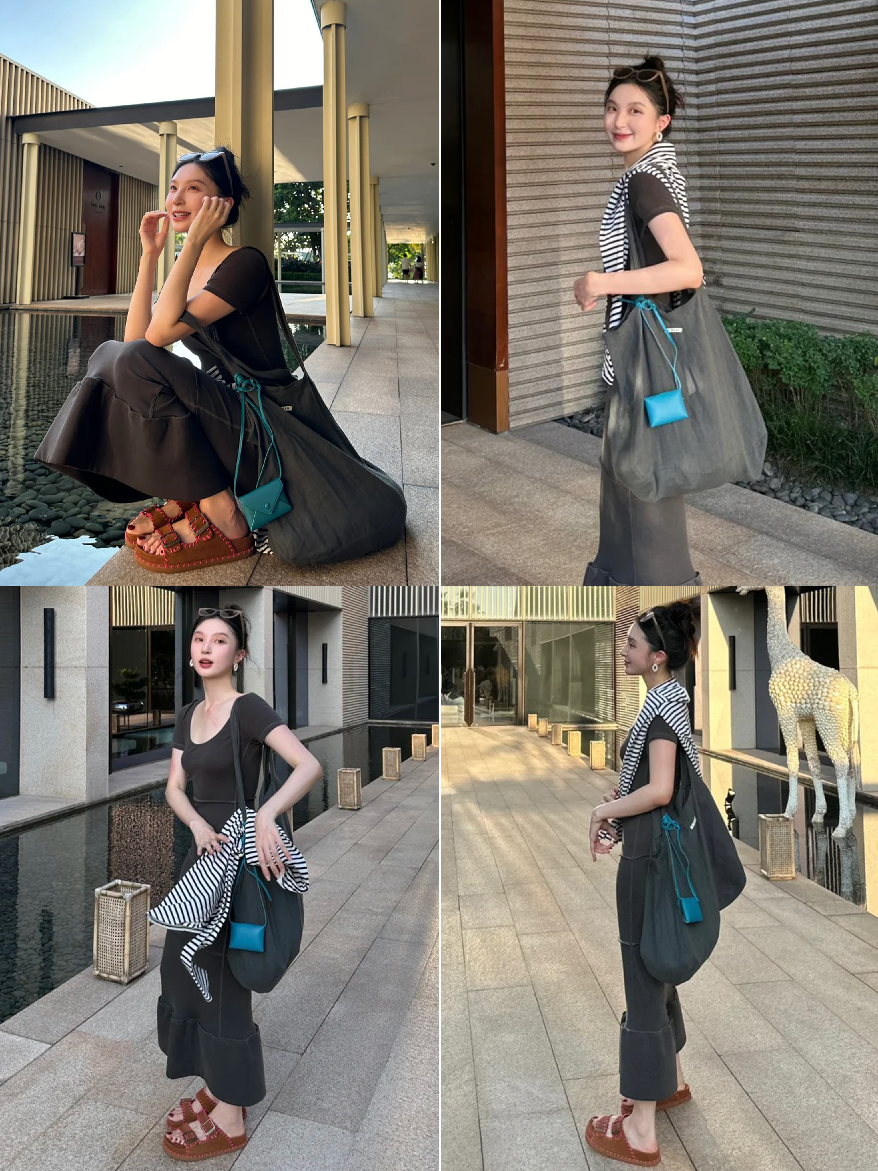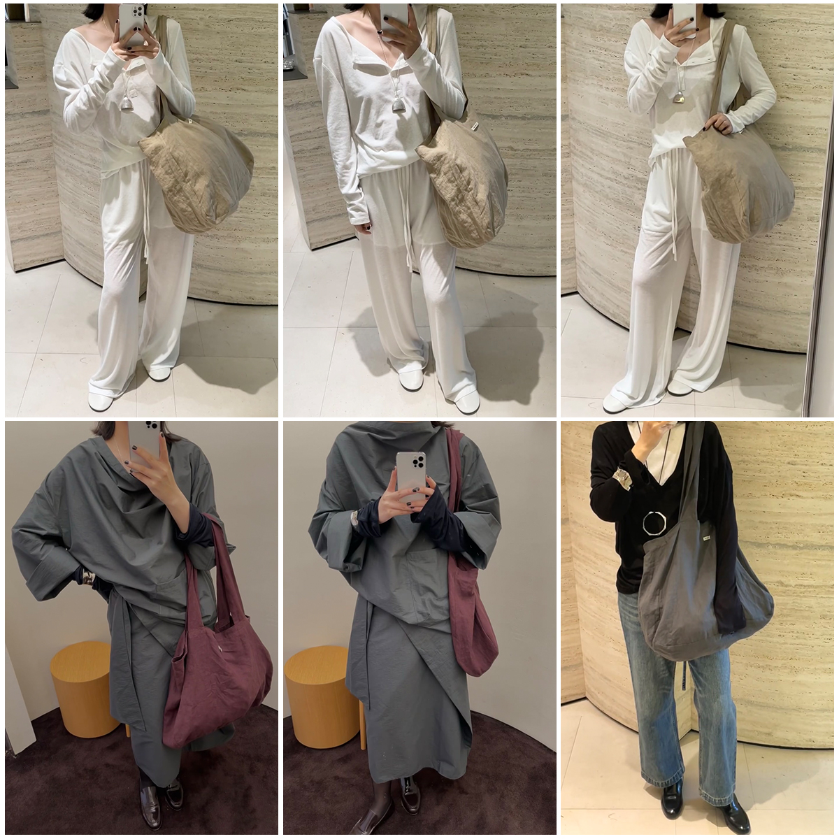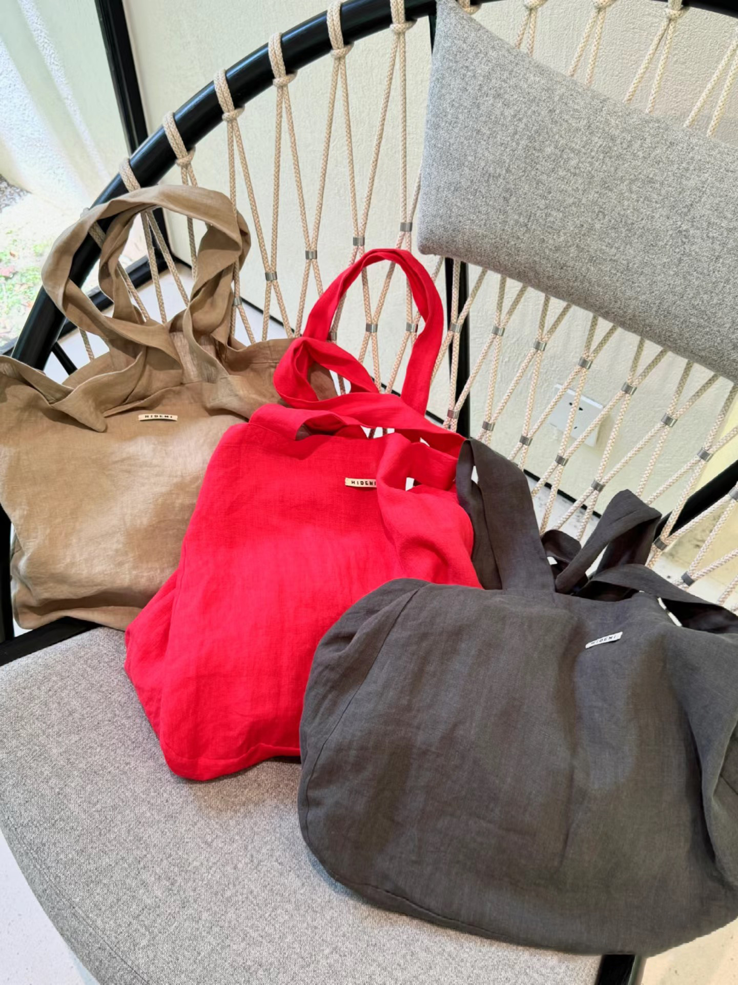 HIDEMI【当当同款】自然多重水洗纯亚麻超软慵懒随身帆布包大包tote托特包 雾霾蓝灰/马斯正红/酒红色/自然米
