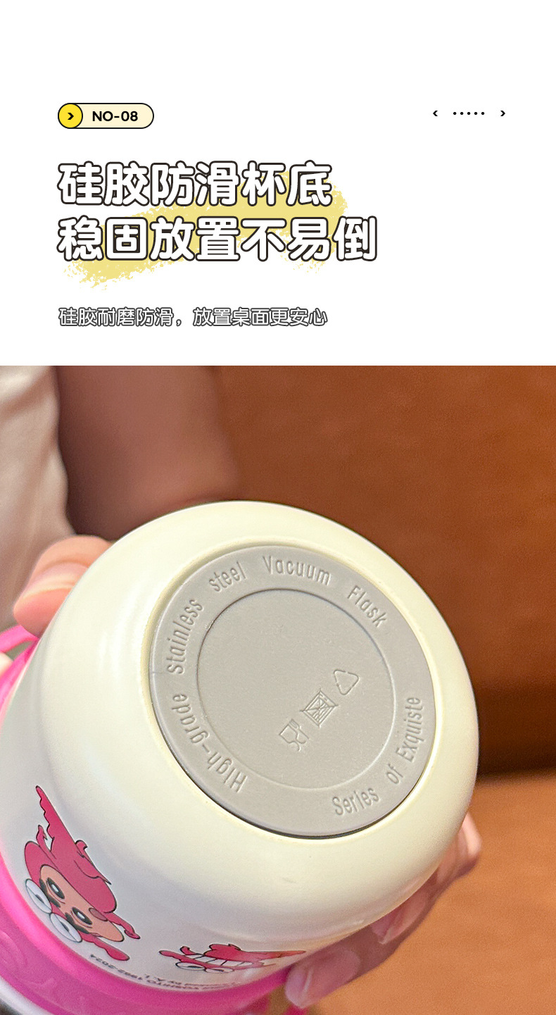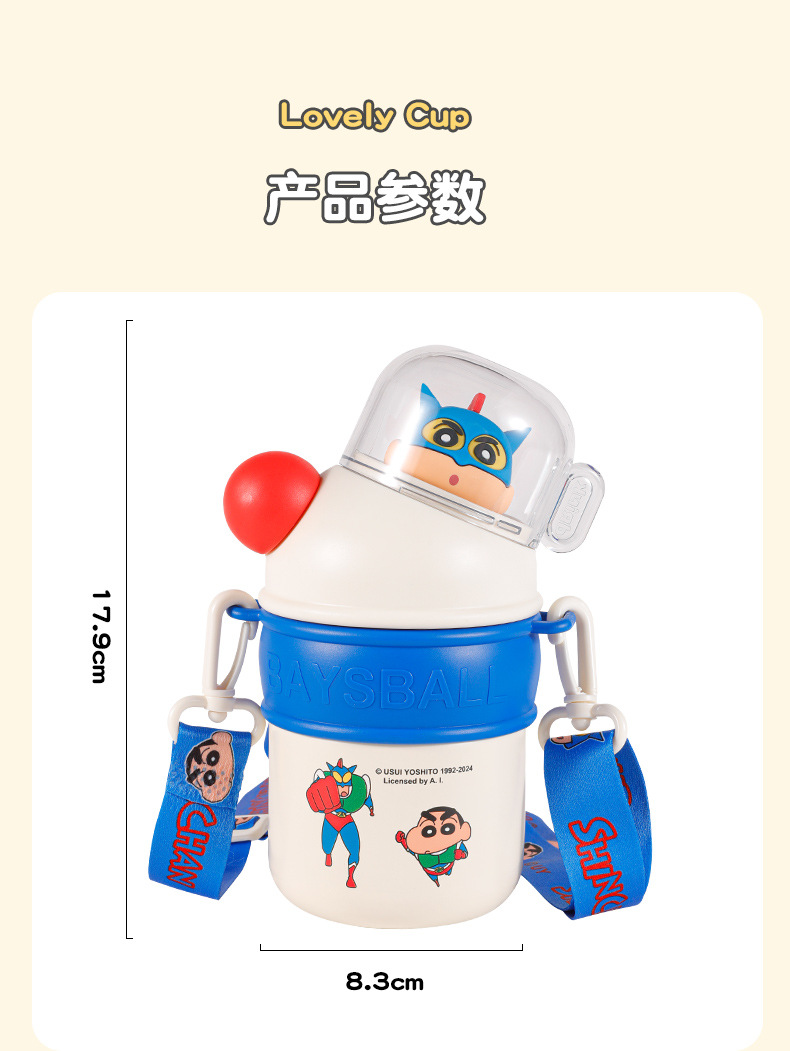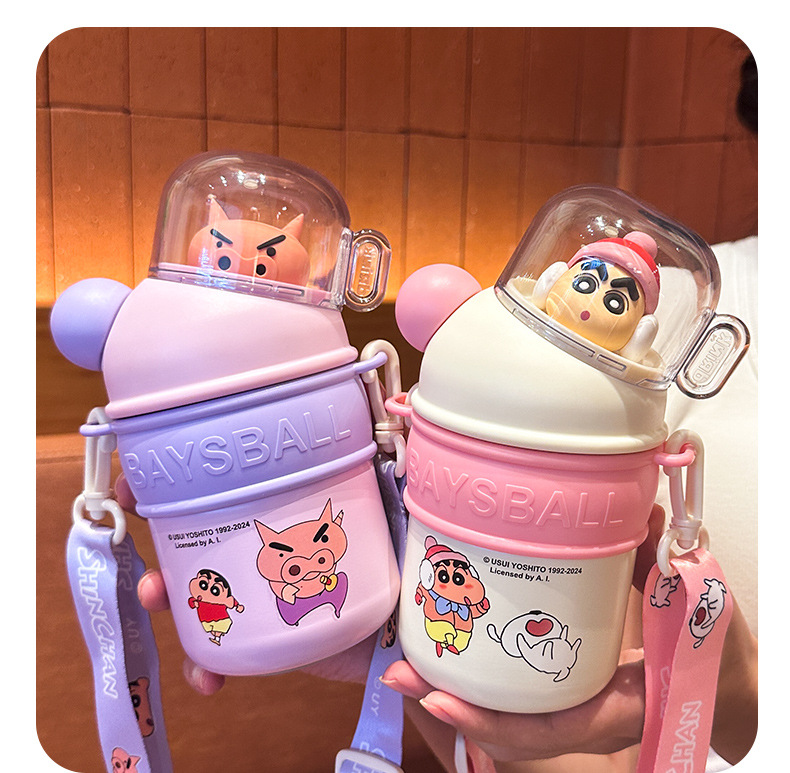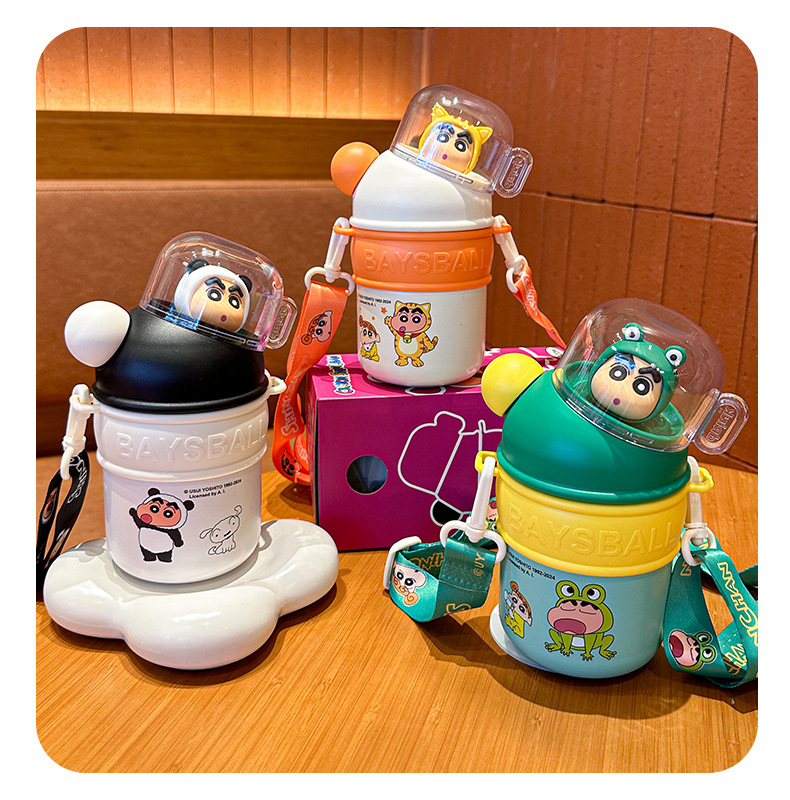 【可拆卸吸管!一杯三饮】加宽背带设计,解放双手,蜡笔小新小透明316保温杯户外高颜值水杯上学吸管杯子防摔保温杯。rb