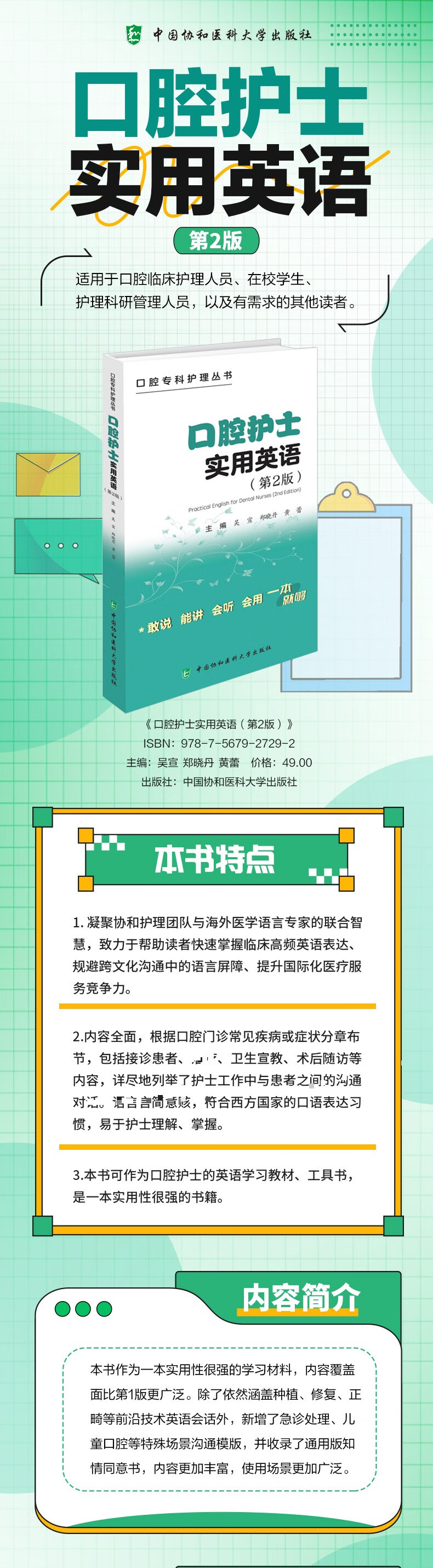 口腔护士实用英语 第2二版 口腔专科护理丛书 吴宣 郑晓丹 黄蕾 主编 牙体牙髓治疗等 9787567927292 中国协和医科大学出版社