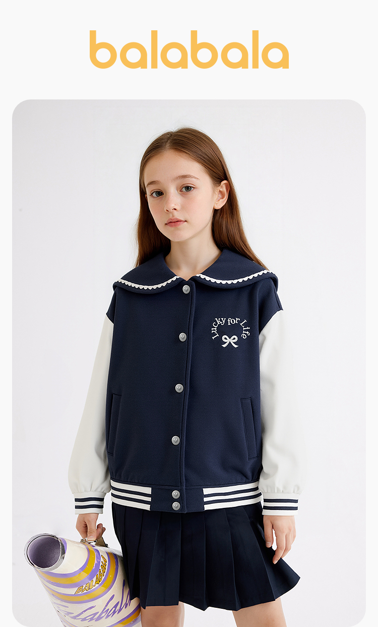 【balaOne】巴拉巴拉童装儿童外套女童棒球服2026新款春甜美撞色